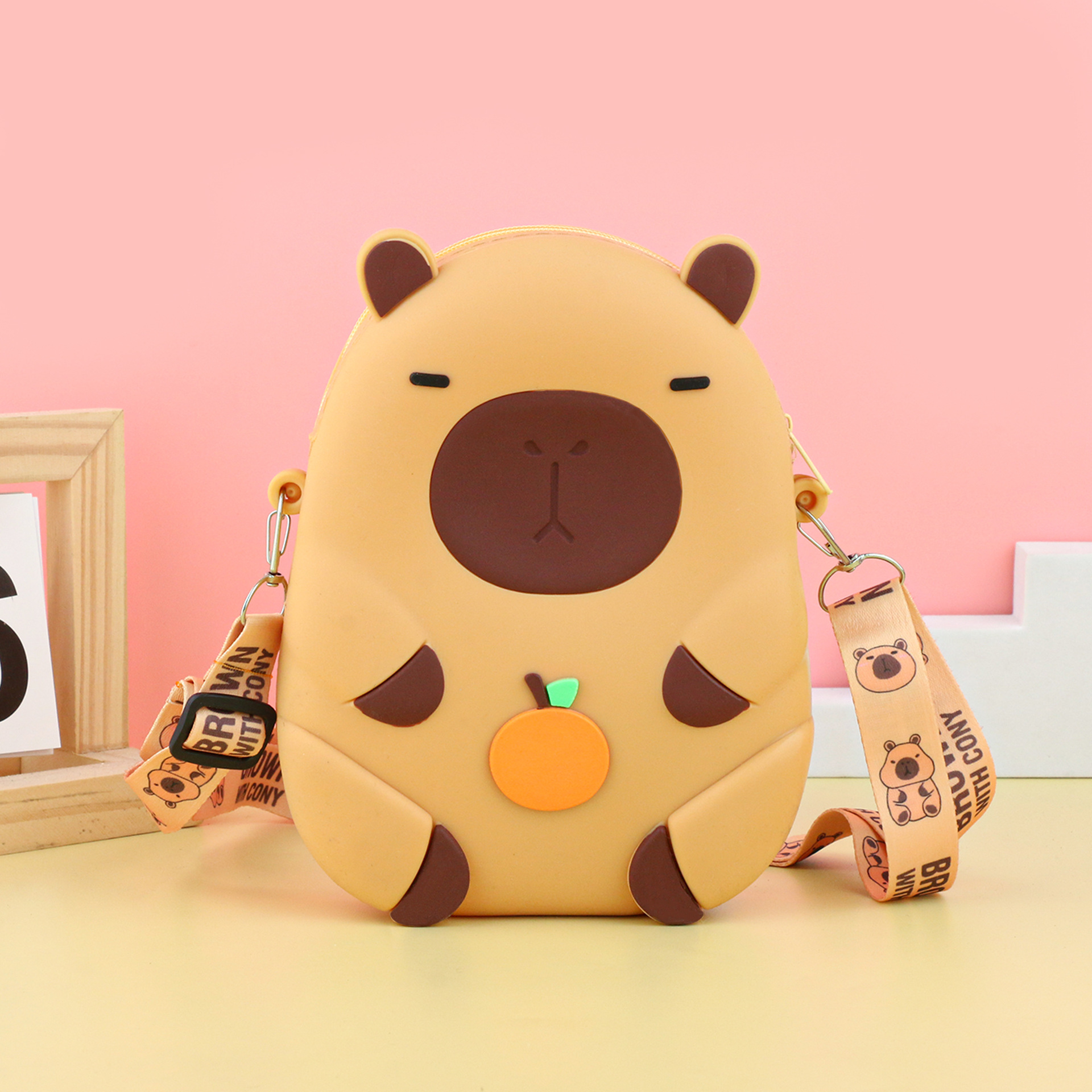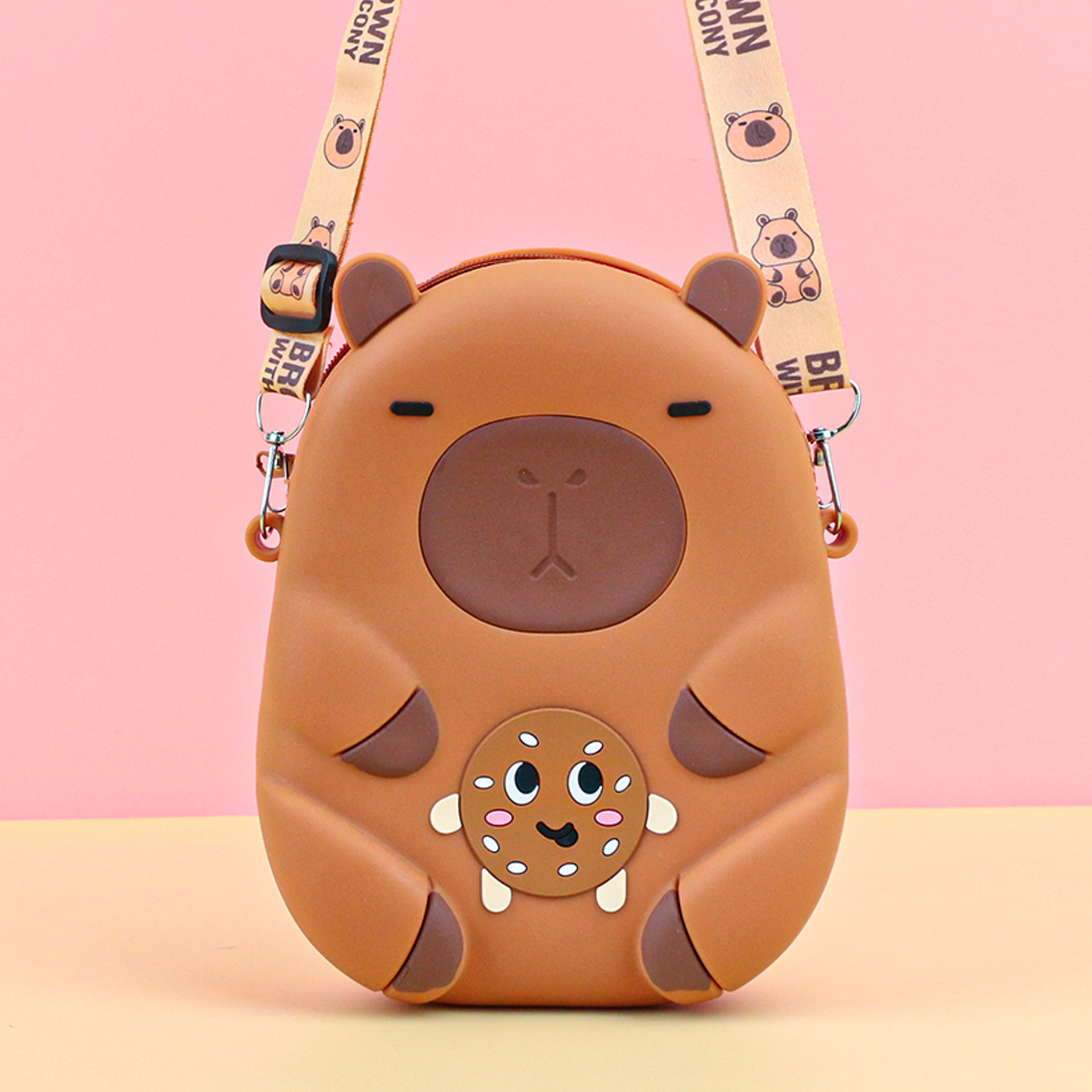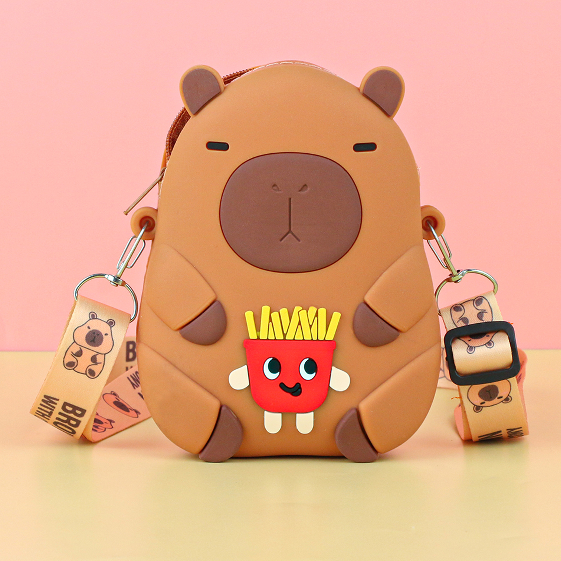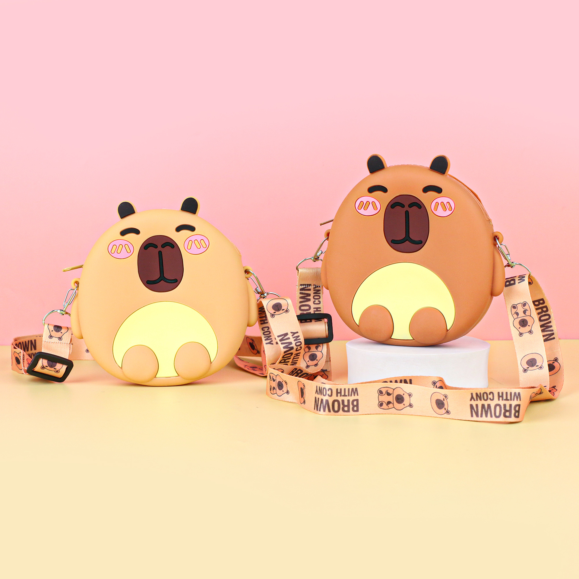 어린이 귀여운 Kapibara Crossbody 가방 여성 실리콘 가방 Crossbody 만화 미니 동전 지갑 어깨 휴대 전화 가방