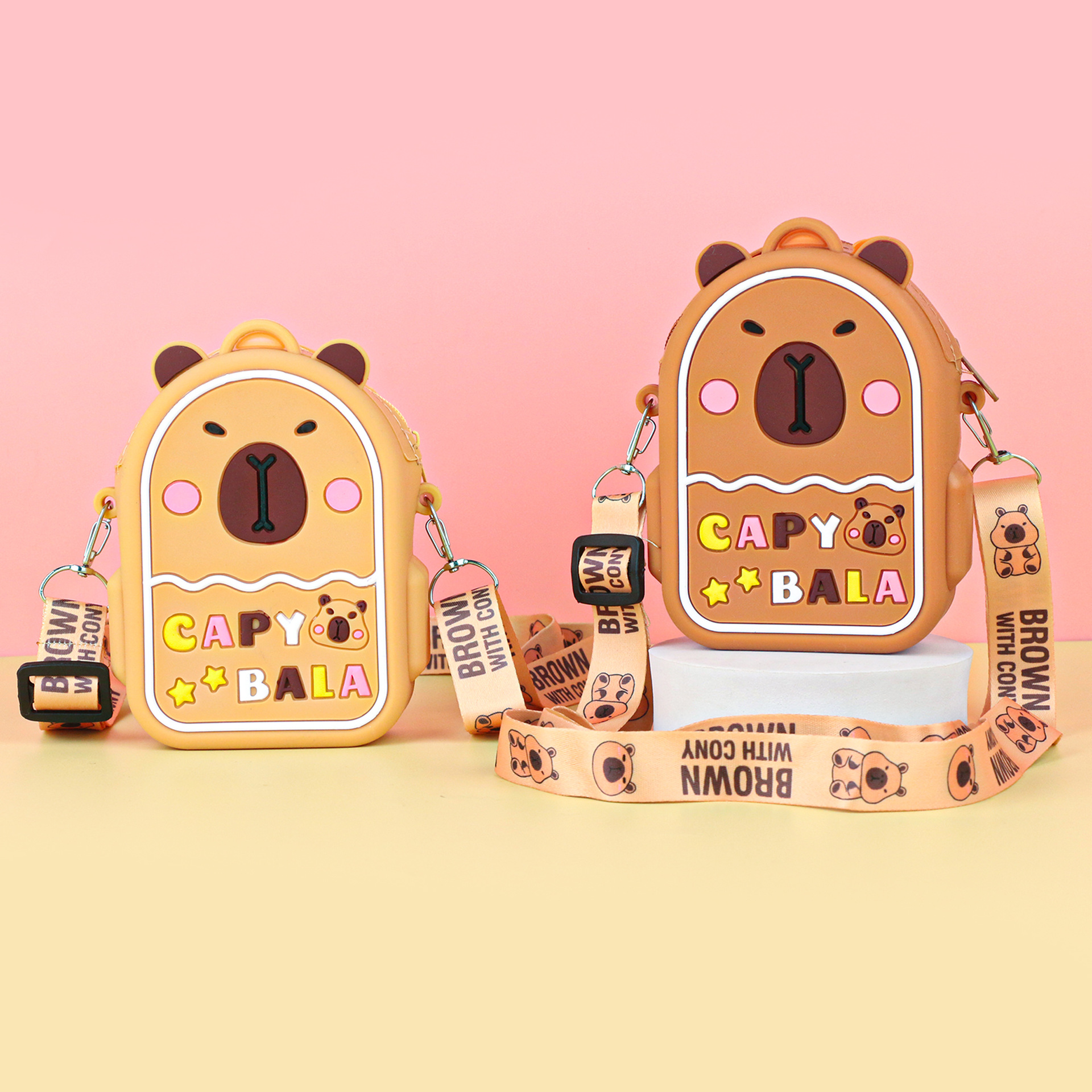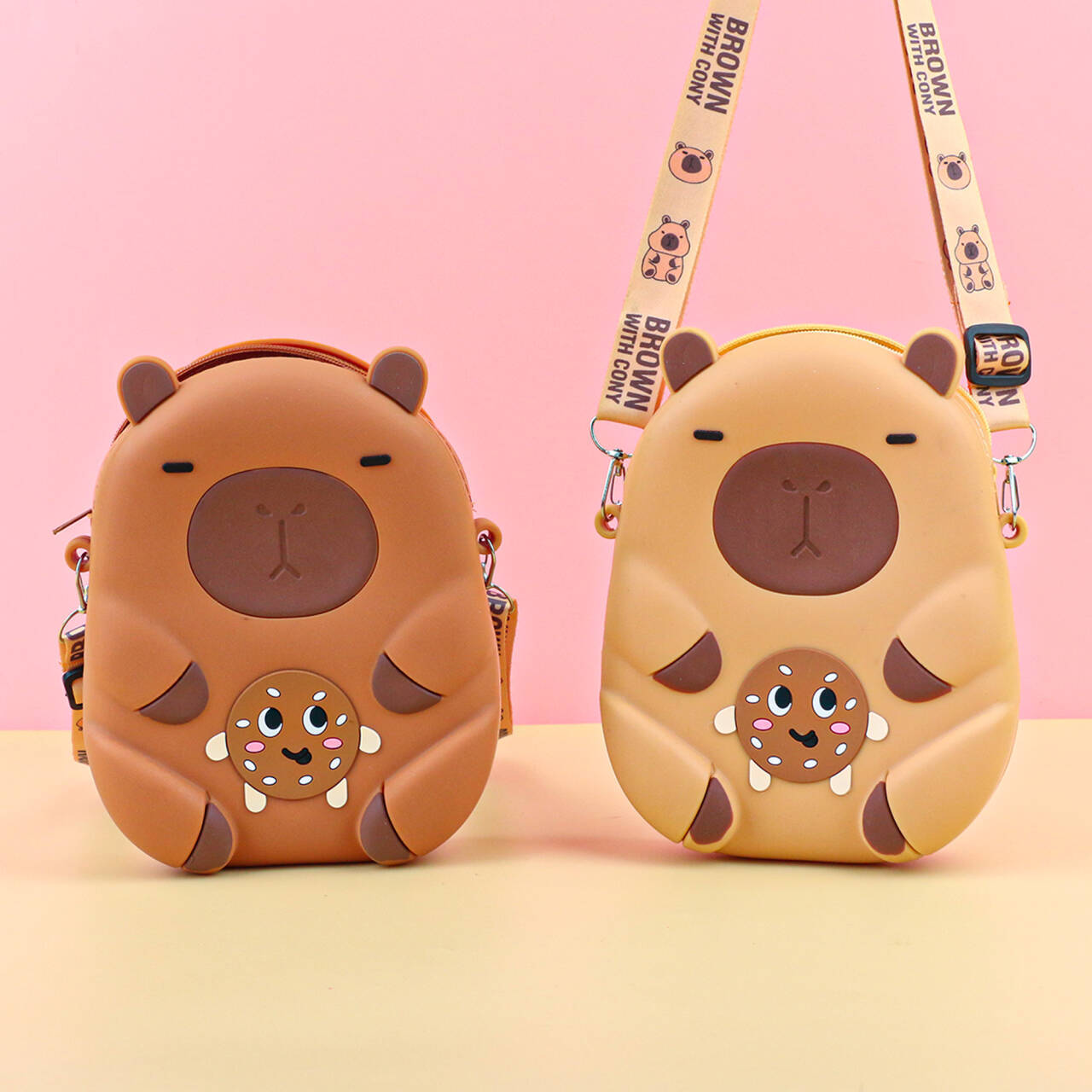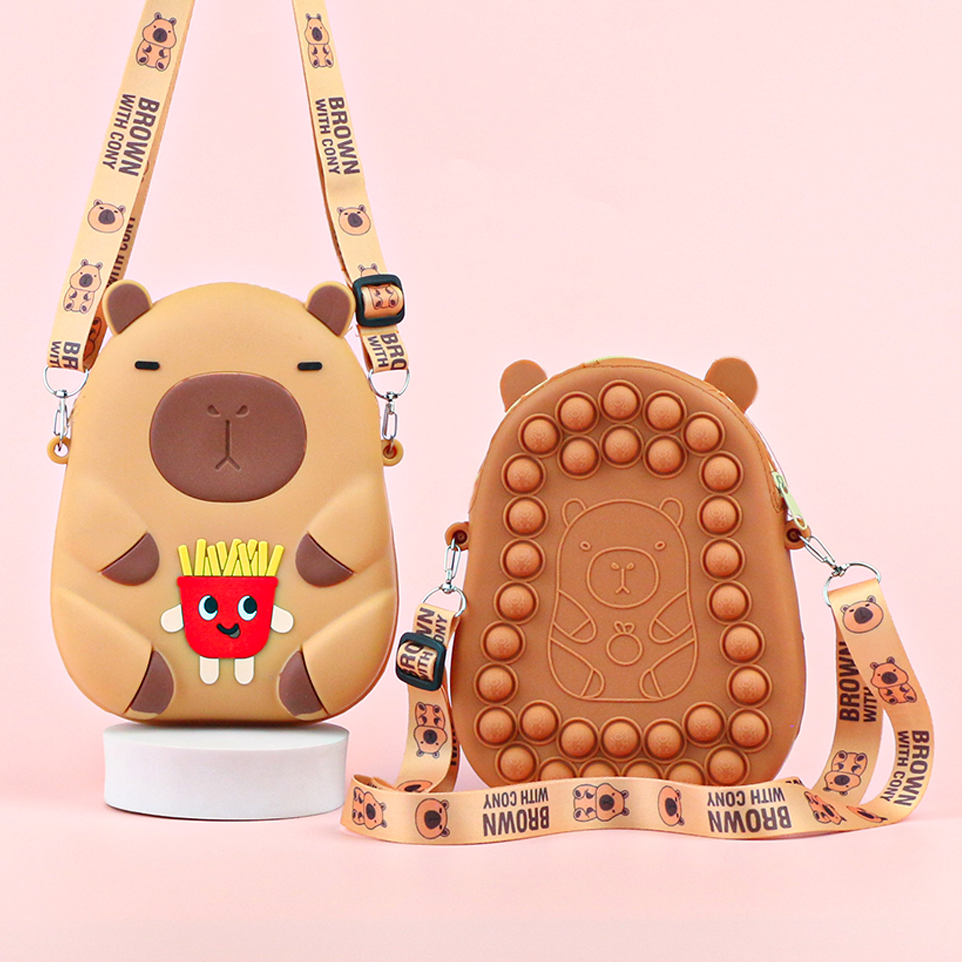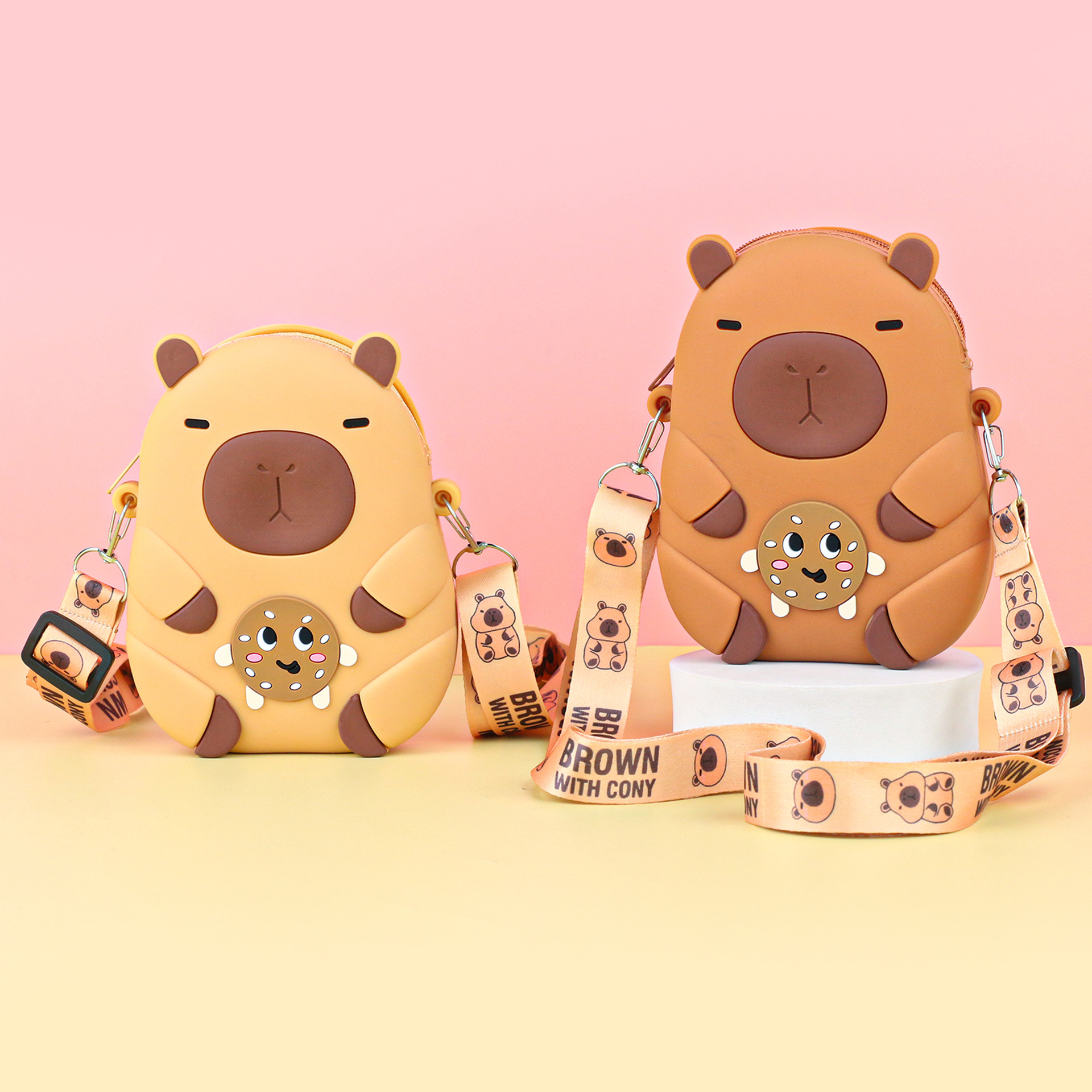 어린이 귀여운 Kapibara Crossbody 가방 여성 실리콘 가방 Crossbody 만화 미니 동전 지갑 어깨 휴대 전화 가방