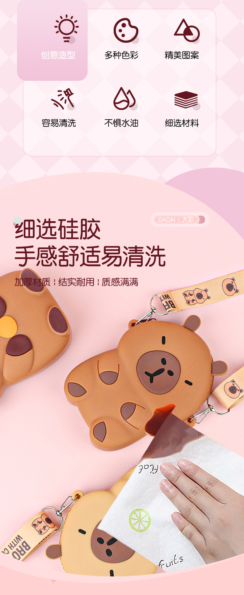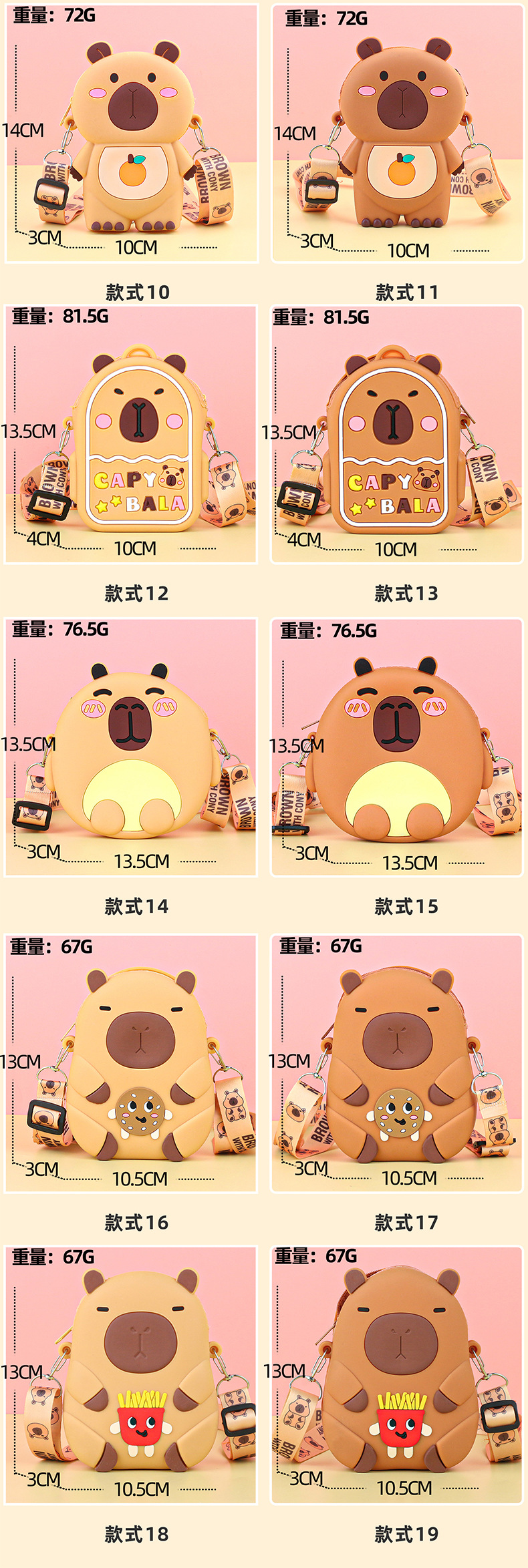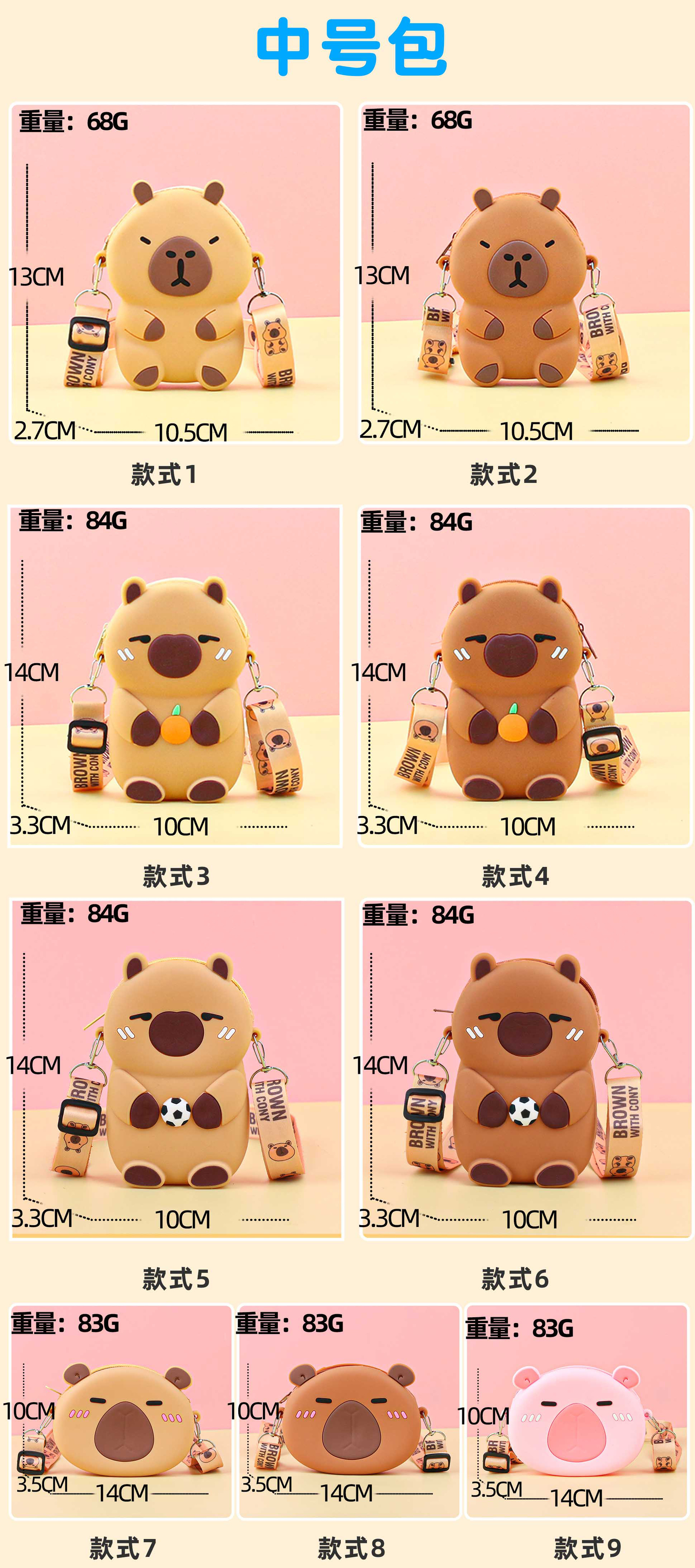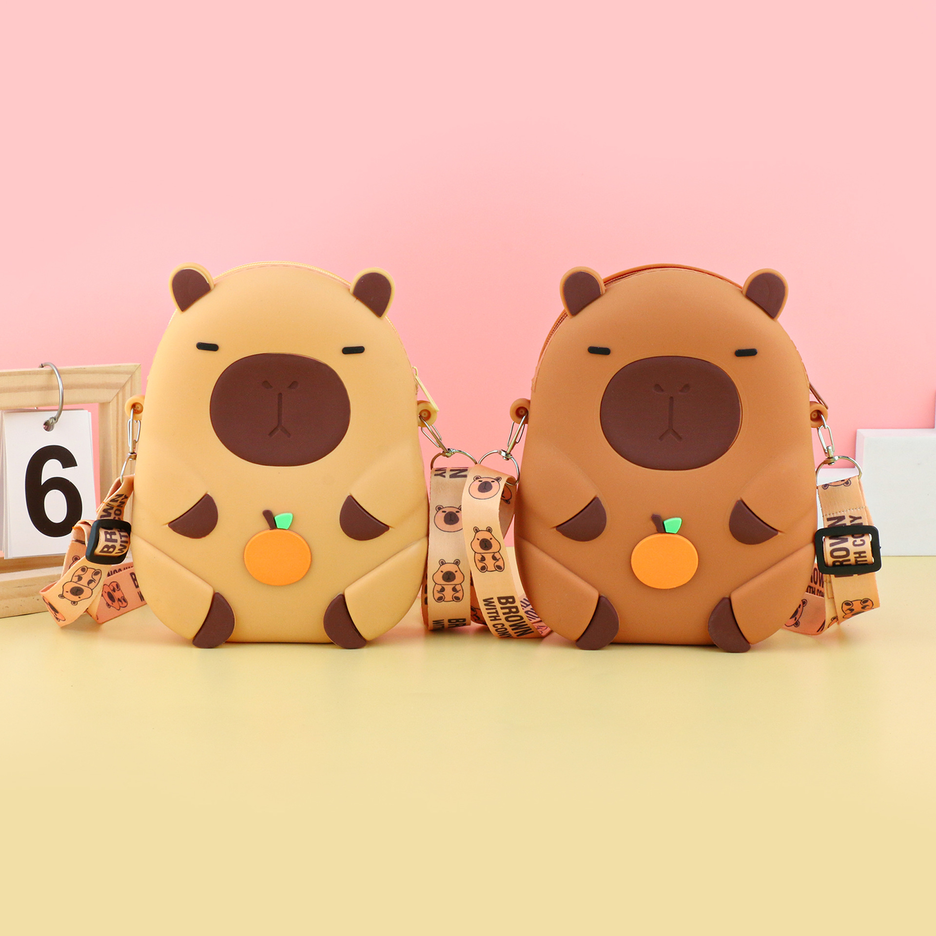 어린이 귀여운 Kapibara Crossbody 가방 여성 실리콘 가방 Crossbody 만화 미니 동전 지갑 어깨 휴대 전화 가방