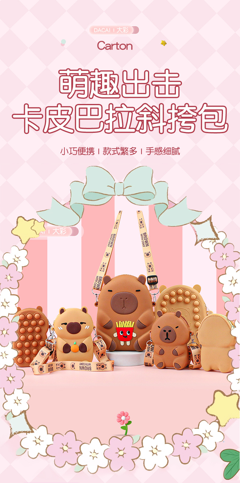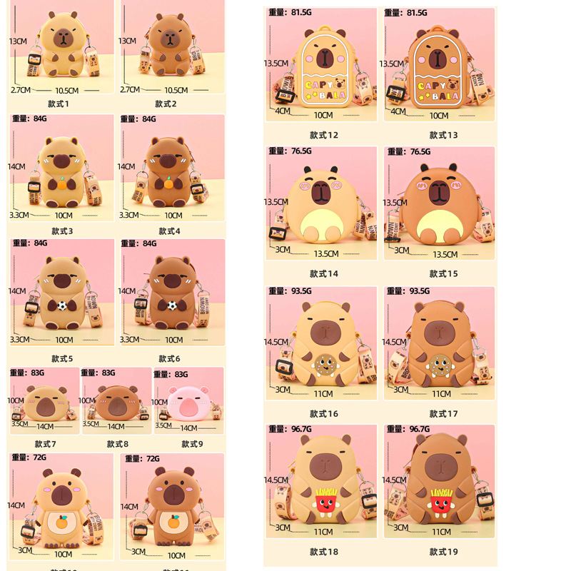 어린이 귀여운 Kapibara Crossbody 가방 여성 실리콘 가방 Crossbody 만화 미니 동전 지갑 어깨 휴대 전화 가방스토어 가기