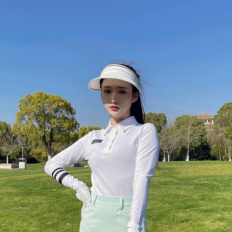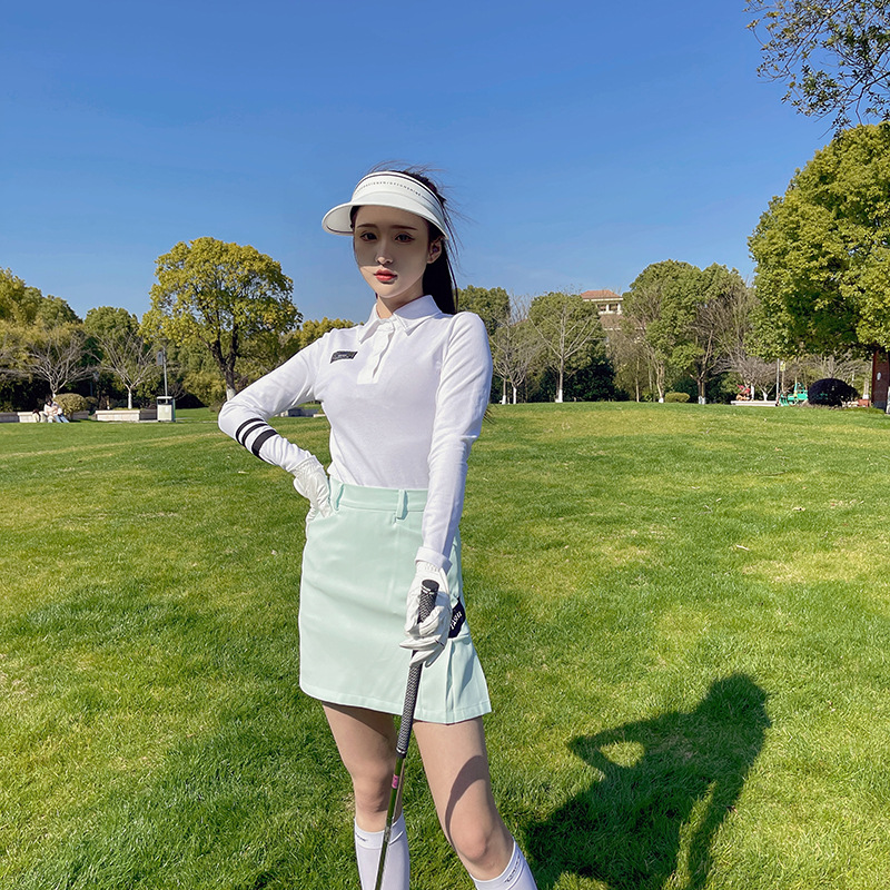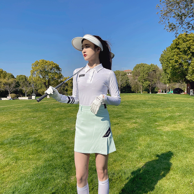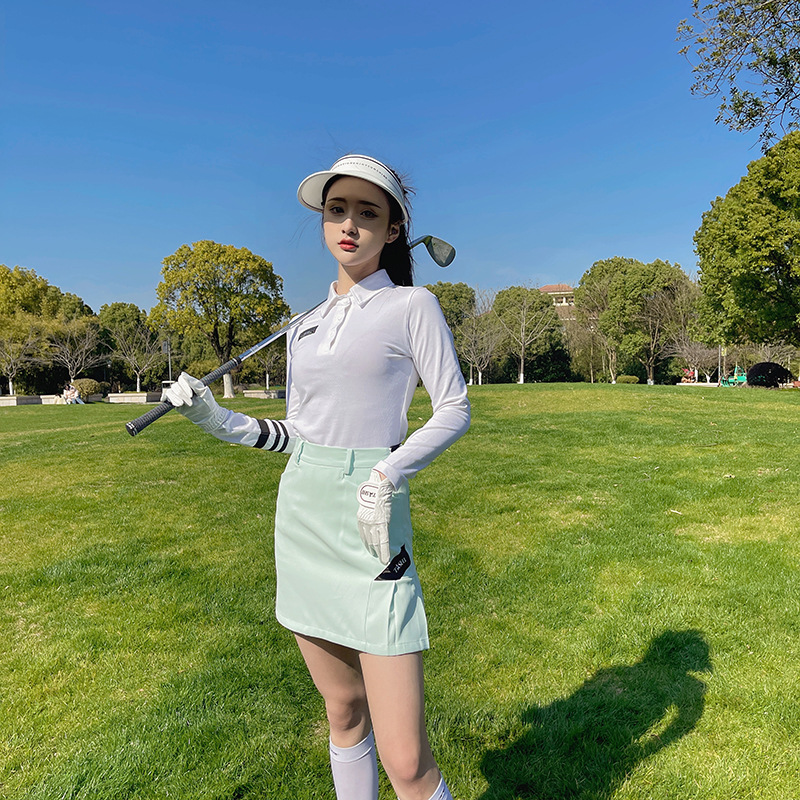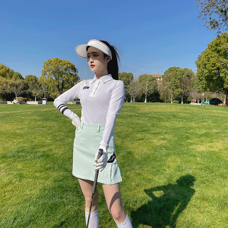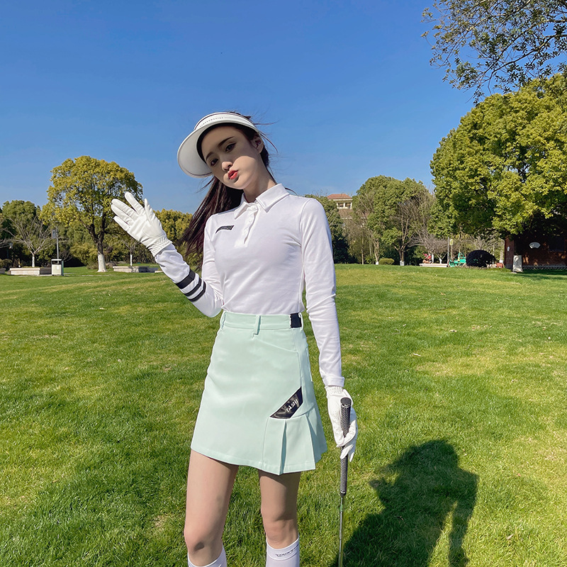 한국식 골프웨어 여성복 여름 스포츠 속건성 흰색 긴팔 폴로 셔츠 연두색 주름 짧은 스커트스토어 가기