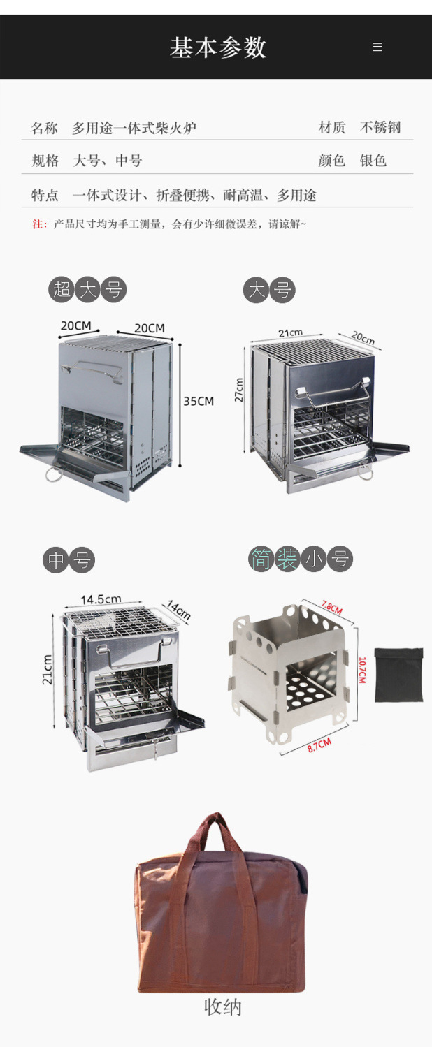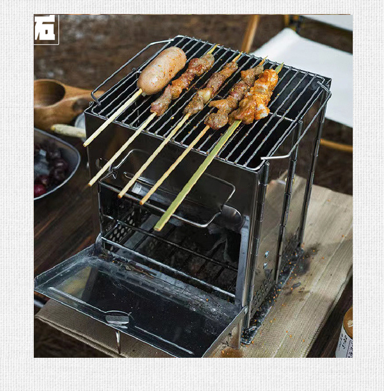 야외 휴대용 장작 난로, 등산, 캠핑, 피크닉, 접이식 숯불 바베큐 난로, 야외 캠핑 스테인레스 스틸 바베큐 그릴
