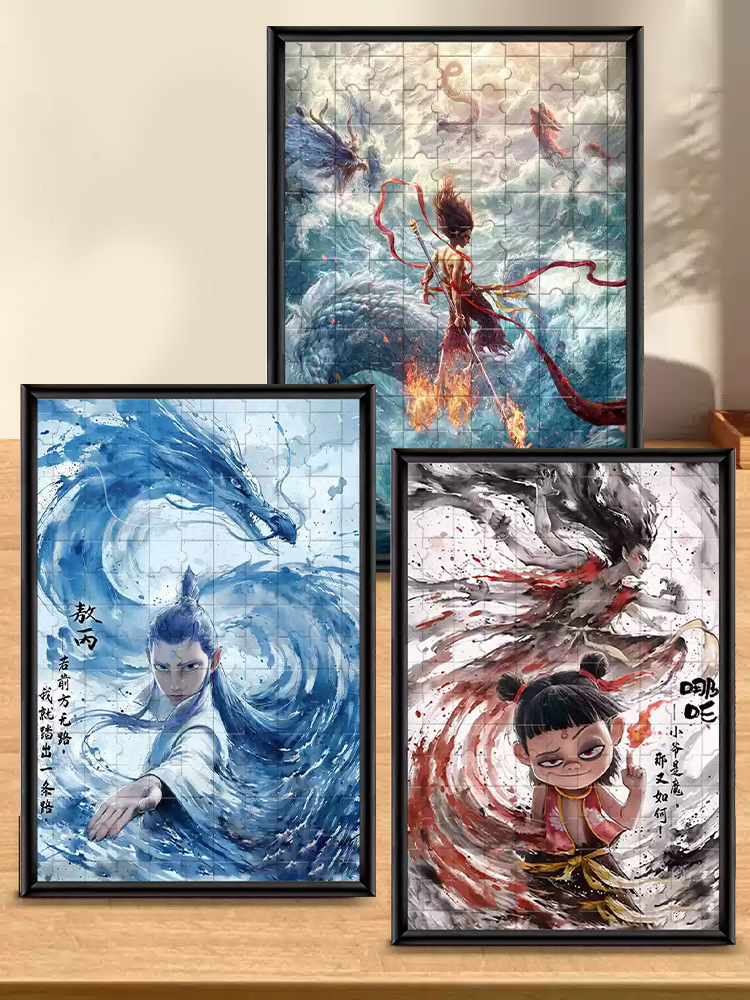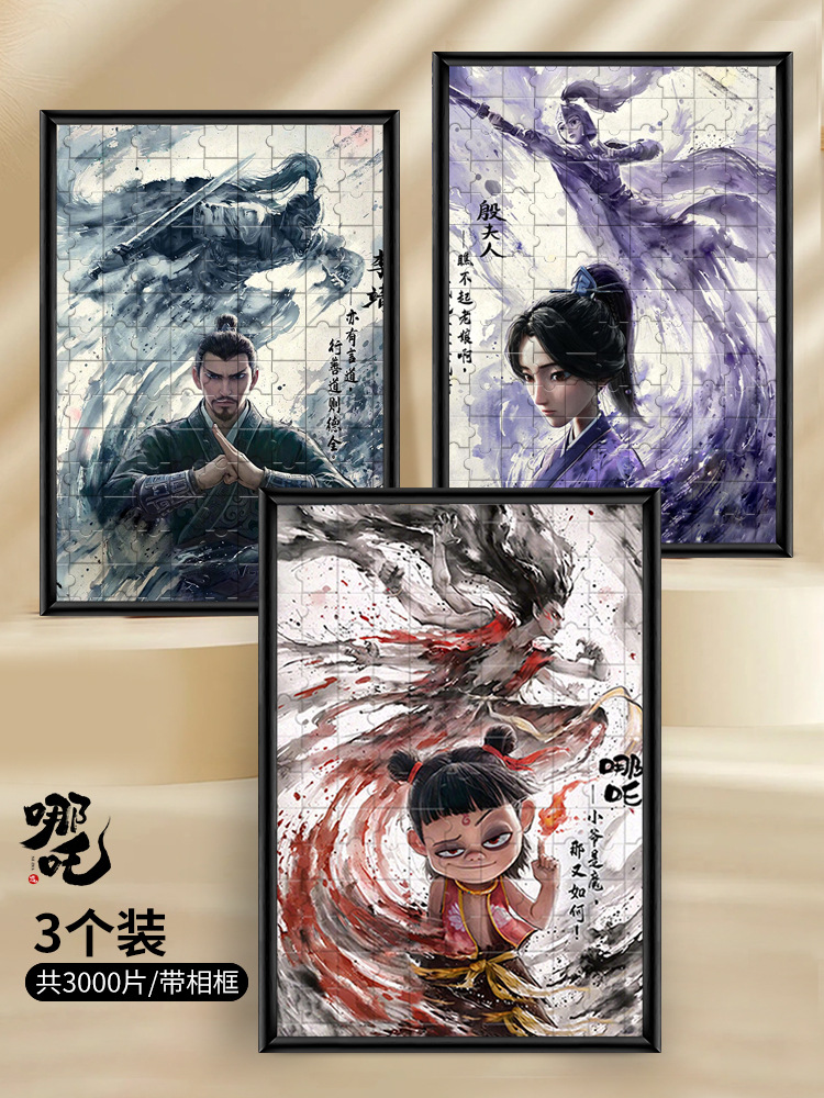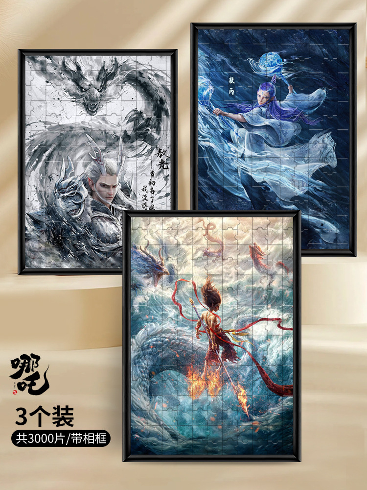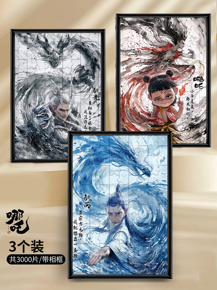 • Nezha + Ao Bing + Nezha Fengshen, 총 3,000개, 대형 50x70cm, 무료 액자