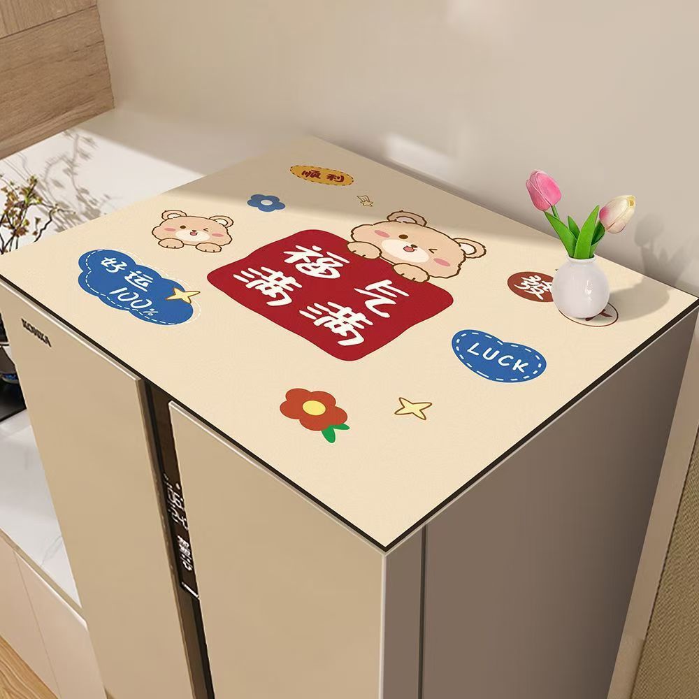 만화 냉장고 먼지 덮개 물 흡수성 빠른 건조 Diatom 진흙 냉장고 덮개 천 가정용 내마모성 먼지 방지 쉬운 관리 커버 패드