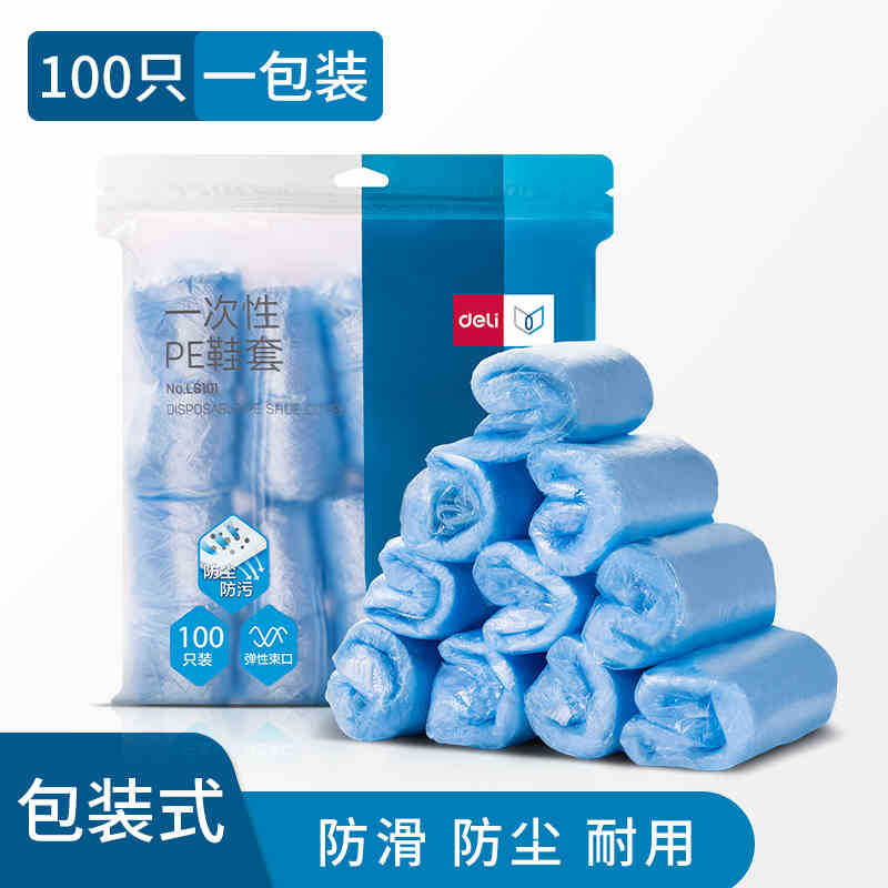 델리 LS101 가정용 일회용 신발 커버 두꺼운 내마모성 방진 미끄럼 방지 컴퓨터실 학생 환대 발 커버 필름