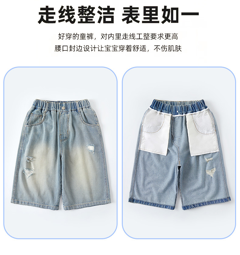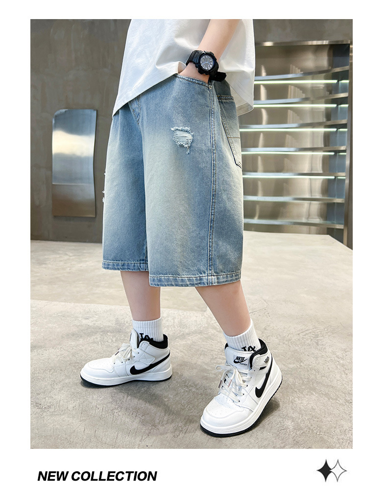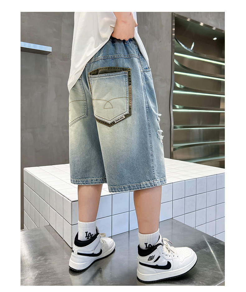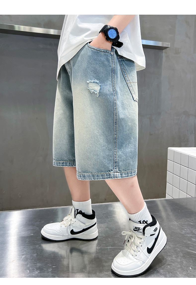 아동 의류 소년 데님 반바지 여름 얇은 2025 새로운 어린이 바지 여름 착용 소년 남성 캐주얼 바지스토어 가기