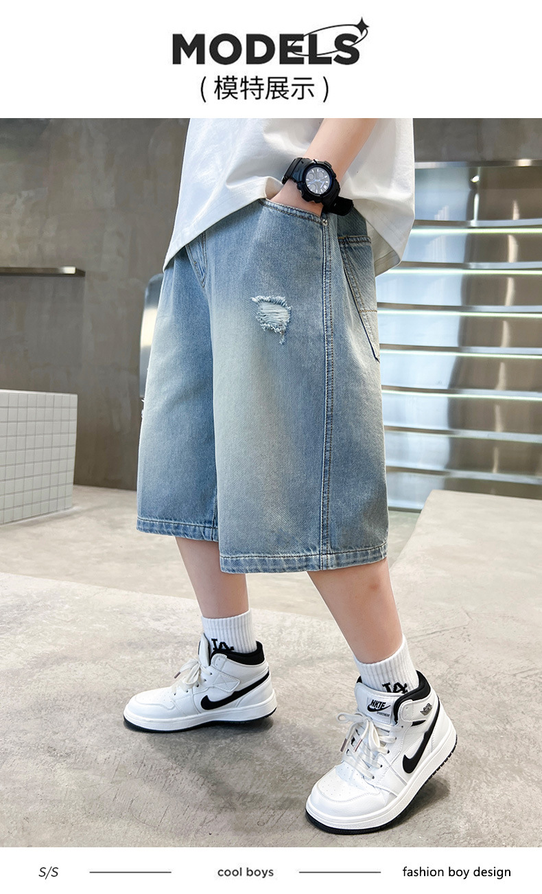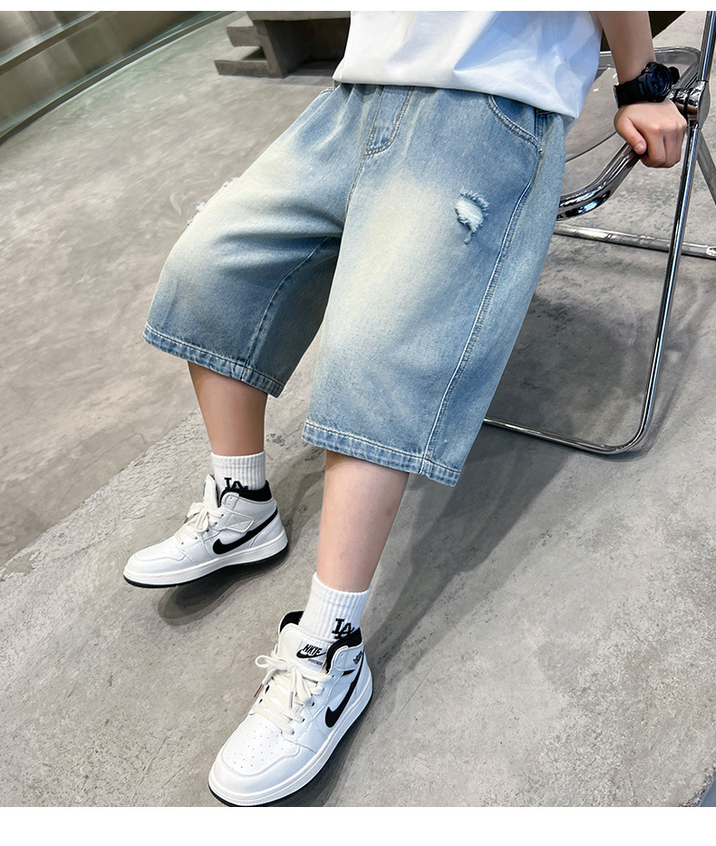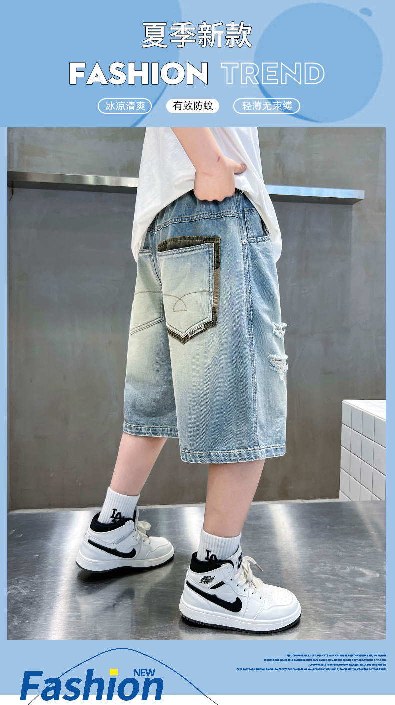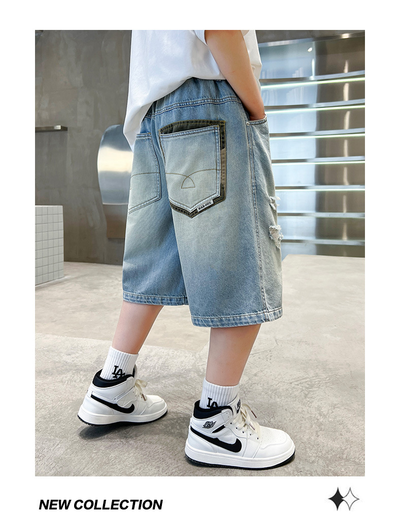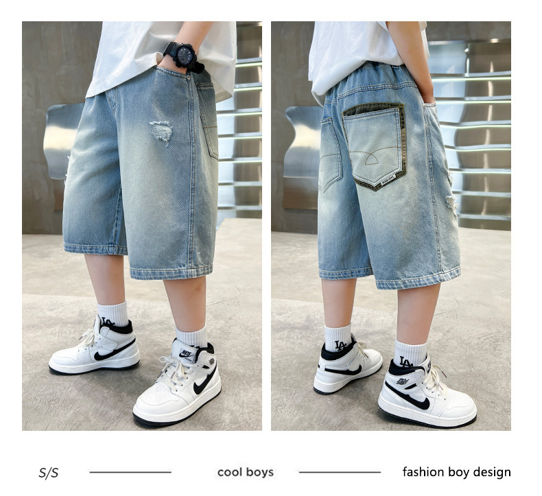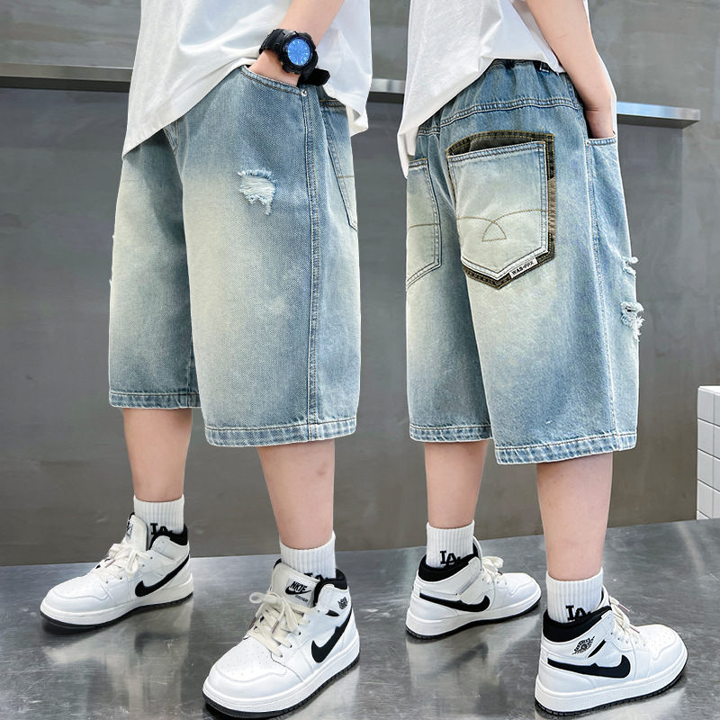 아동 의류 소년 데님 반바지 여름 얇은 2025 새로운 어린이 바지 여름 착용 소년 남성 캐주얼 바지