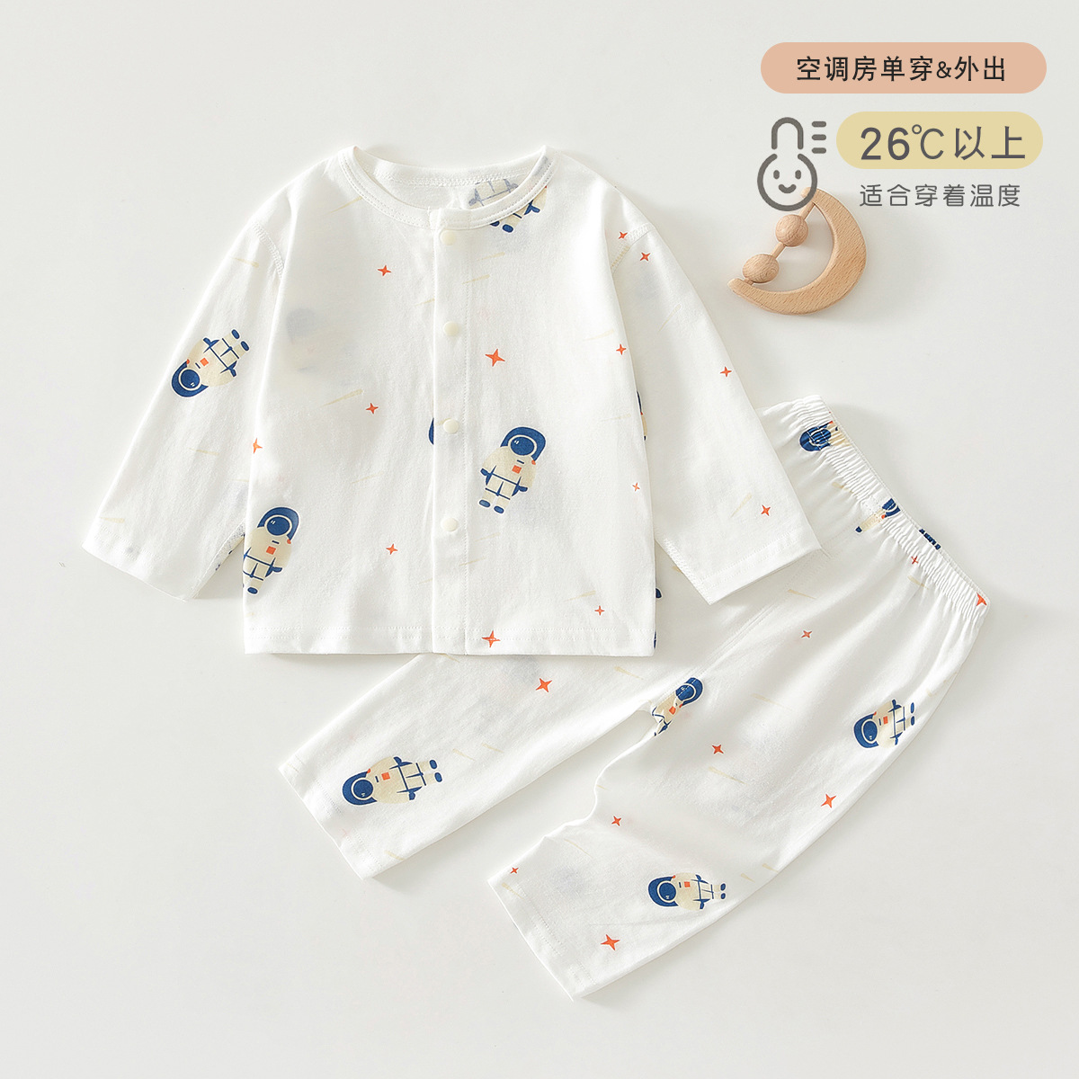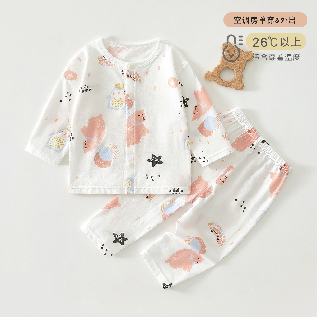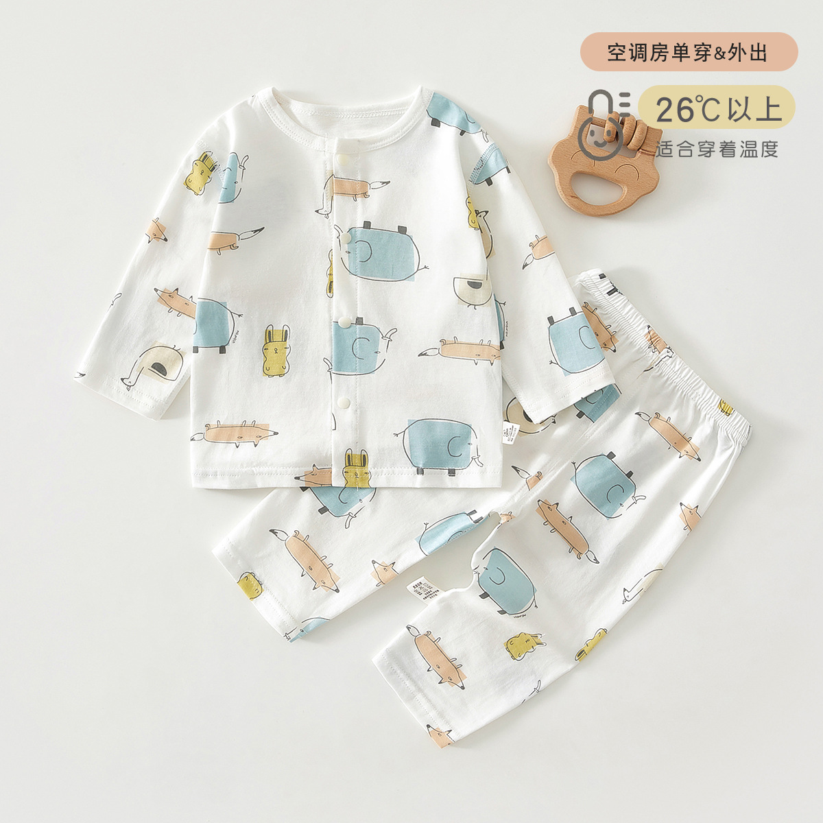 아기 여름 정장 얇은 긴팔 순면 A형 잠옷 아기 여름 에어컨 옷 분할 투피스 세트 여름 6스토어 가기