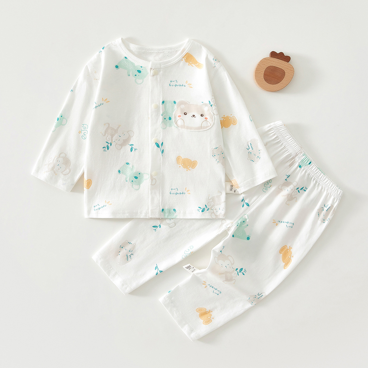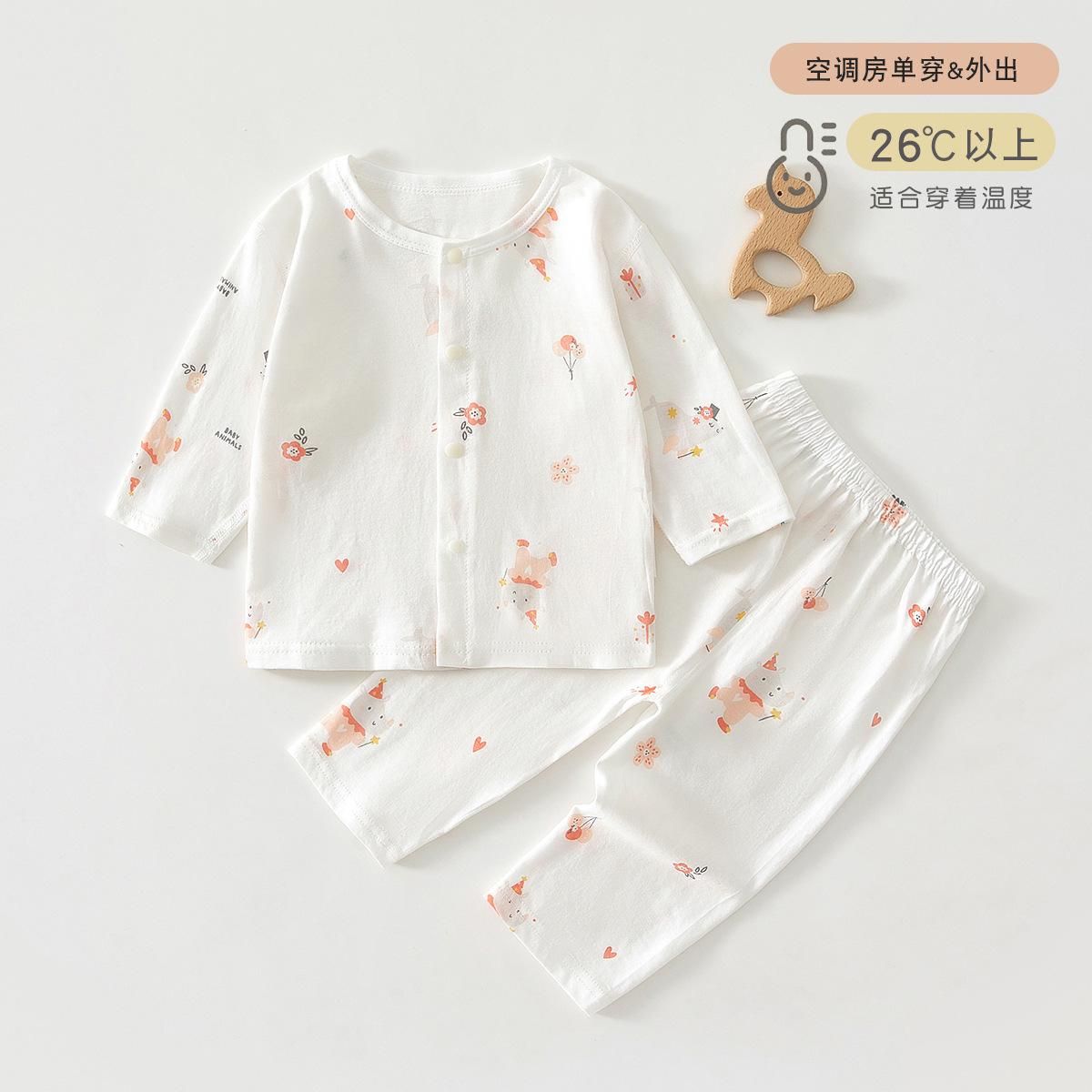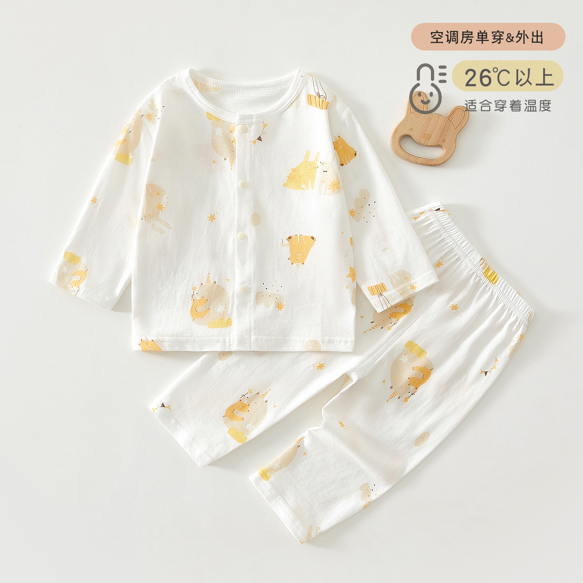 아기 여름 정장 얇은 긴팔 순면 A형 잠옷 아기 여름 에어컨 옷 분할 투피스 세트 여름 6스토어 가기