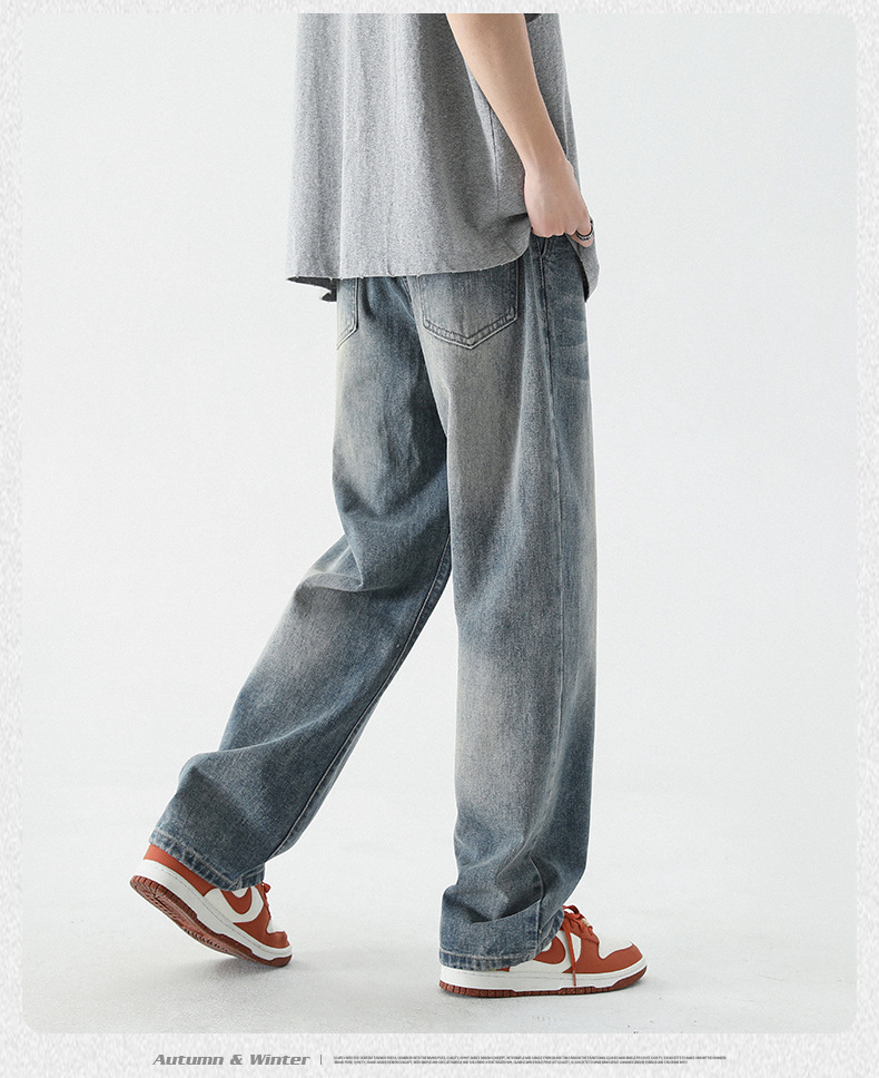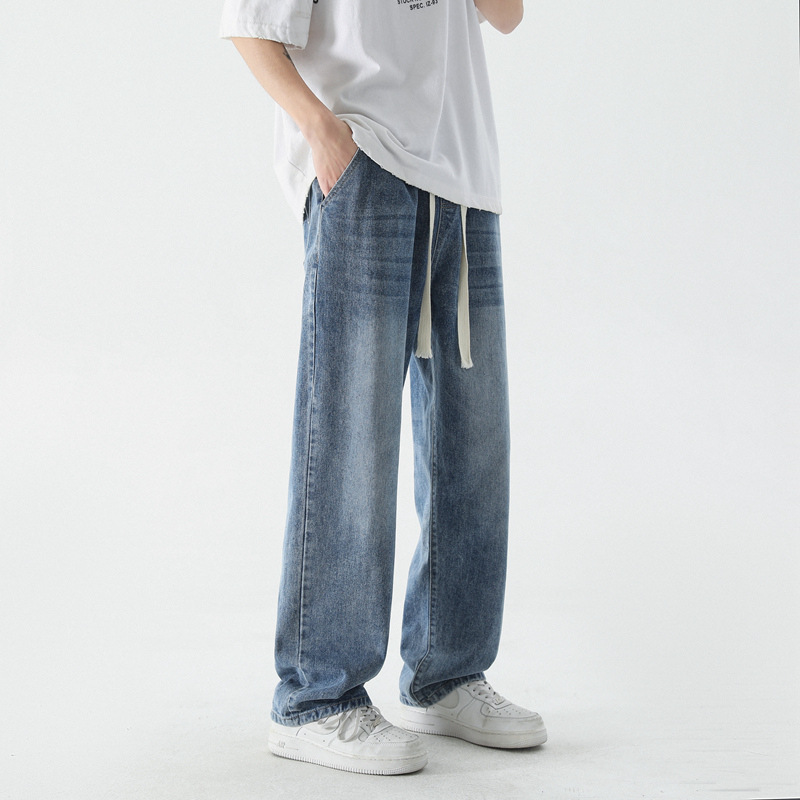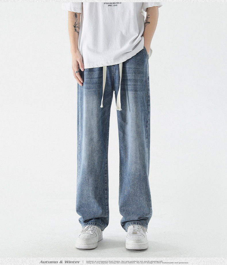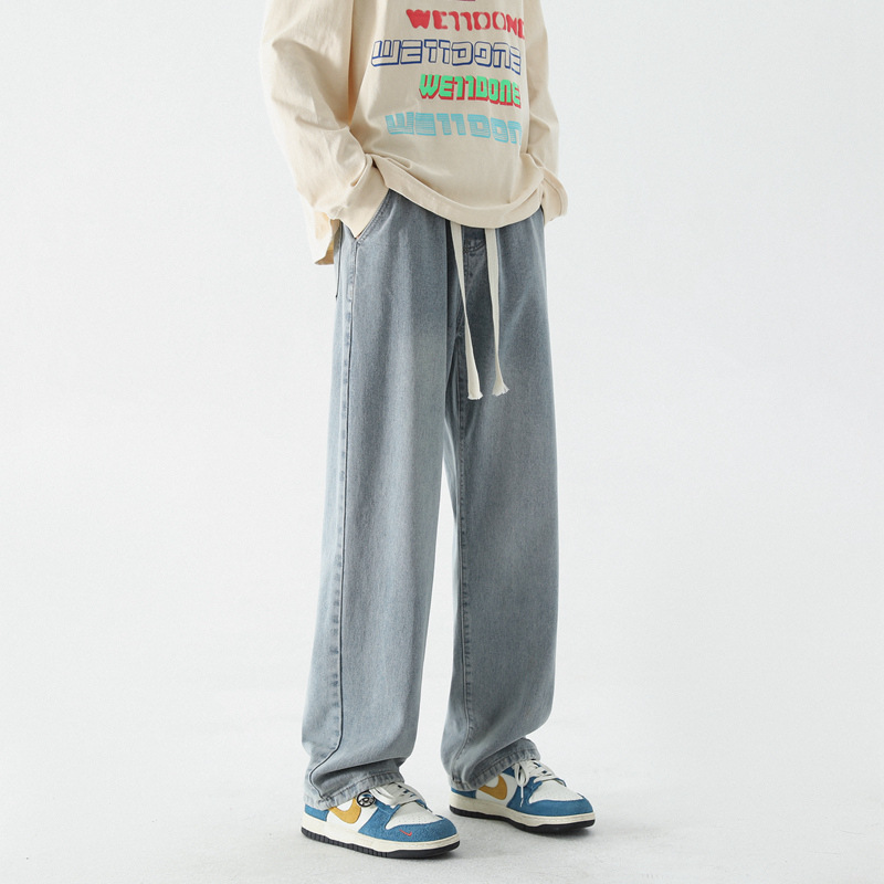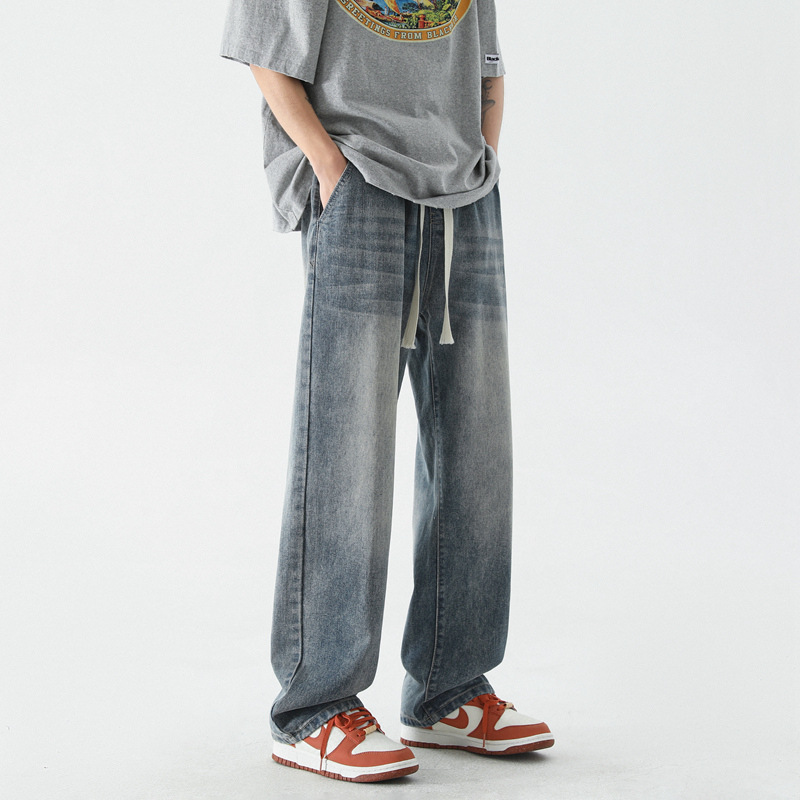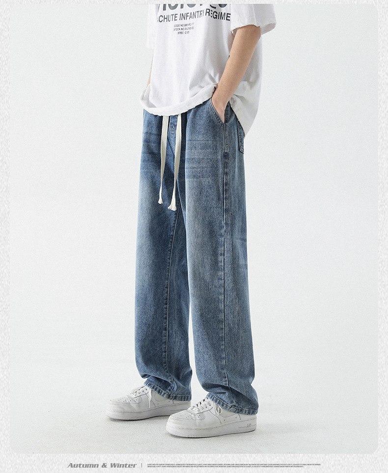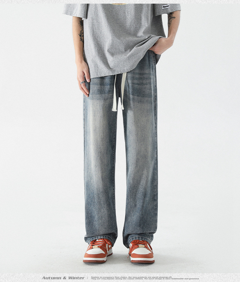 봄과 가을 남자 씻은 올매치 스트레이트 청바지 남자 아메리칸 스타일 트렌디 브랜드 하이 스트리트 남자의 느슨한 와이드 레그 롱 바지