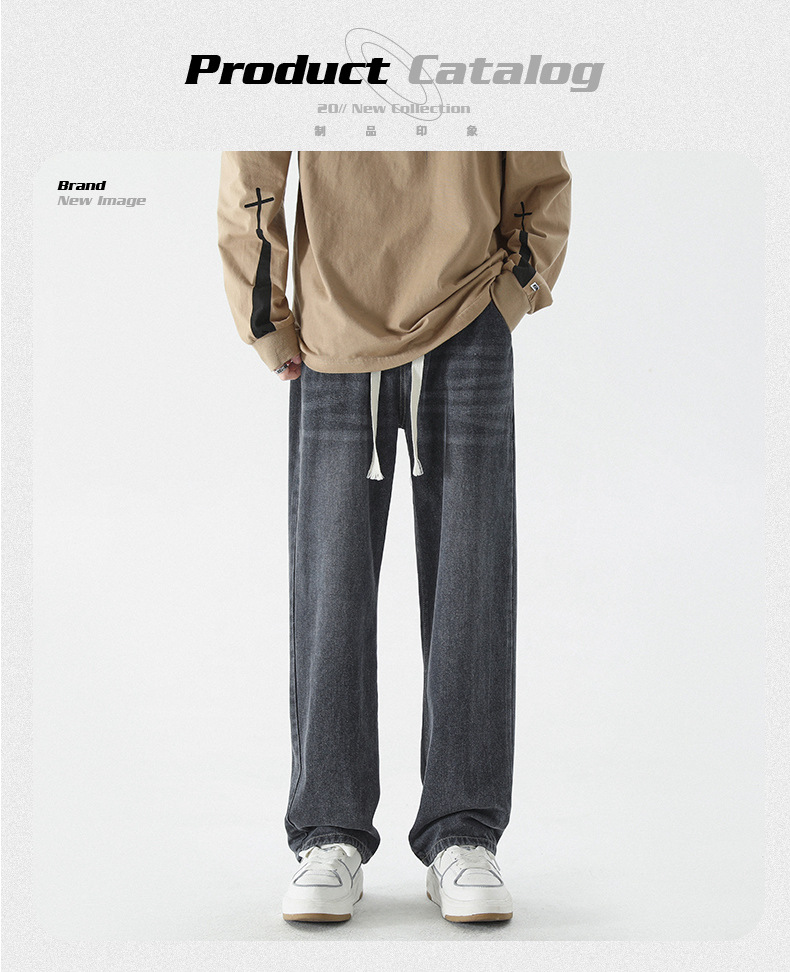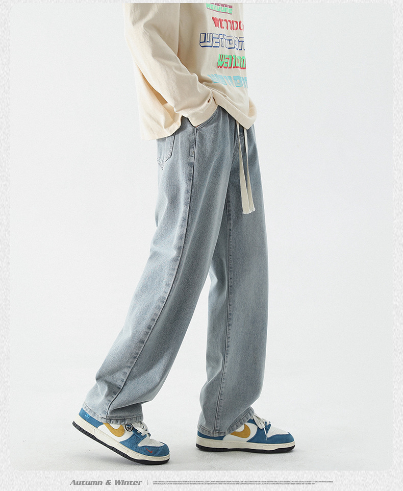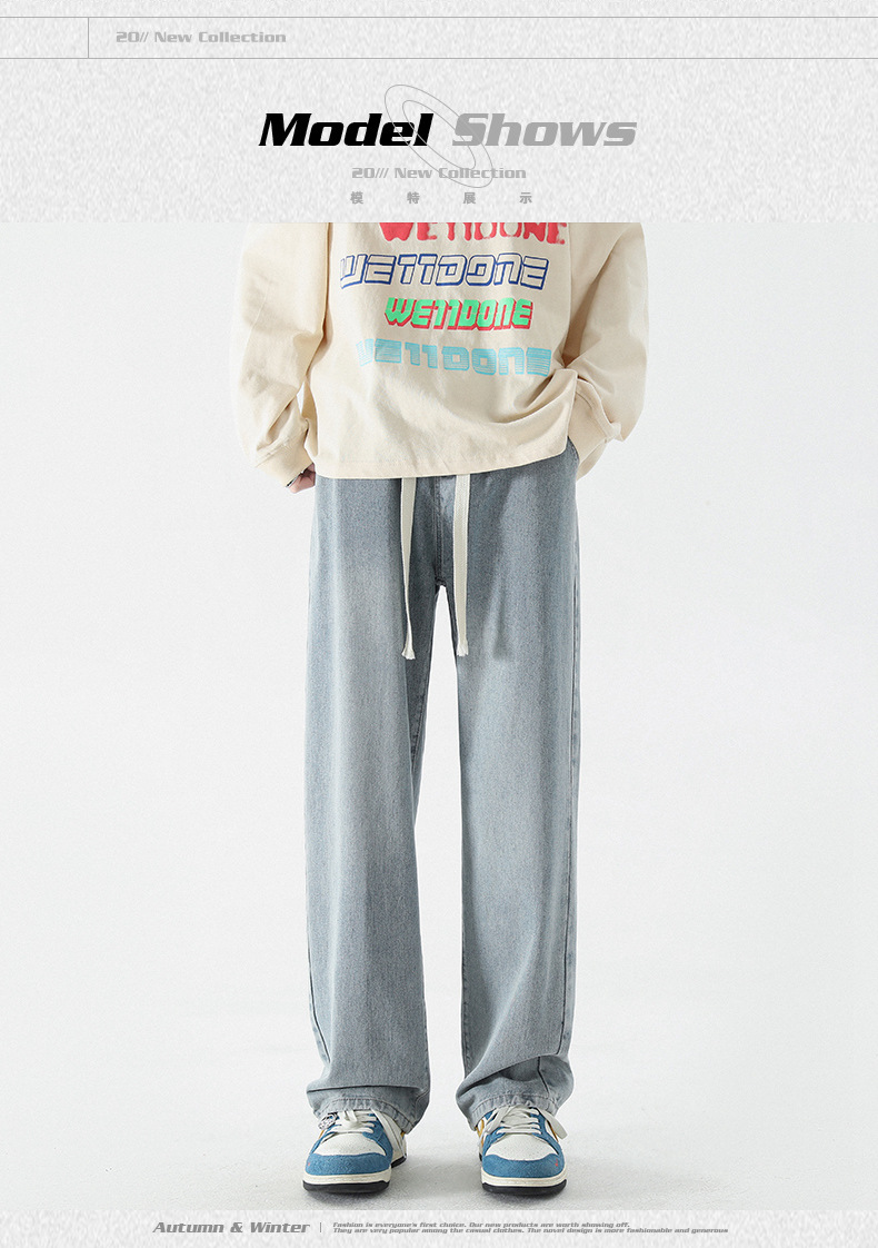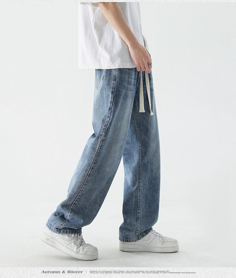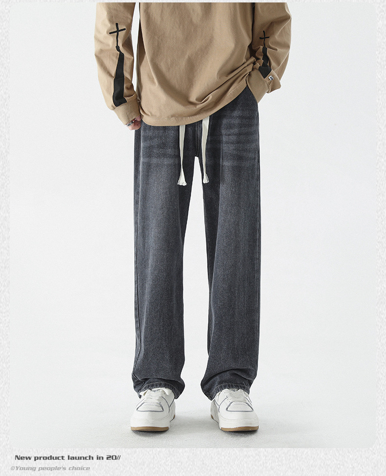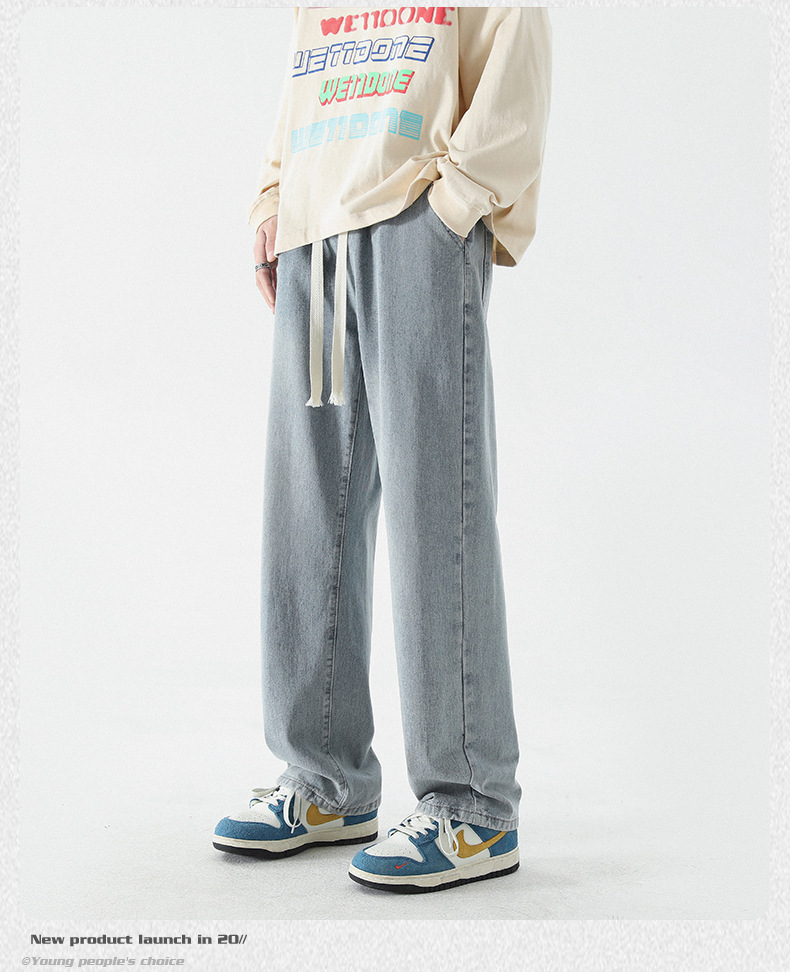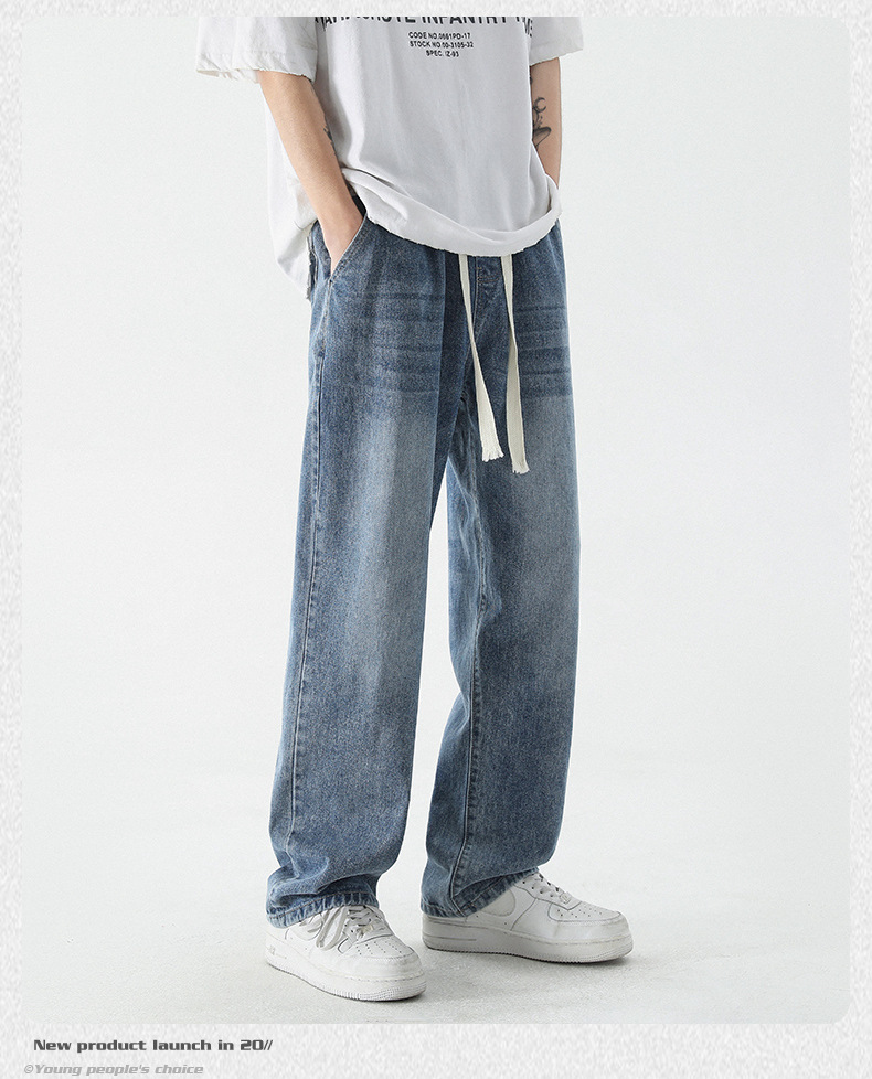 봄과 가을 남자 씻은 올매치 스트레이트 청바지 남자 아메리칸 스타일 트렌디 브랜드 하이 스트리트 남자의 느슨한 와이드 레그 롱 바지