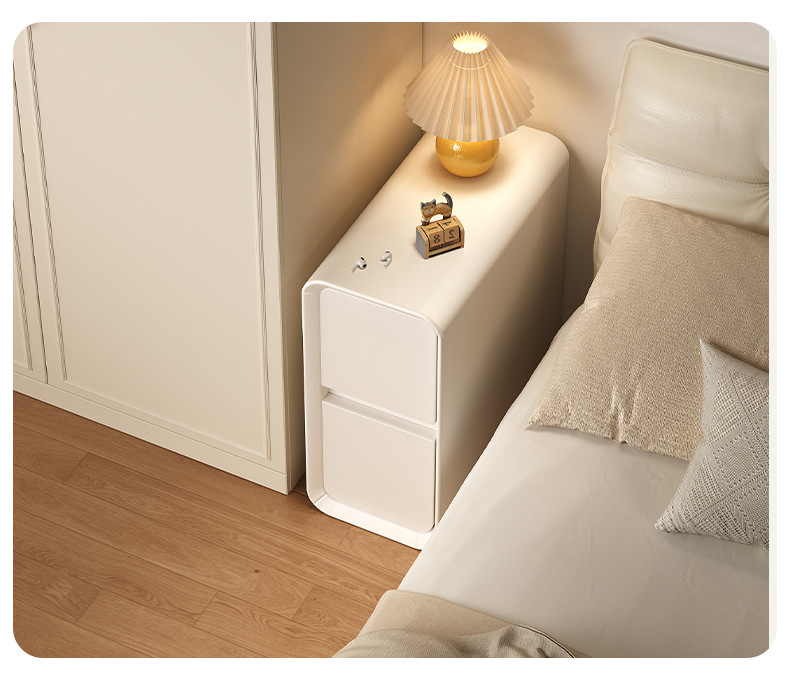 크림 스타일 매우 좁은 침대 옆 테이블 라이트 럭셔리 하이 엔드 작은 집 침실 단단한 나무 보관 캐비닛 2025 인기 캐비닛