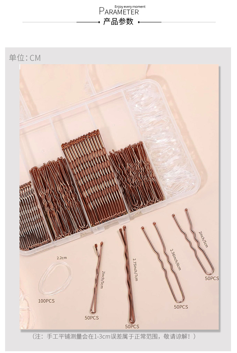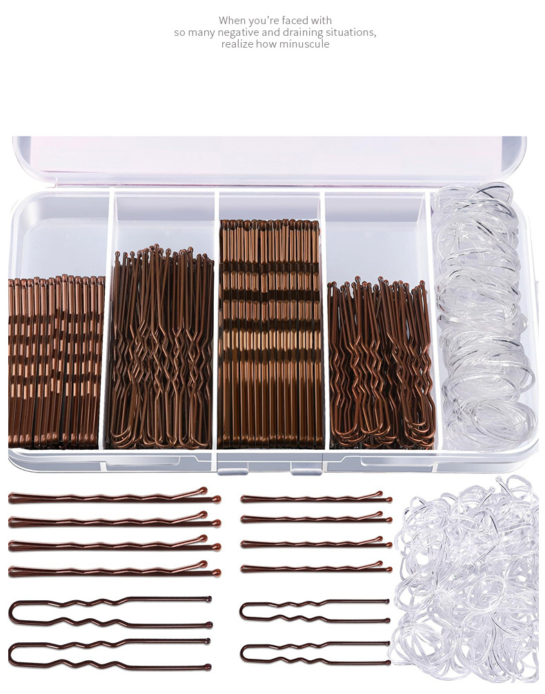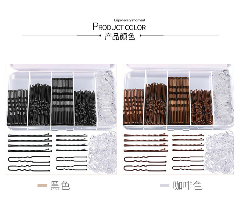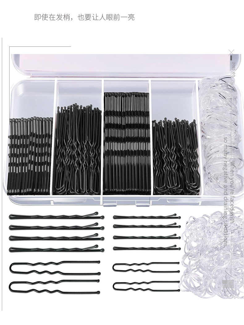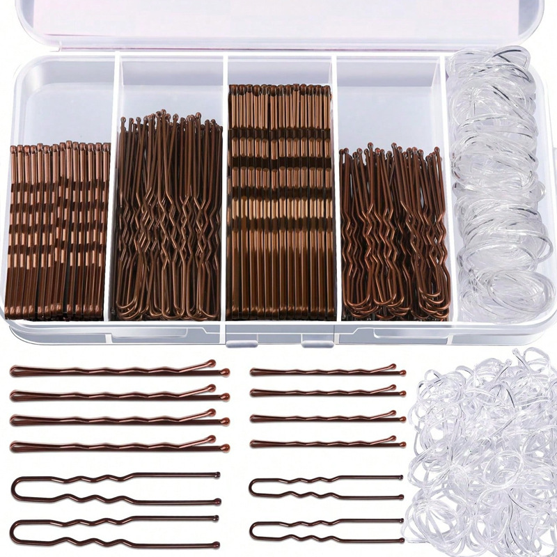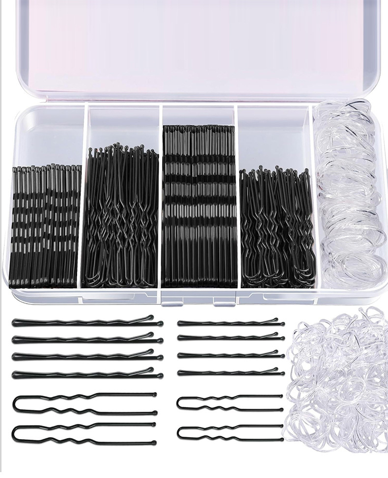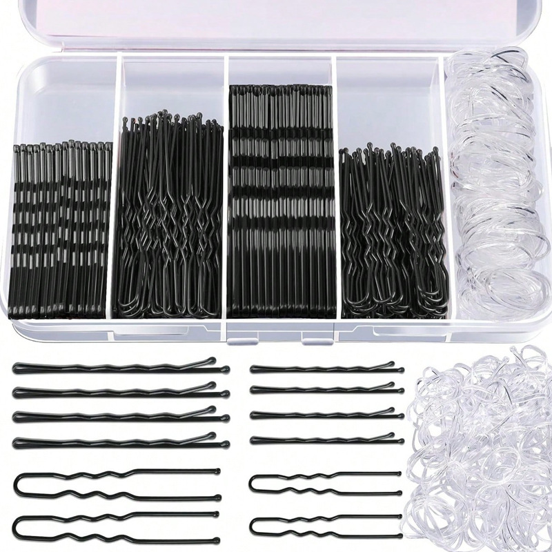 300피스 머리핀 고무줄 세트, 새로운 머리핀 박스형 원클립, 검정색 U자형 클립 세트, 머리핀 세트, 풀박스