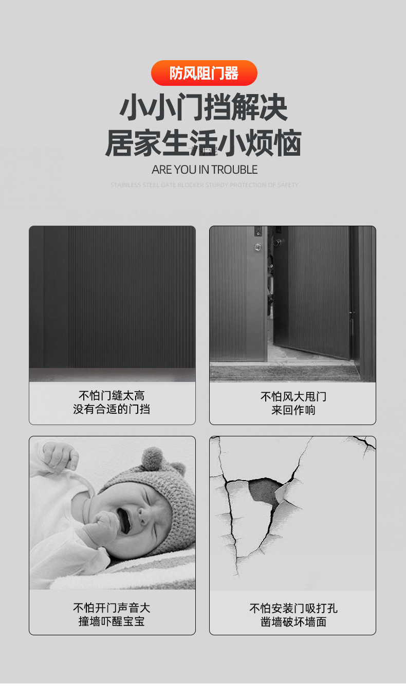 门阻器门挡门吸阻门器免打孔新款防盗阻门器门防风固定器顶门神器