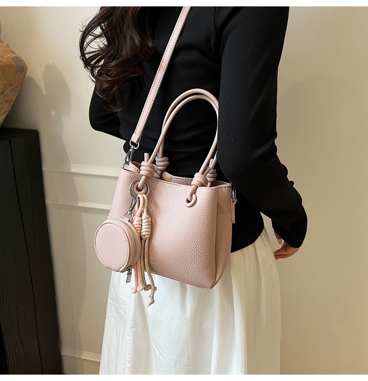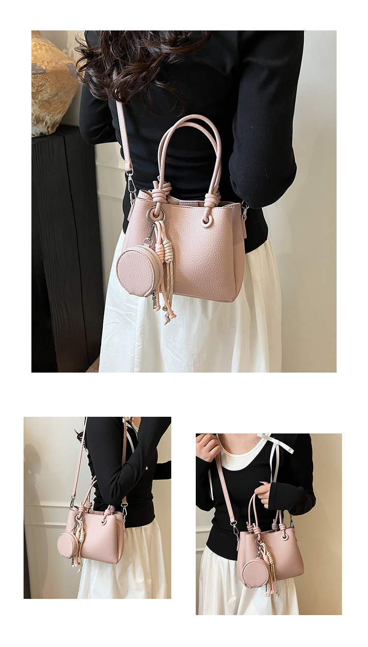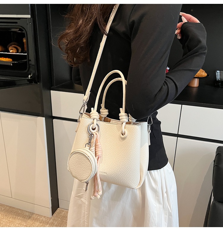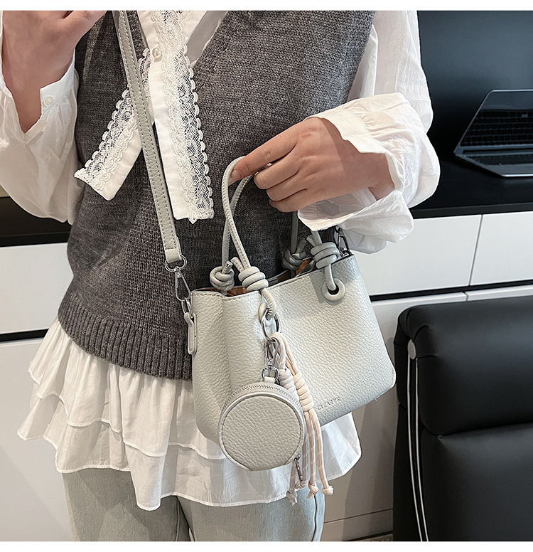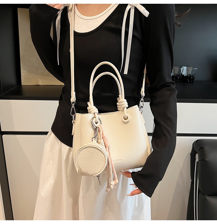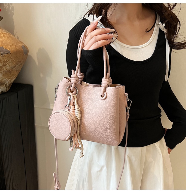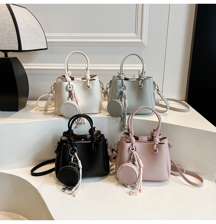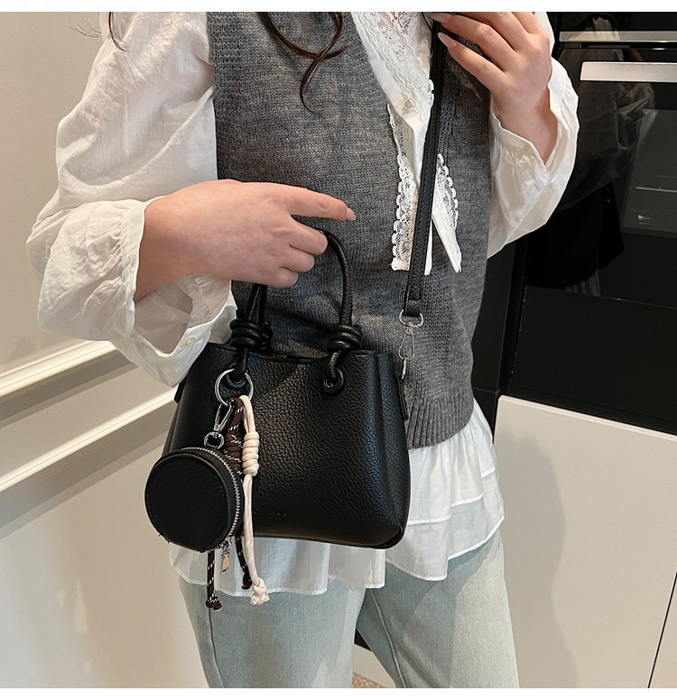 2025 새로운 한국 스타일 유행 간단한 리치 패턴 휴대용 버킷 가방 틈새 디자인 통근자 올 매치 크로스 바디 백