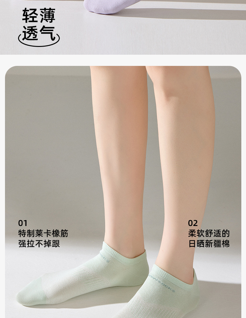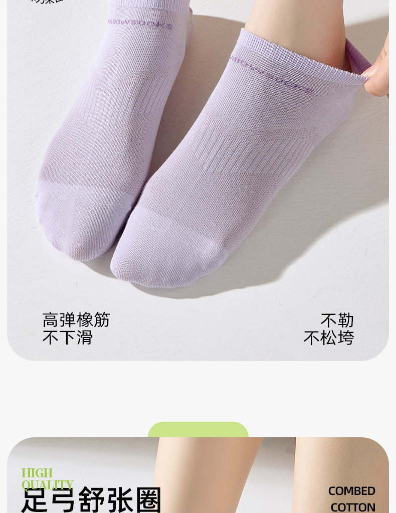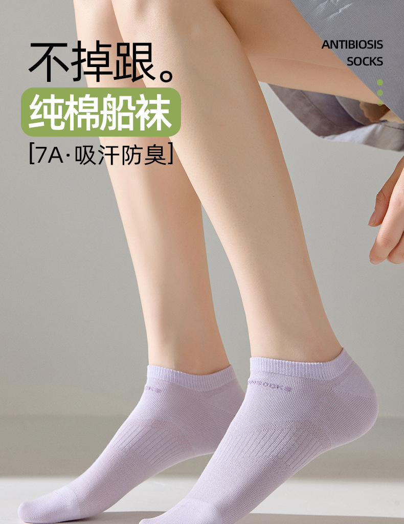 여름 여성용 맞춤형 순면 양말, 통기성, 미끄럼 방지, 발 뒤꿈치 방지 양말, 항균, 땀 흡수 및 탈취 스포츠 보트 양말스토어 가기