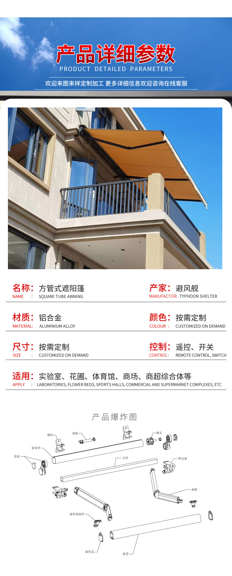 빌라용 전동 접이식 차양막, 발코니 전동 접이식 차양막, 마당 및 상점용 접이식 차양막, 풀박스스토어 가기