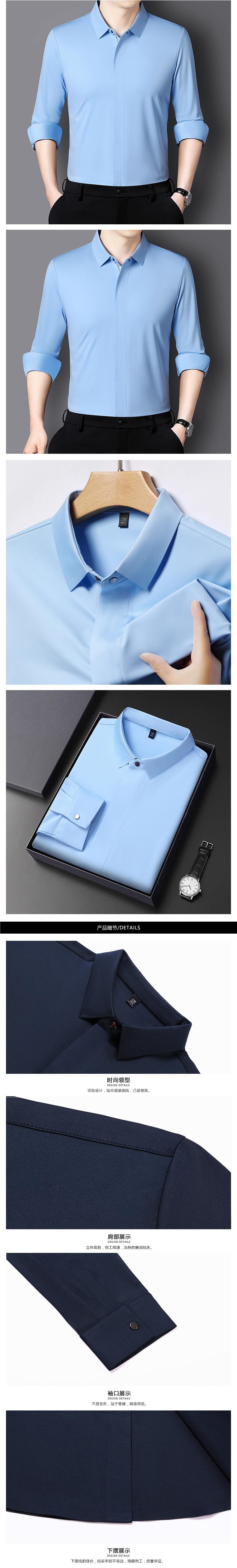V.SHOLIDAY 봄 남성 패션 솔리드 컬러 지퍼 플래킷 심리스 비즈니스 캐주얼 긴팔 셔츠/B9920스토어 가기