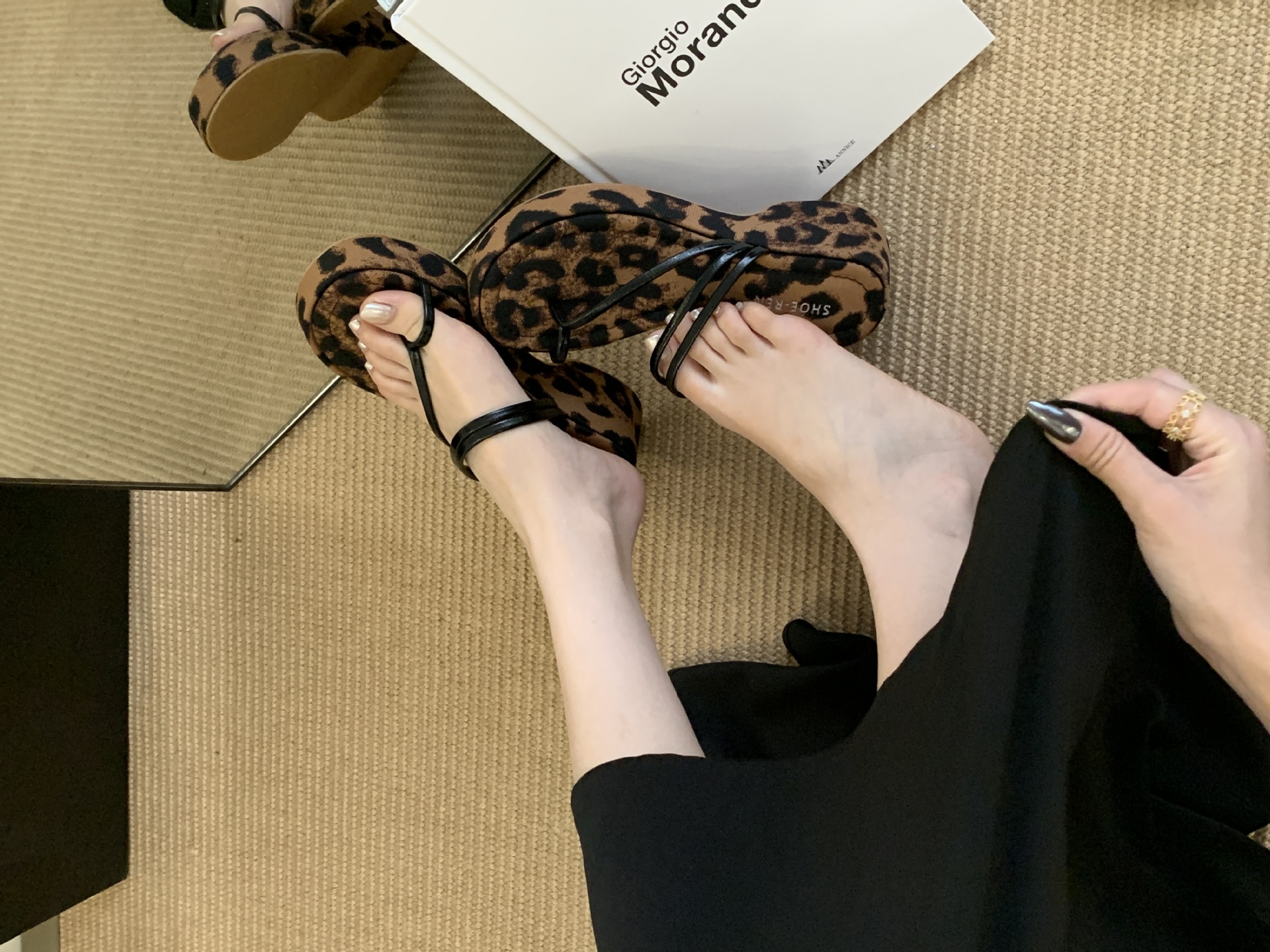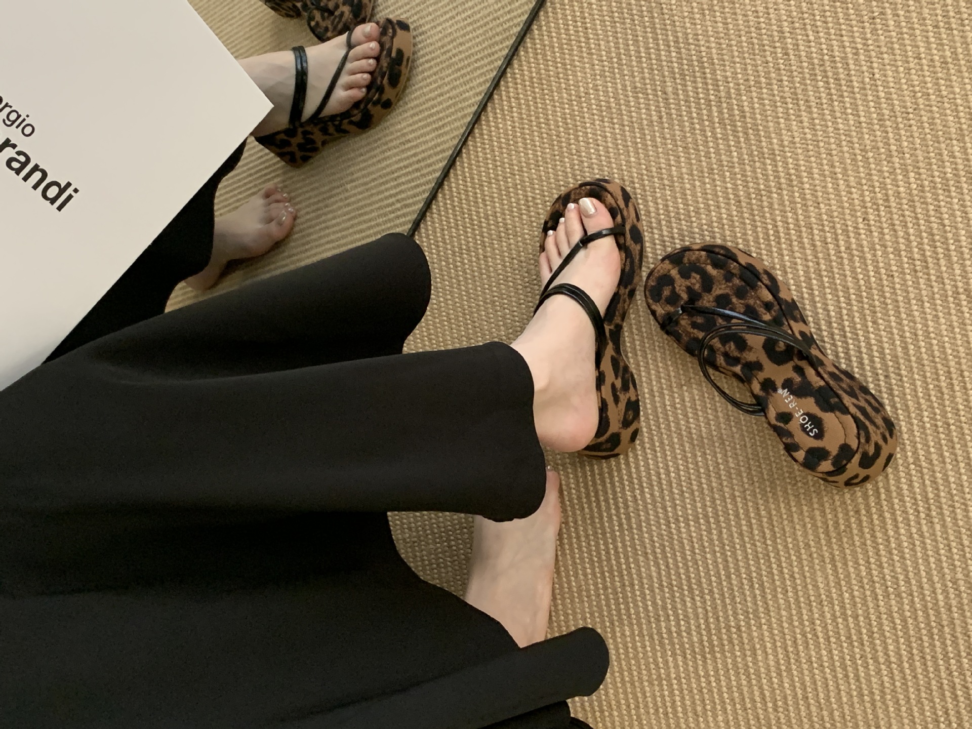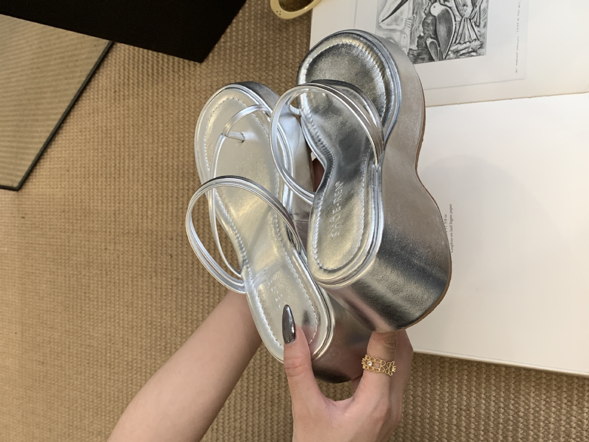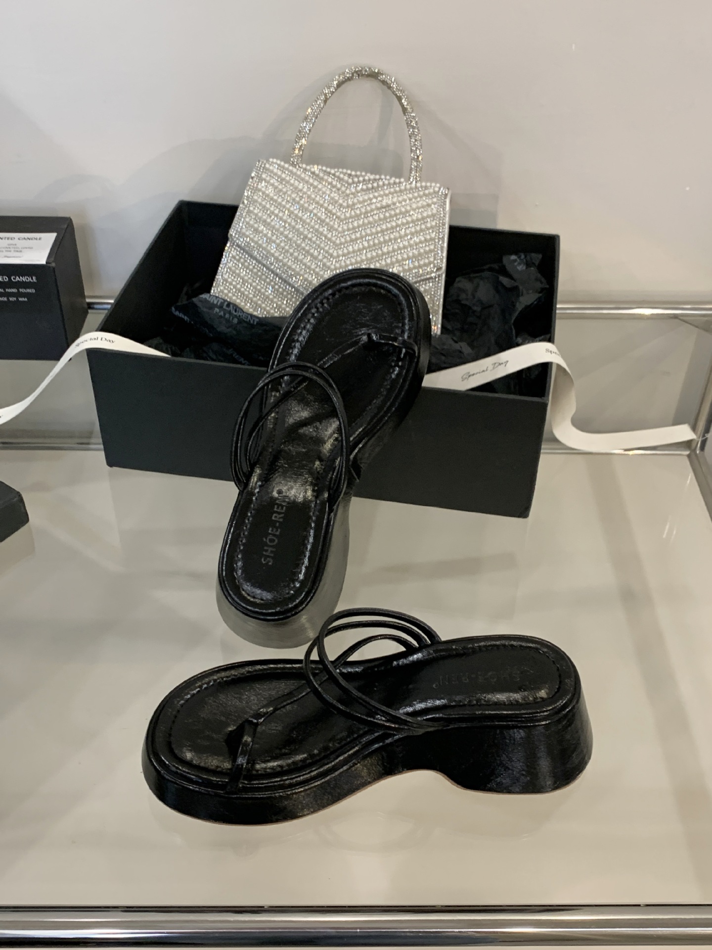 여성을위한 한국 스타일 라운드 발가락 얇은 스트랩 디자인 오픈 발가락 샌들 2025 새로운 두꺼운 밑창 웨지 슬리퍼스토어 가기