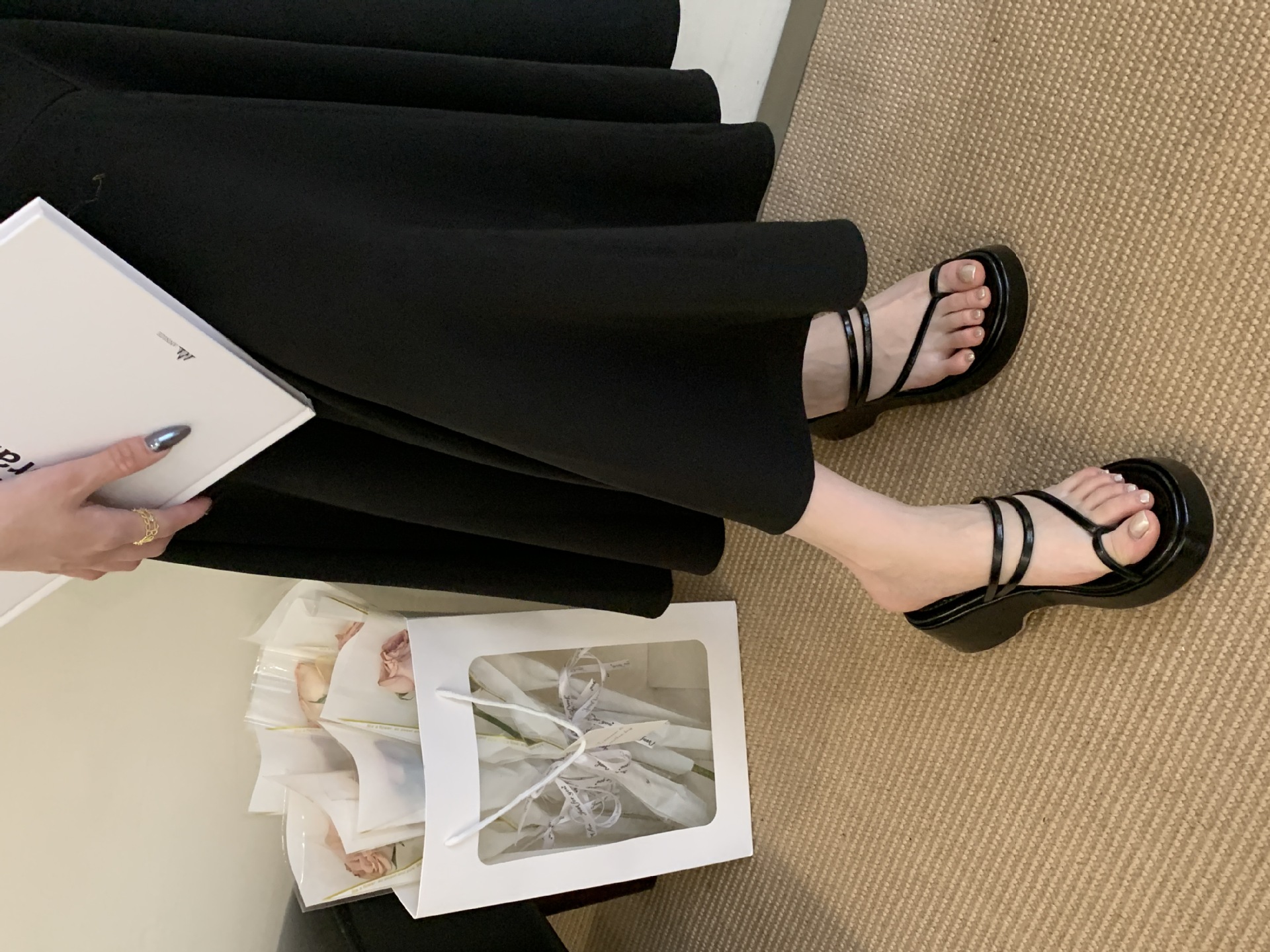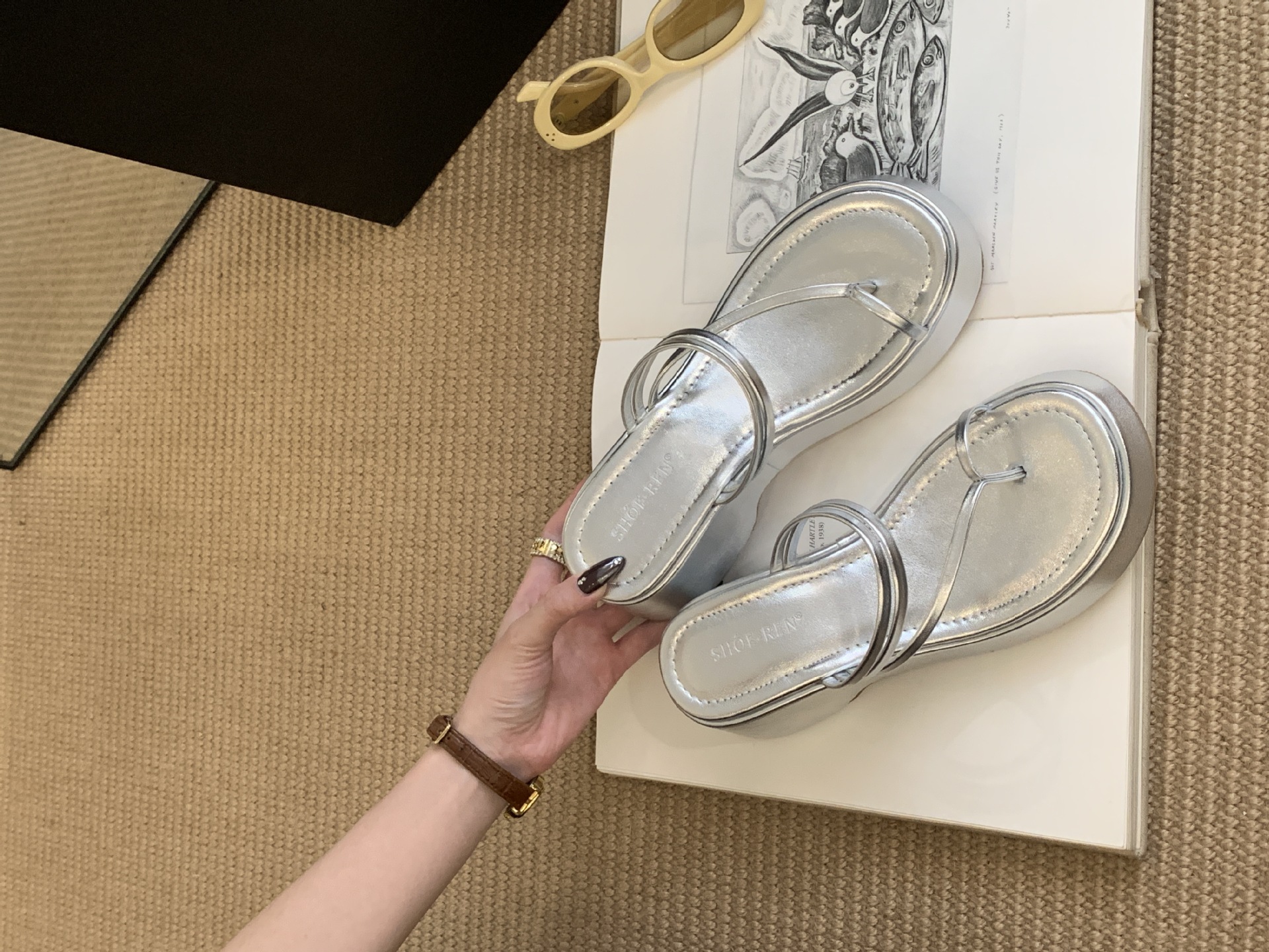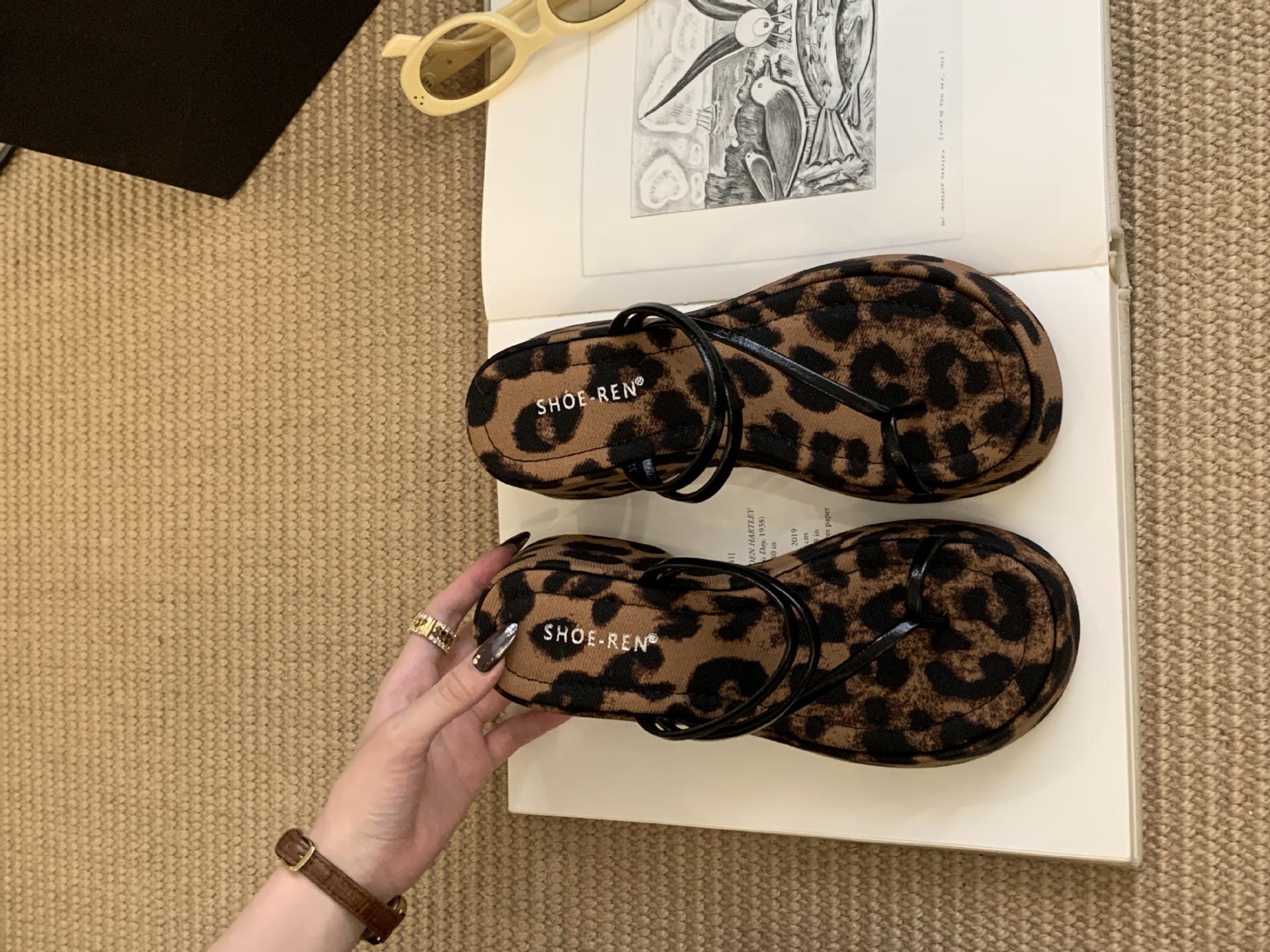 여성을위한 한국 스타일 라운드 발가락 얇은 스트랩 디자인 오픈 발가락 샌들 2025 새로운 두꺼운 밑창 웨지 슬리퍼스토어 가기