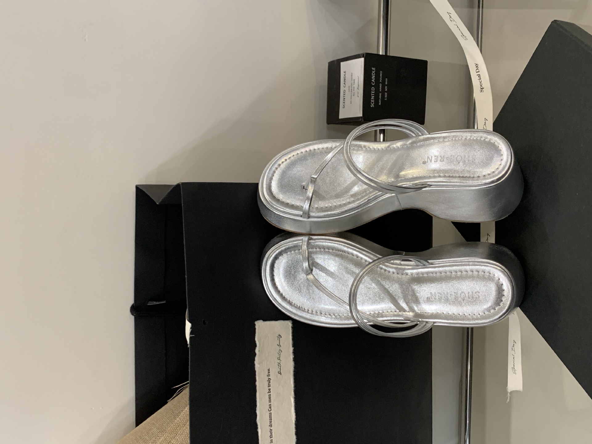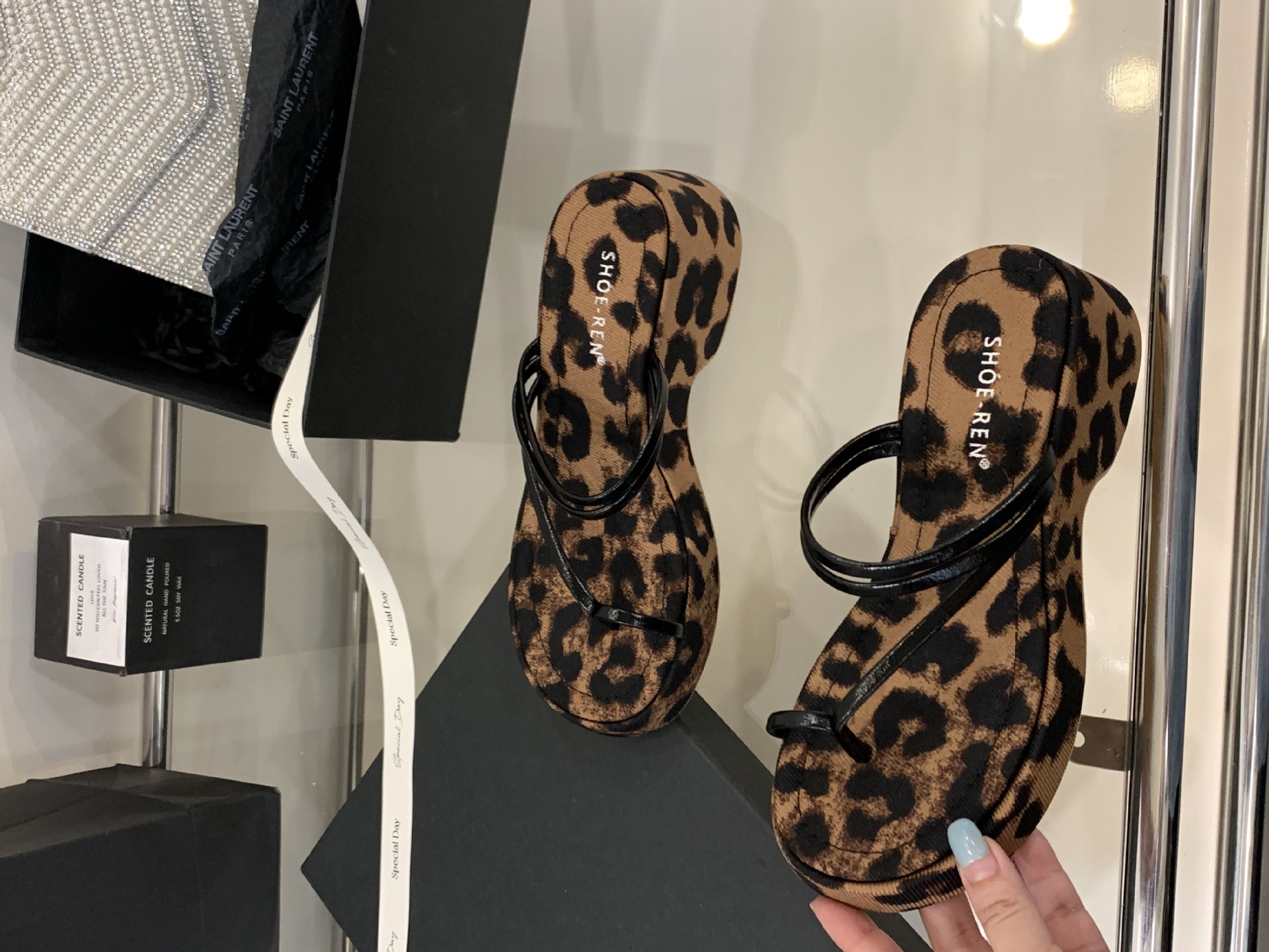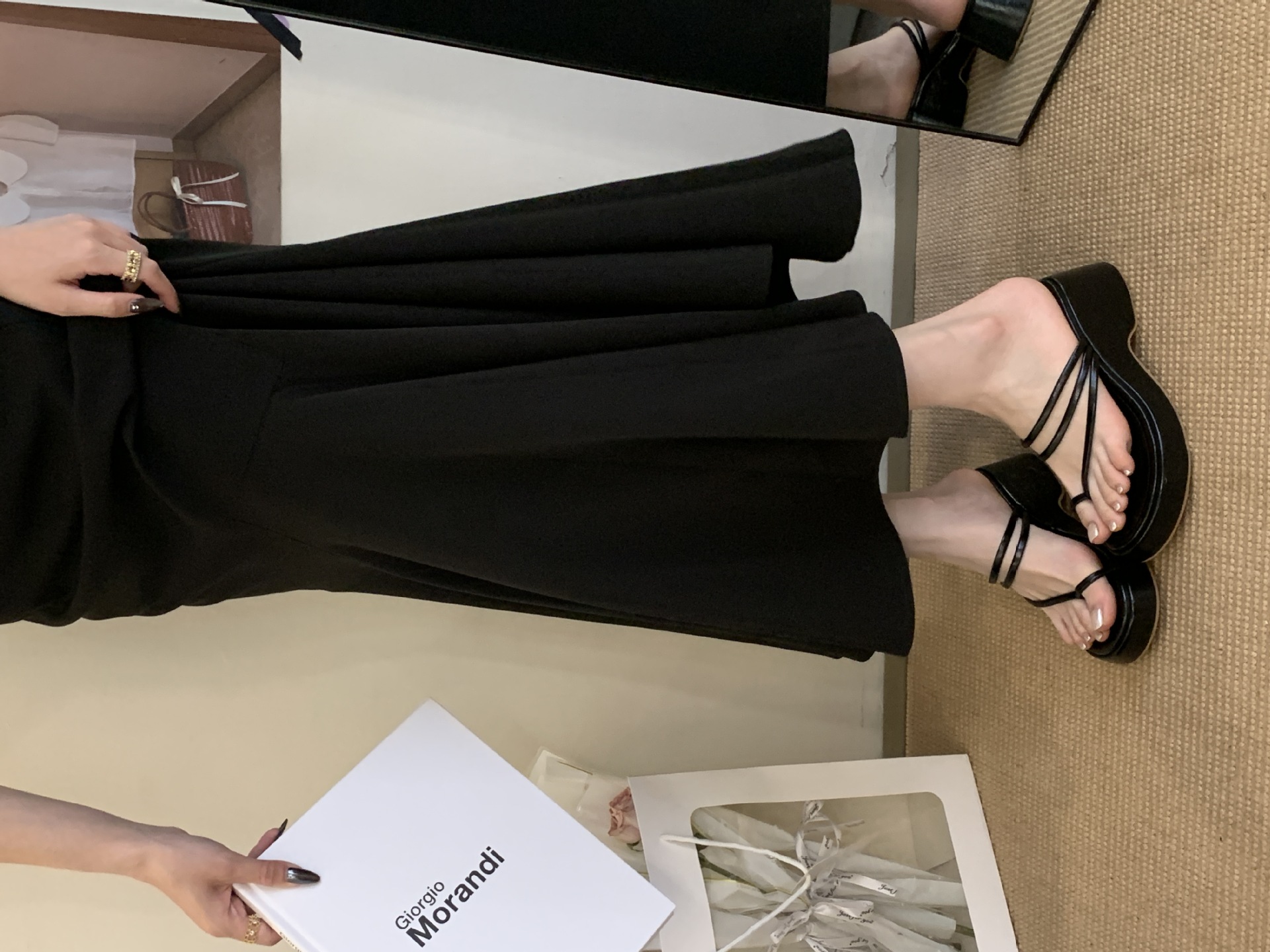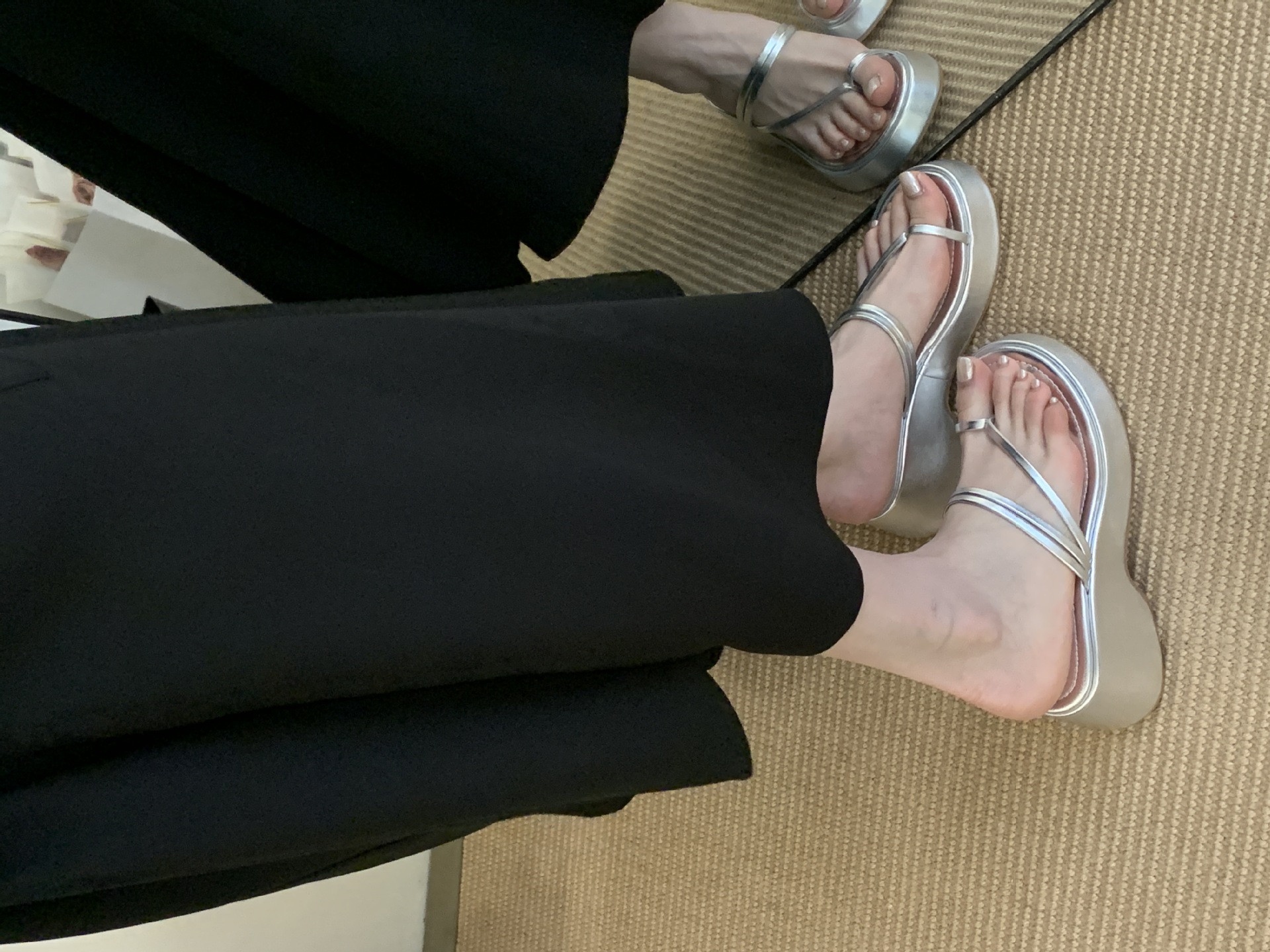 여성을위한 한국 스타일 라운드 발가락 얇은 스트랩 디자인 오픈 발가락 샌들 2025 새로운 두꺼운 밑창 웨지 슬리퍼스토어 가기