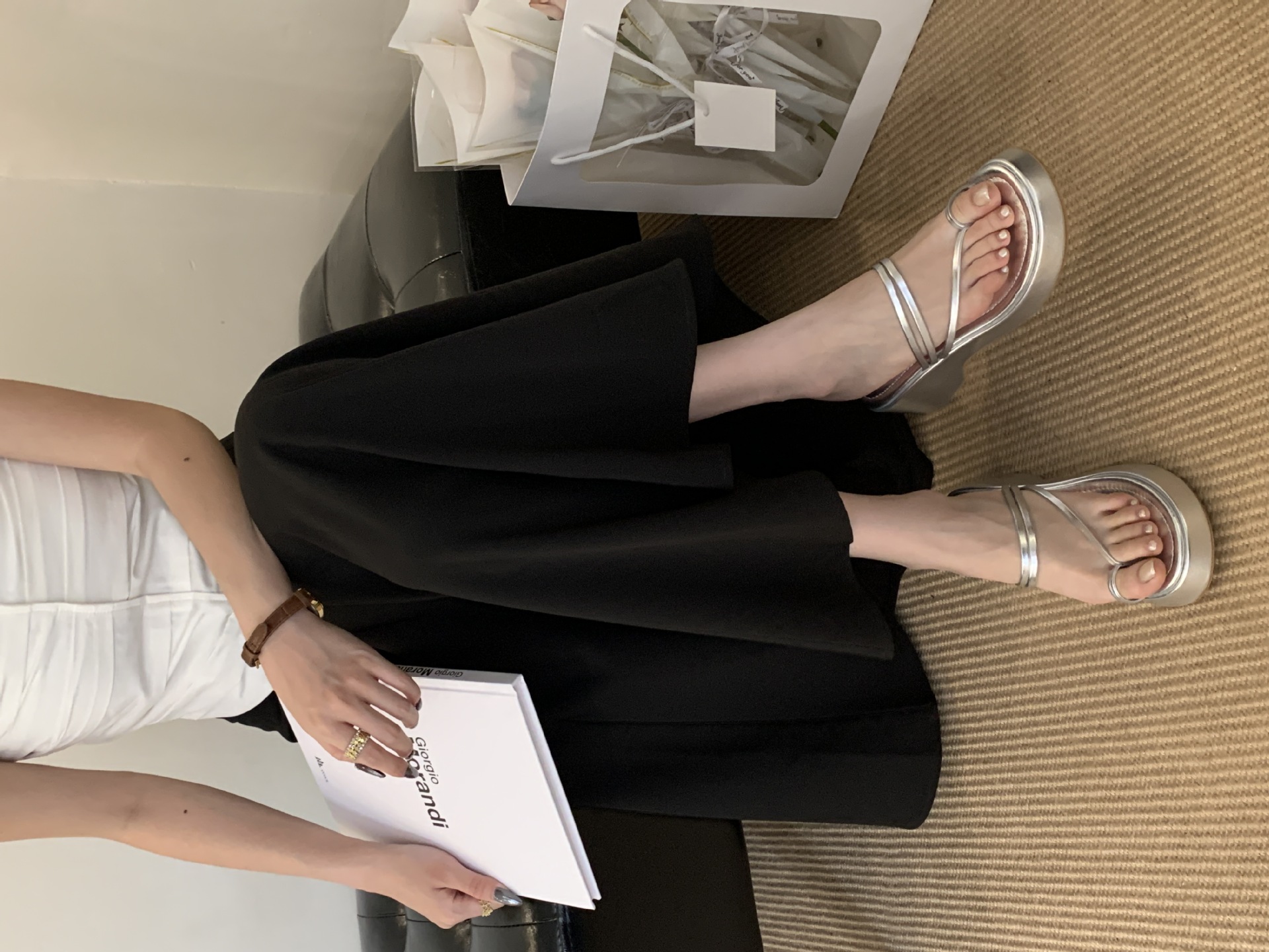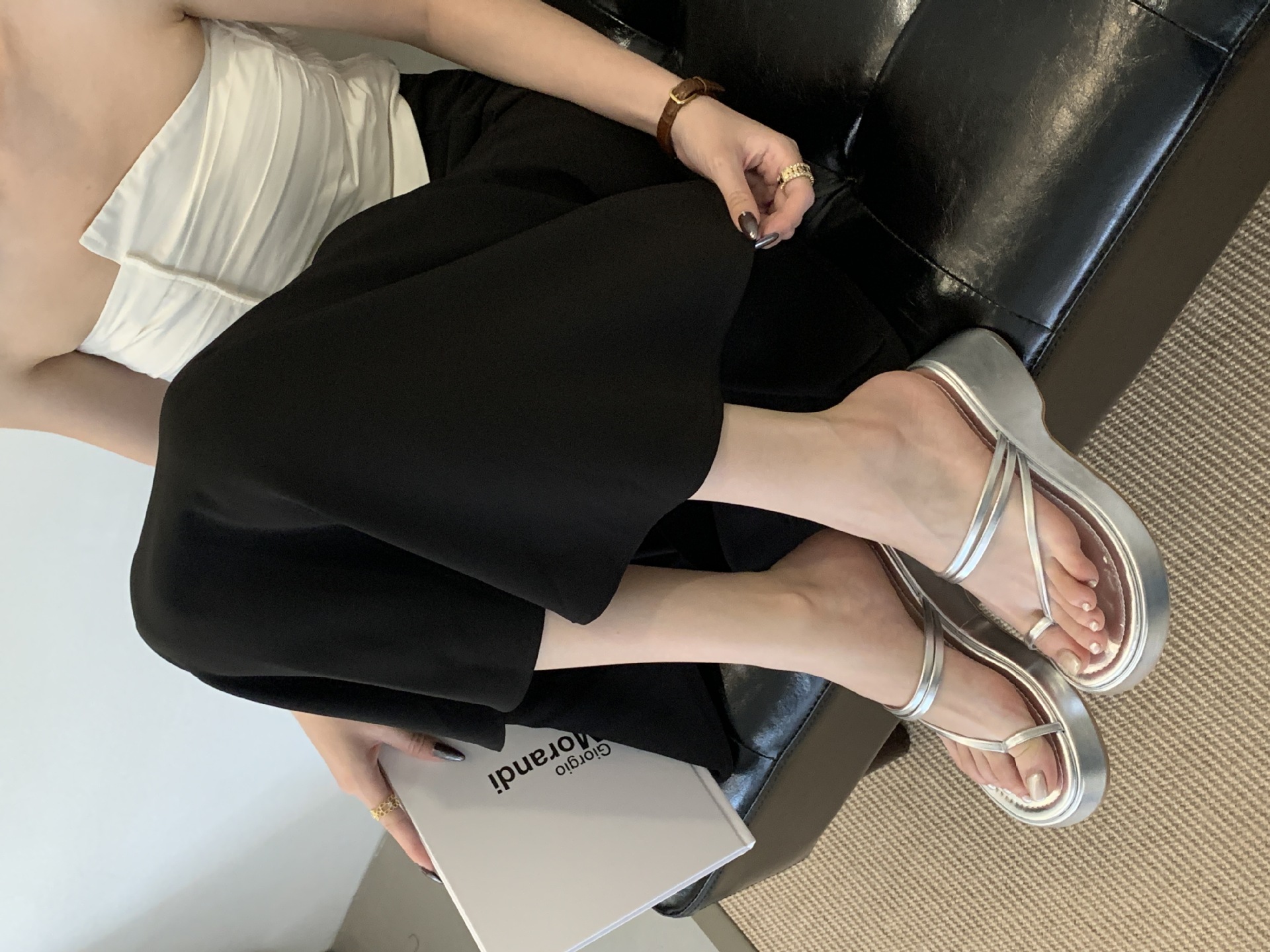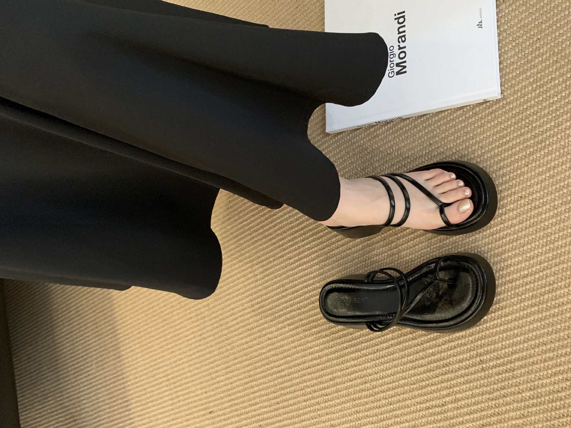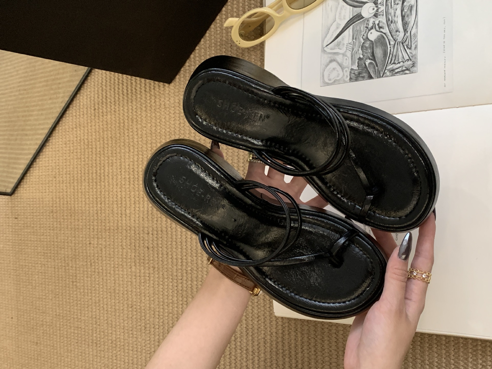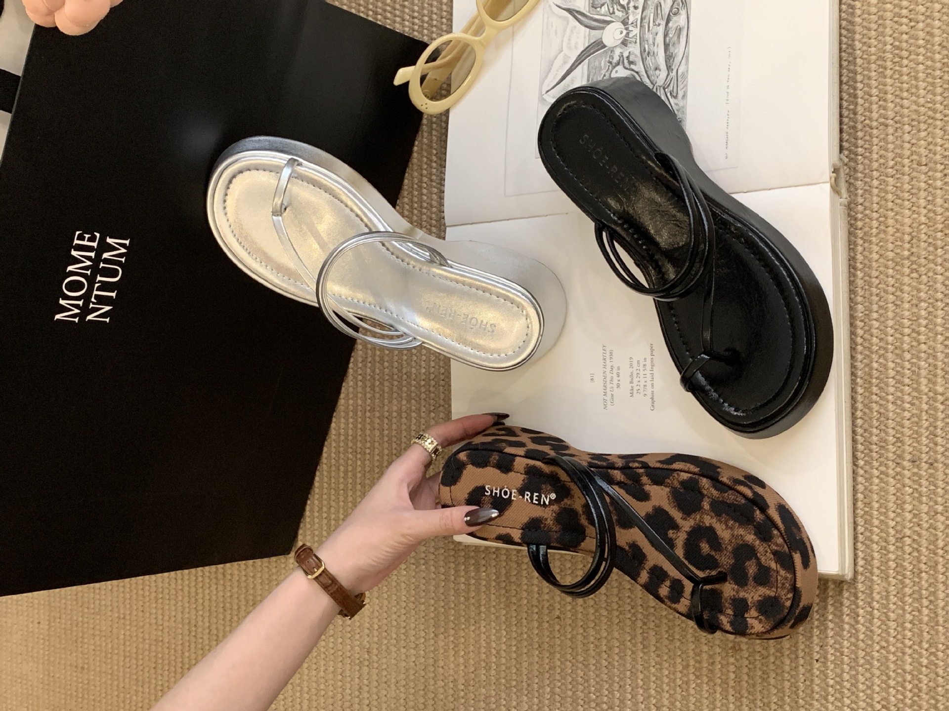 여성을위한 한국 스타일 라운드 발가락 얇은 스트랩 디자인 오픈 발가락 샌들 2025 새로운 두꺼운 밑창 웨지 슬리퍼