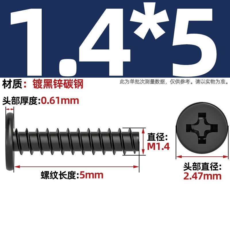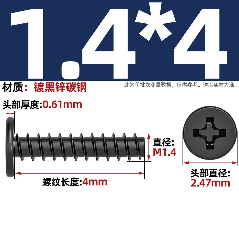 CB 블랙 니켈 도금 크로스 플랫 헤드 플랫 테일 셀프 태핑 스크류 얇은 대형 플랫 헤드 M1.2M1.4M2.3M2.6M3