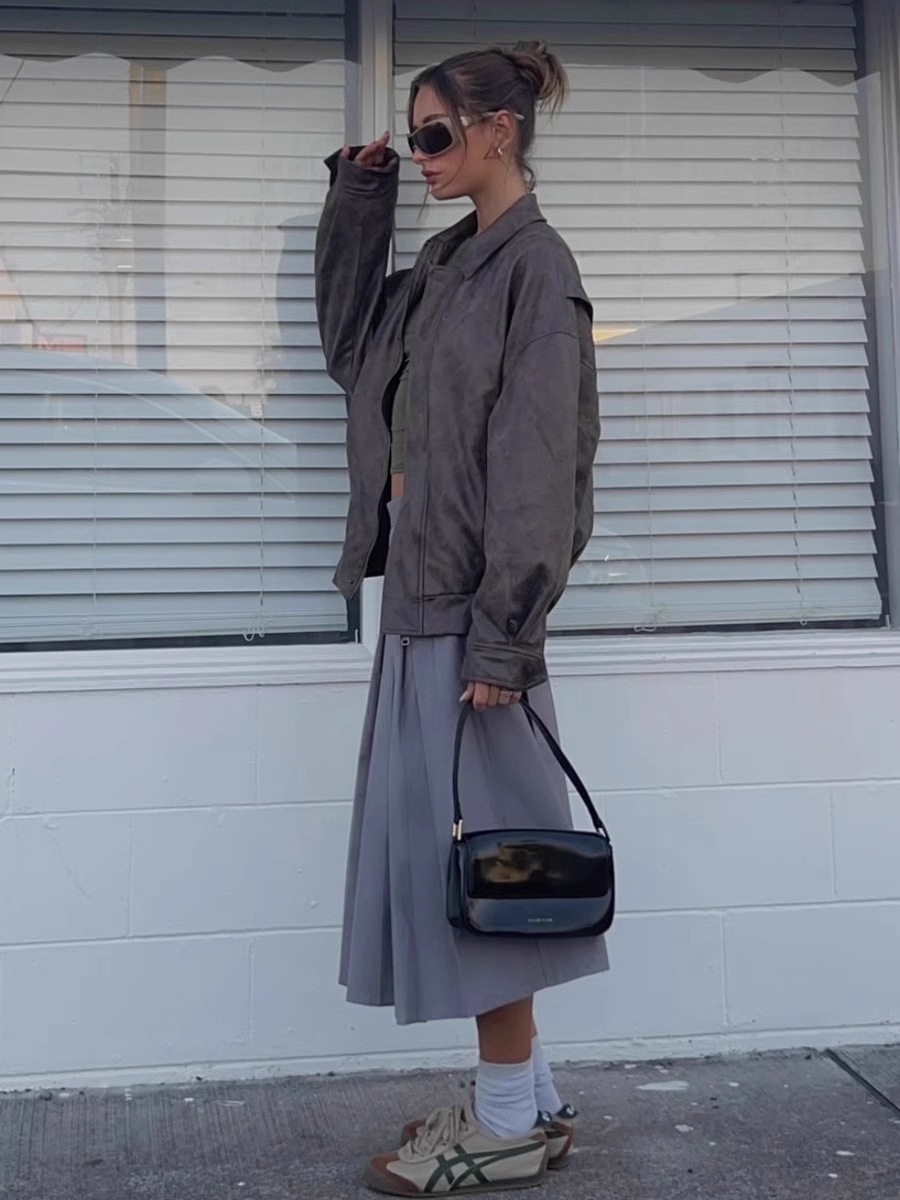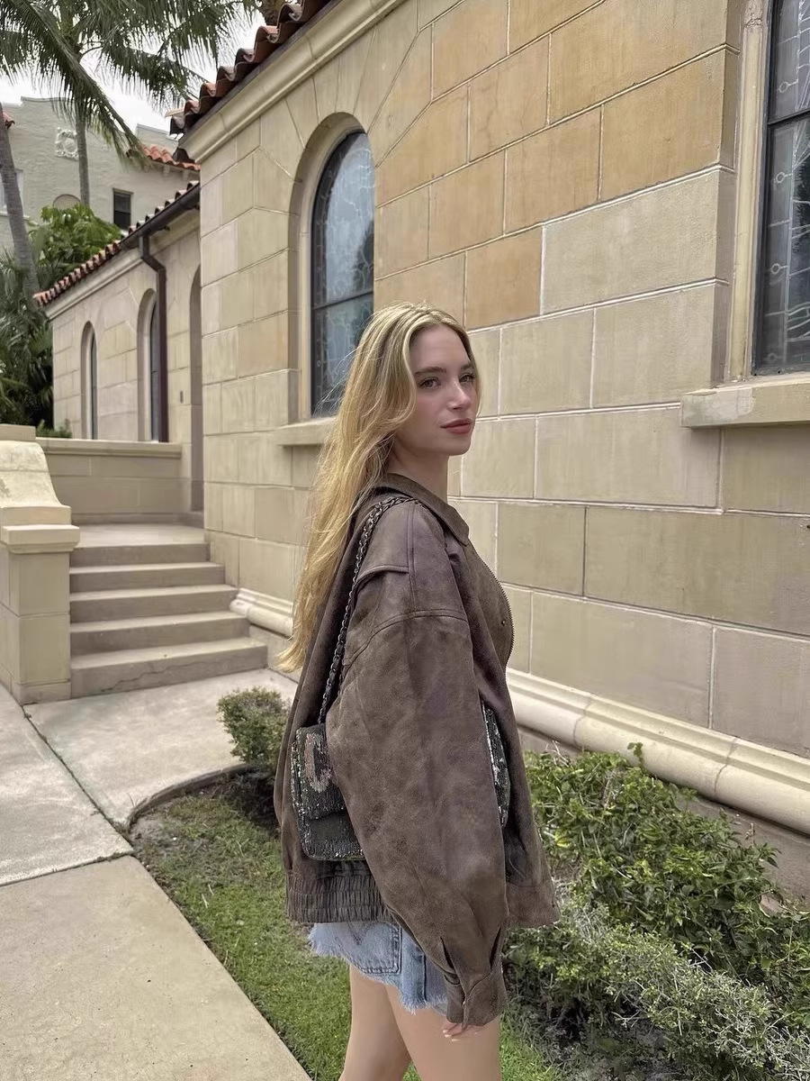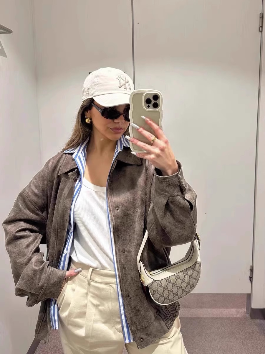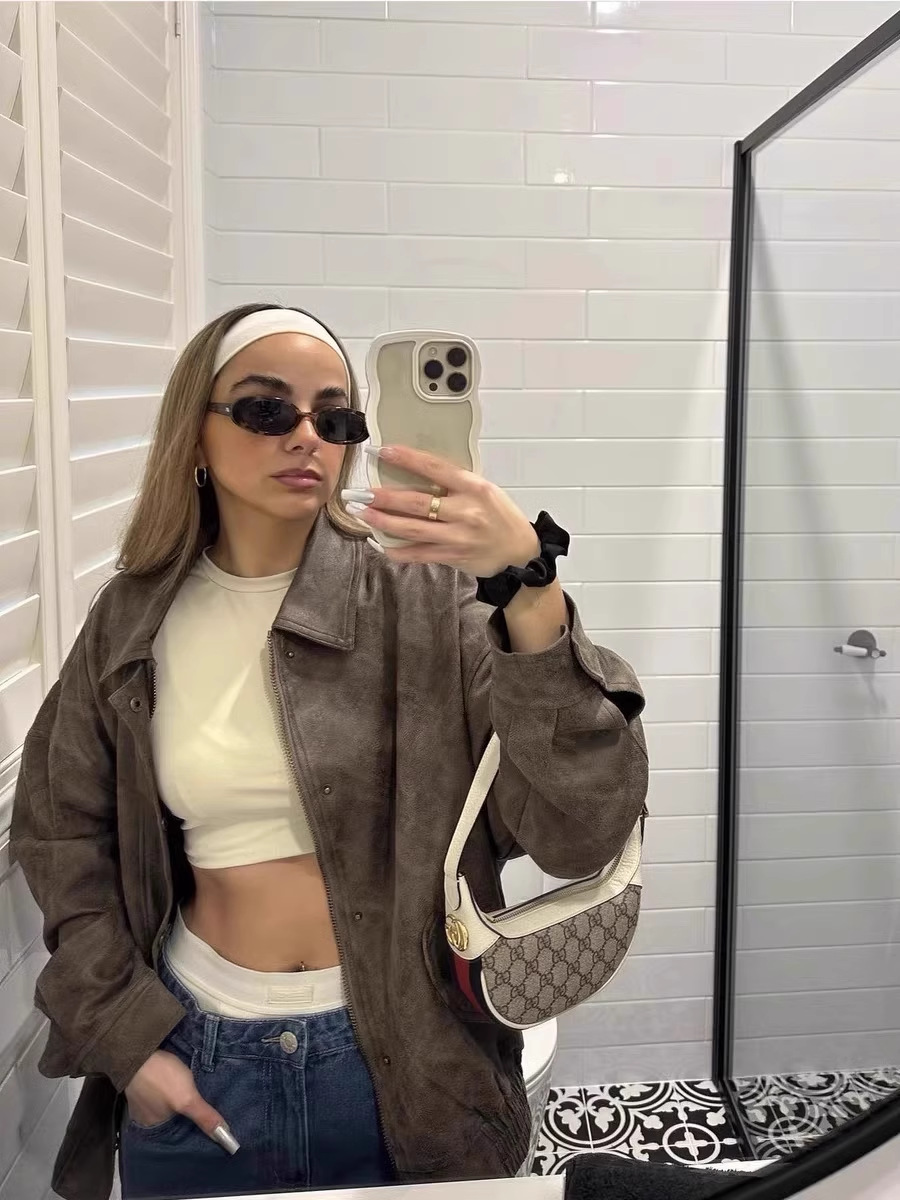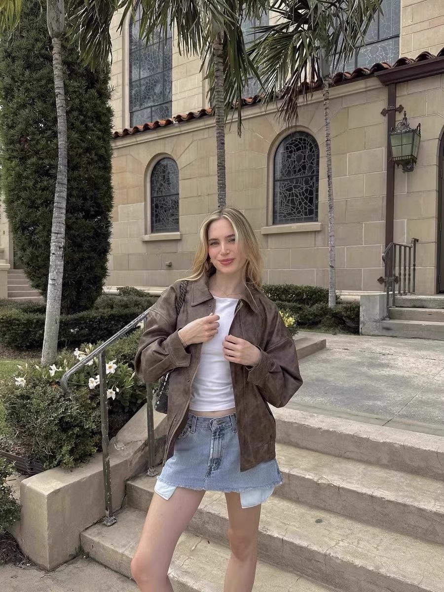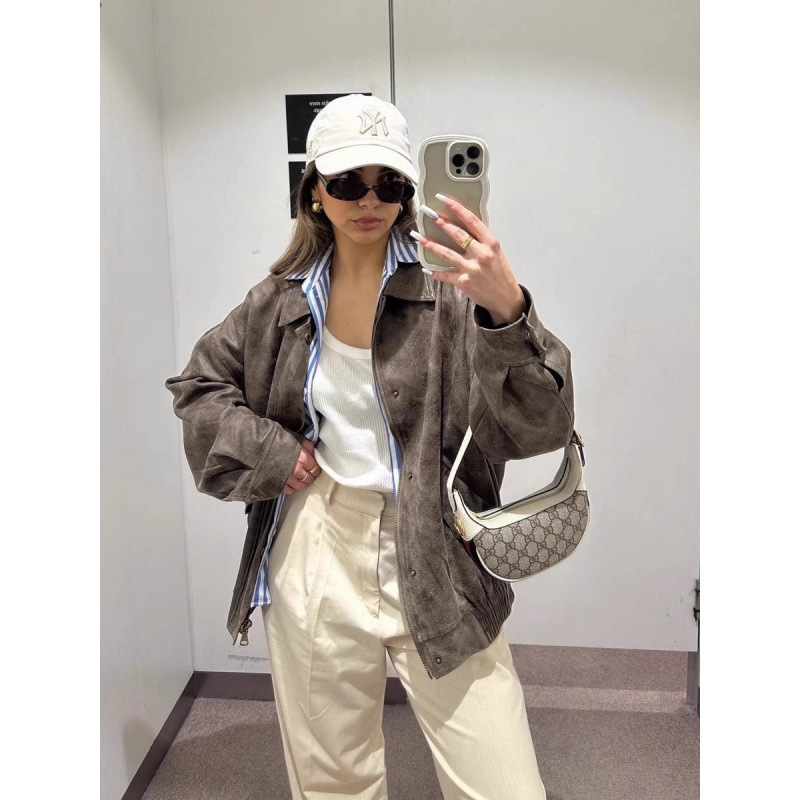 Lioness 가죽 자켓 스웨이드 아메리칸 레트로 브라운 루즈 실루엣 여성용 폭격기 재킷 탑스토어 가기