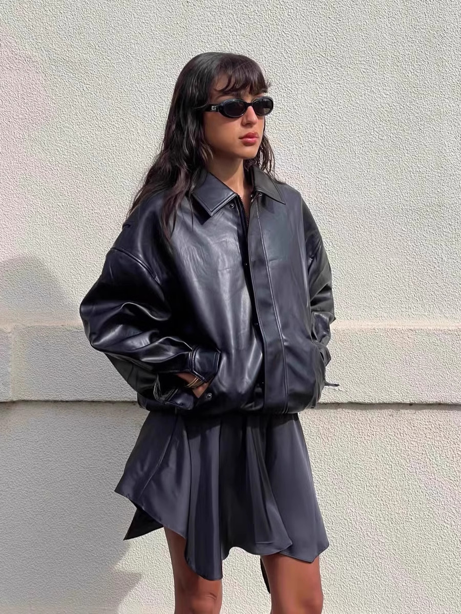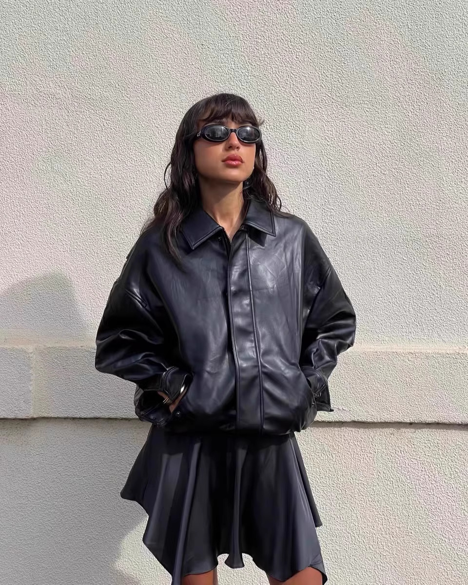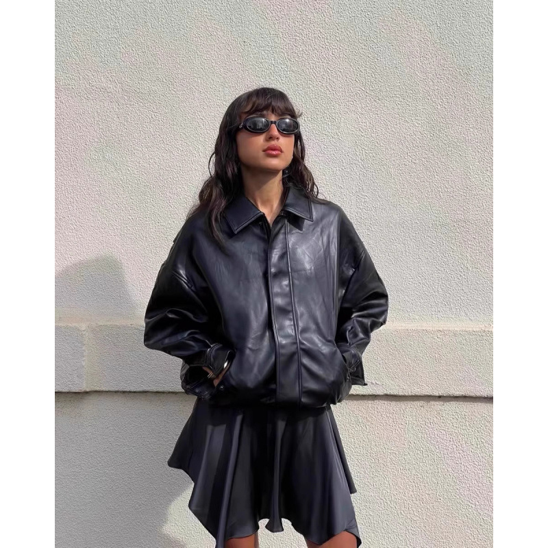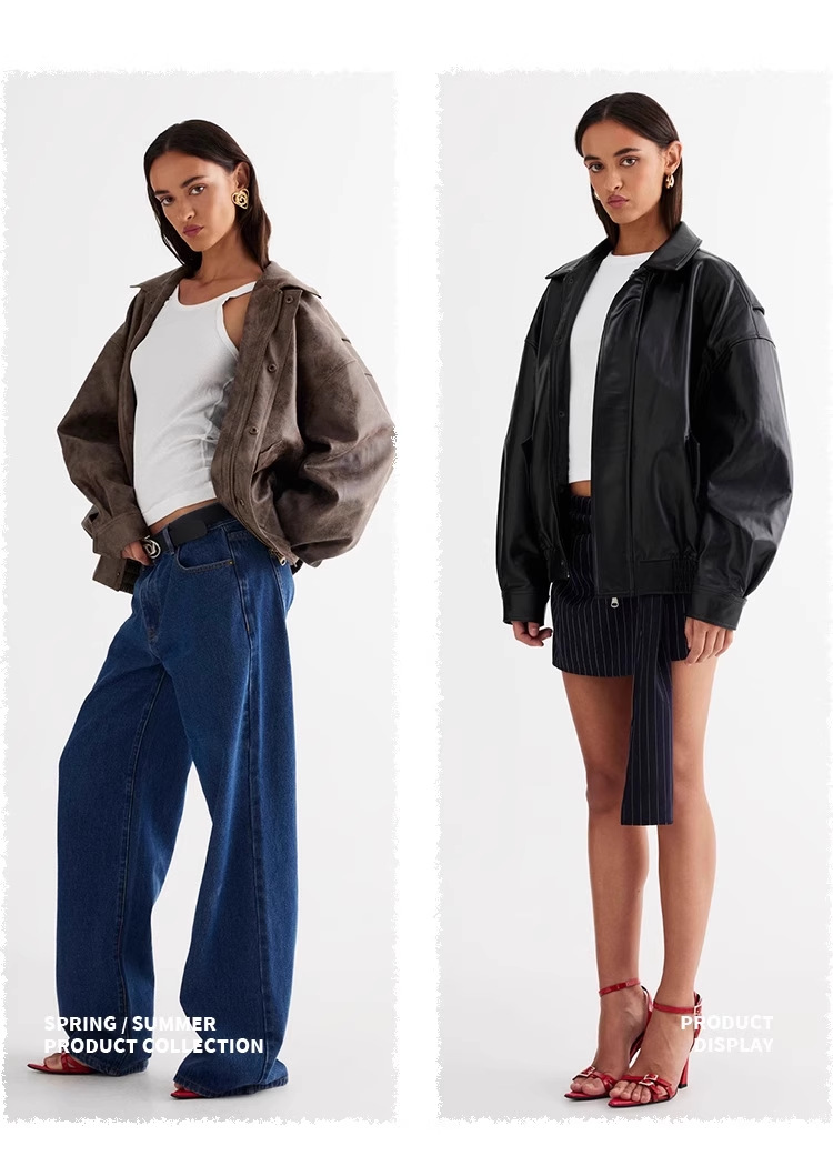 Lioness 가죽 자켓 스웨이드 아메리칸 레트로 브라운 루즈 실루엣 여성용 폭격기 재킷 탑