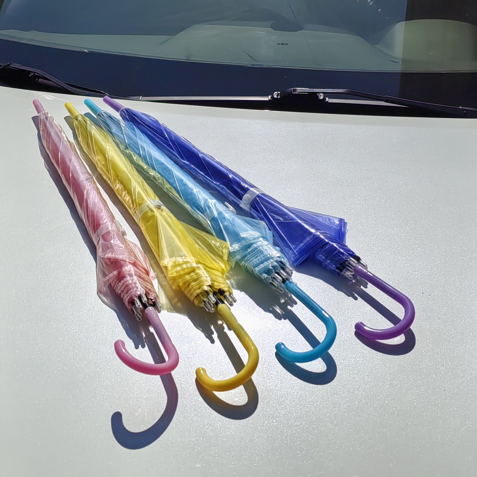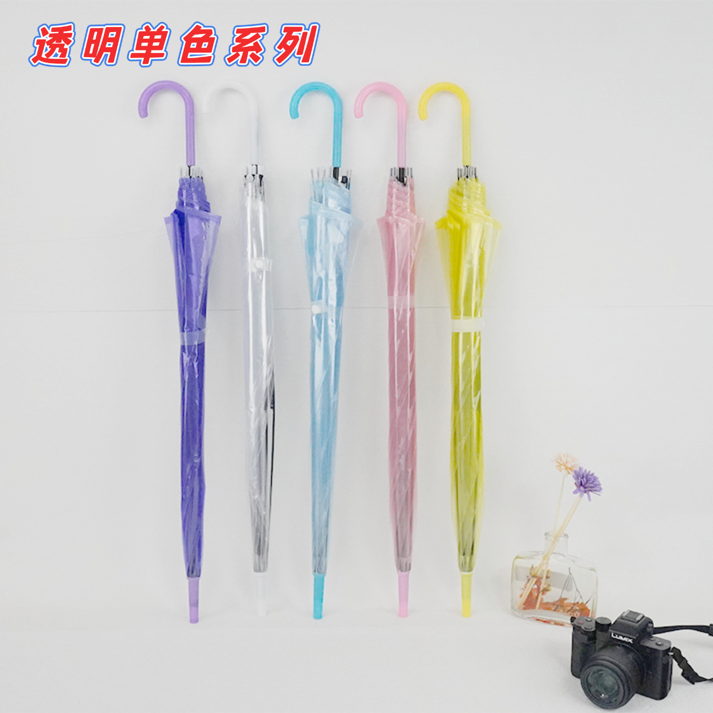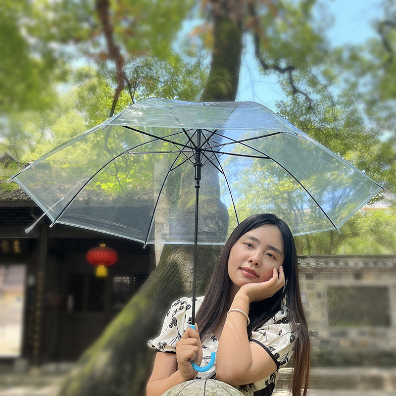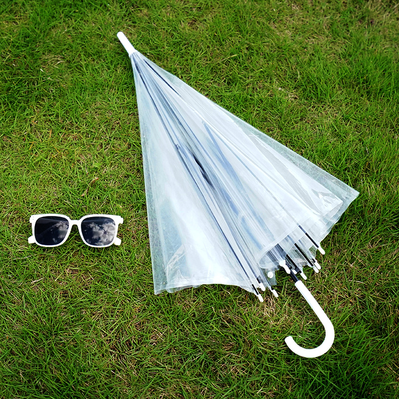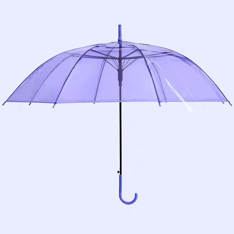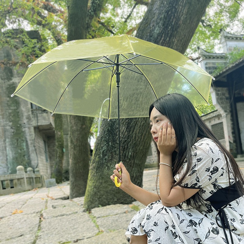 크리 에이 티브 작은 신선한 일회용 투명 우산 도매 긴 손잡이 자동 투명 우산 어린이 캔디 컬러 광고 우산