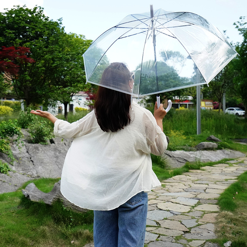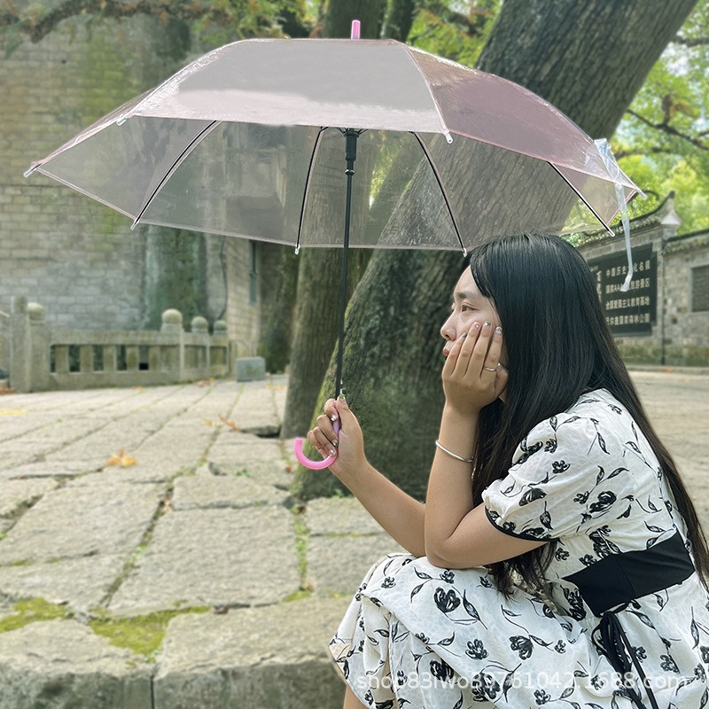 크리 에이 티브 작은 신선한 일회용 투명 우산 도매 긴 손잡이 자동 투명 우산 어린이 캔디 컬러 광고 우산스토어 가기