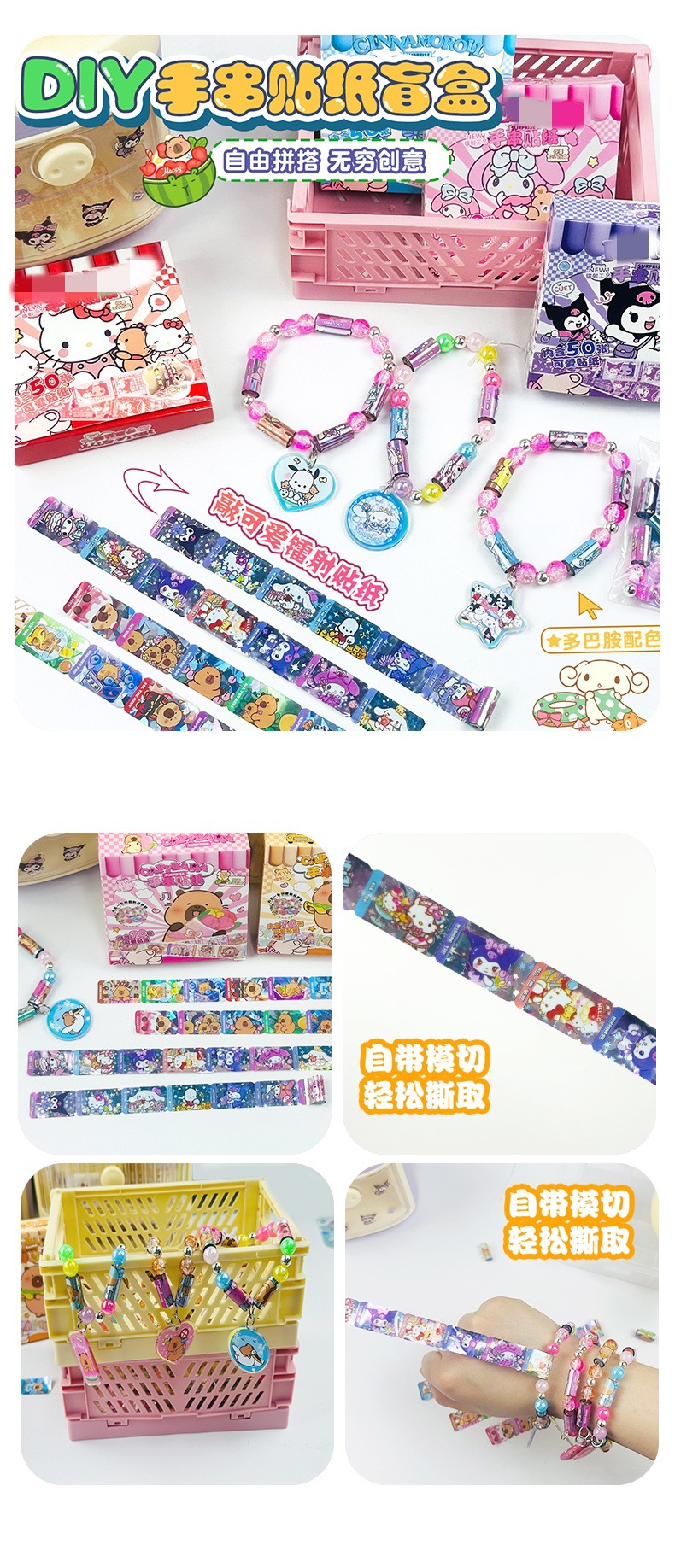 국경 간 팔찌 스티커, 팔찌 스티커, 어린이 DIY 수제 펜던트, 귀여운 만화 교육 깜짝 블라인드 박스 장난감