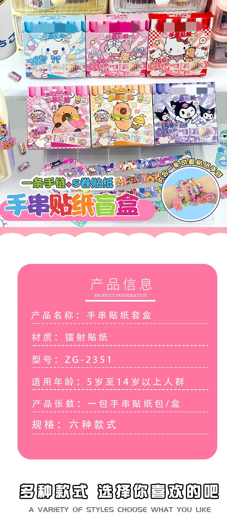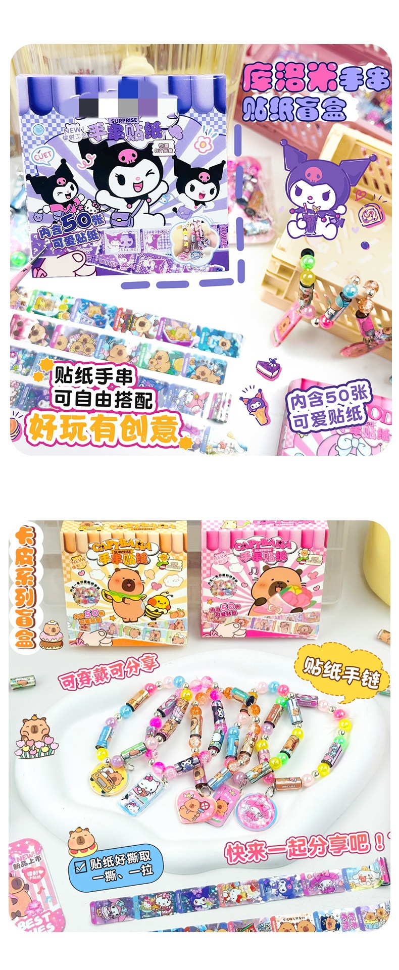 국경 간 팔찌 스티커, 팔찌 스티커, 어린이 DIY 수제 펜던트, 귀여운 만화 교육 깜짝 블라인드 박스 장난감스토어 가기