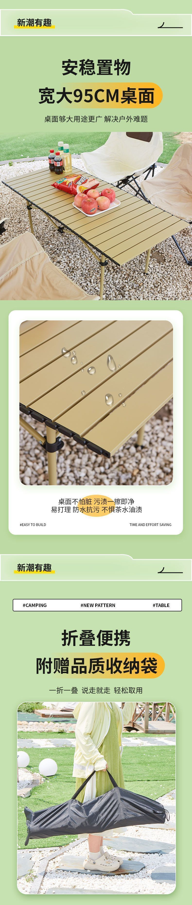 • [강력한 내하력 | 두꺼운 철합금] 유사황색-[95*53cm 긴 테이블] + 수납가방