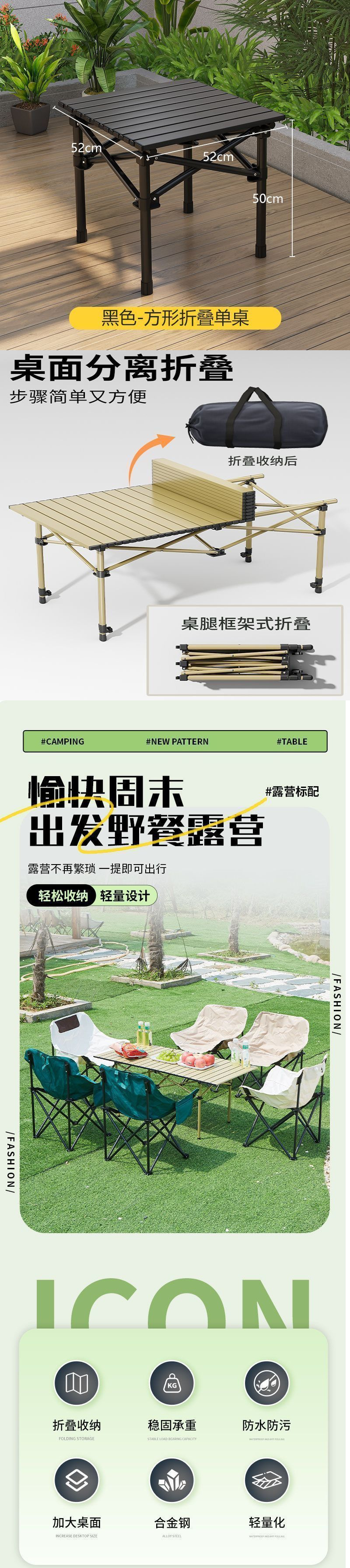 • [강력한 내하력 | 두꺼운 철합금] 유사황색-[53*51cm 사각 테이블] + 수납가방