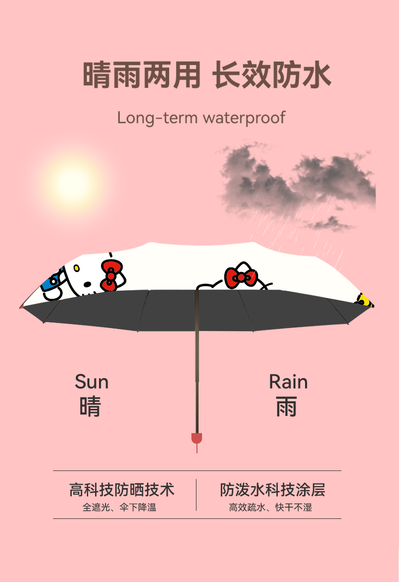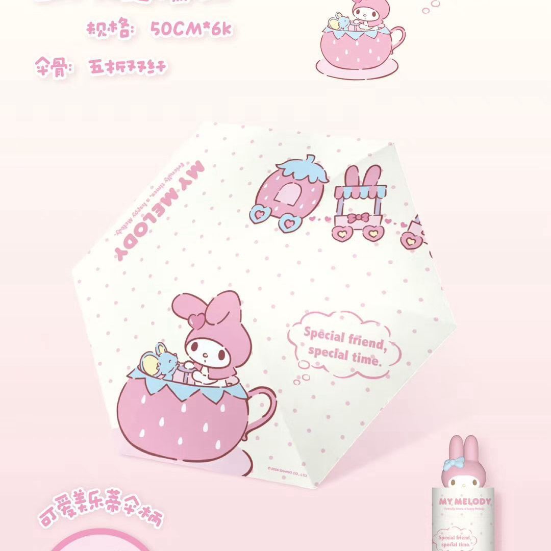 Sanrio 정품 공인 헬로키티 쿠로미 50% off 우산 귀여운 만화 귀여운 소녀 비 또는 샤인 우산