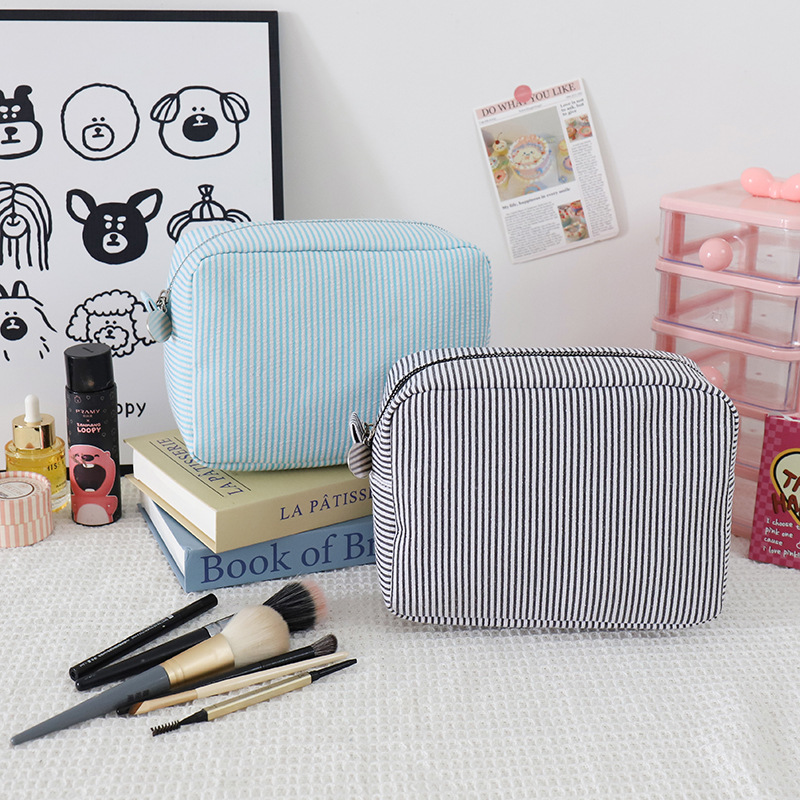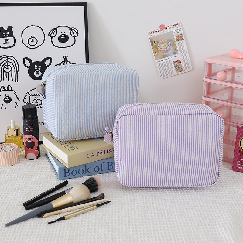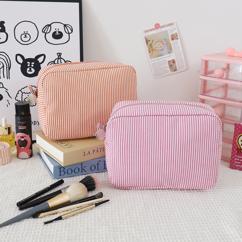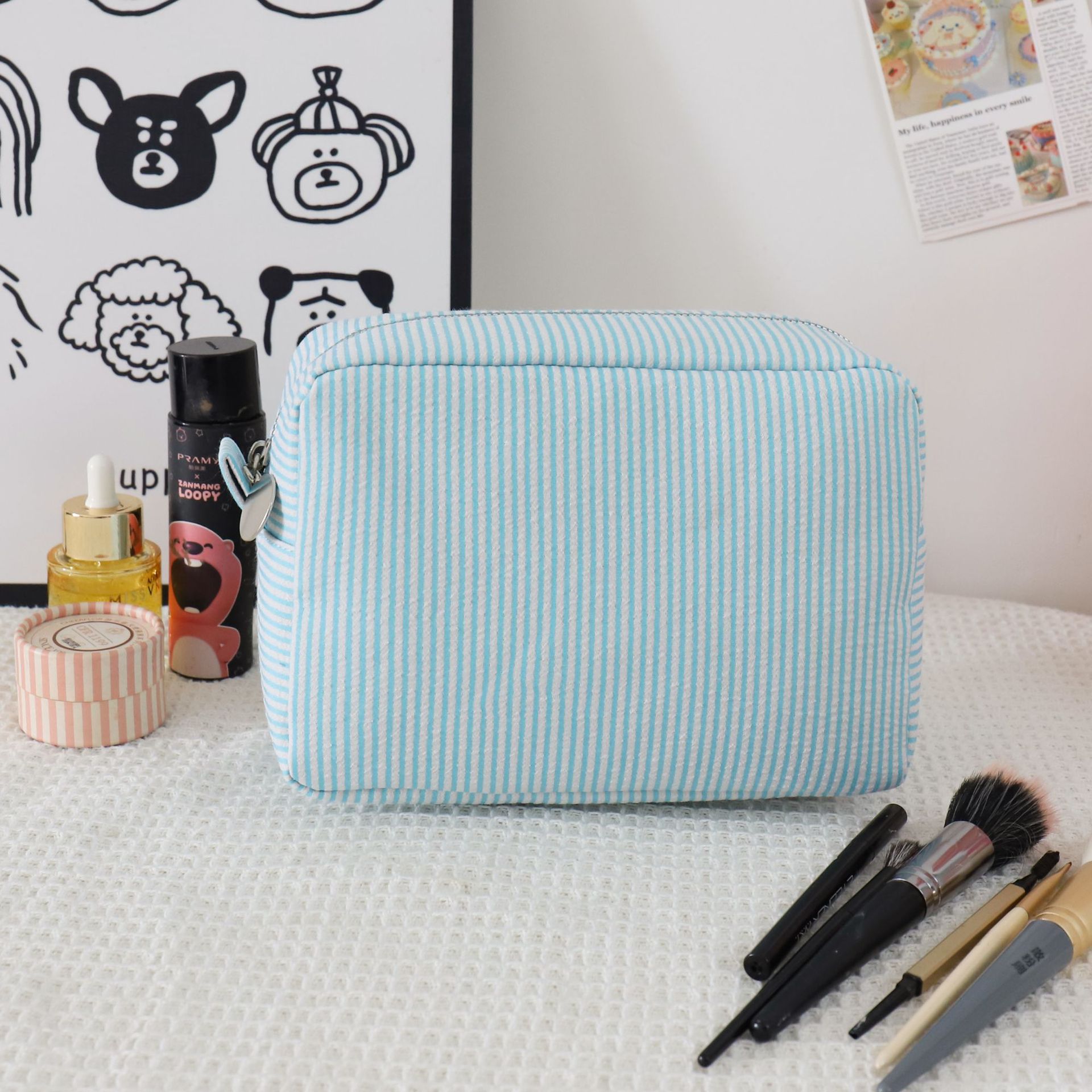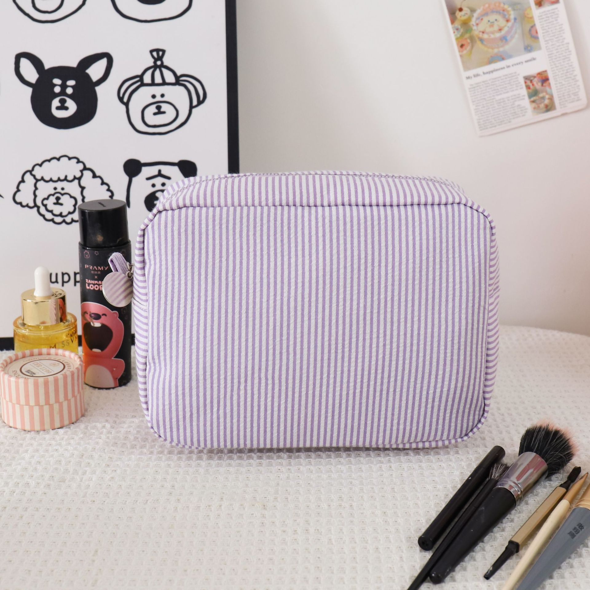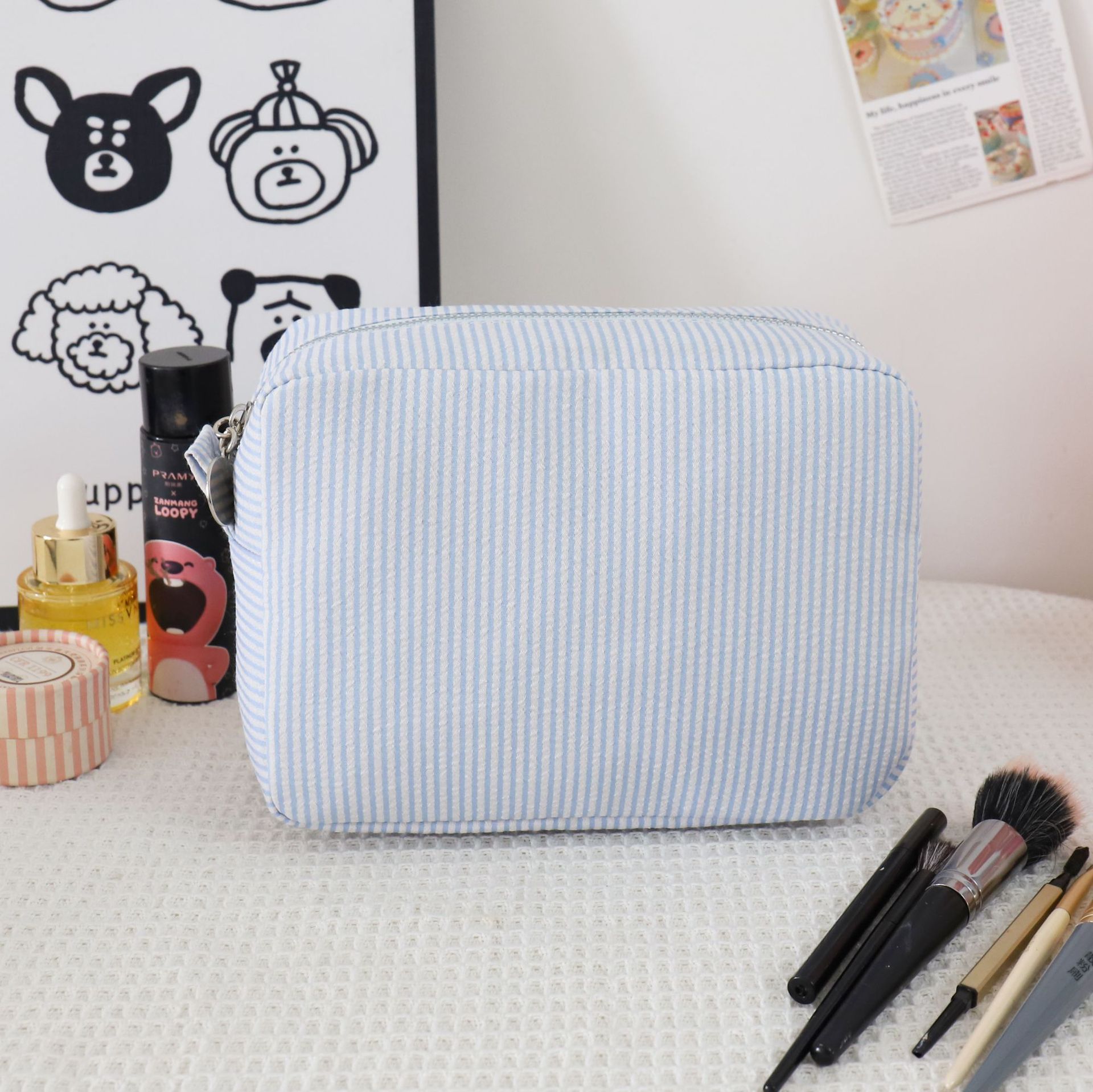 새로운 트렌디한 심플 대용량 수납가방, 시어서커 화장품 가방, 휴대용 세면도구 수납 여행 가방