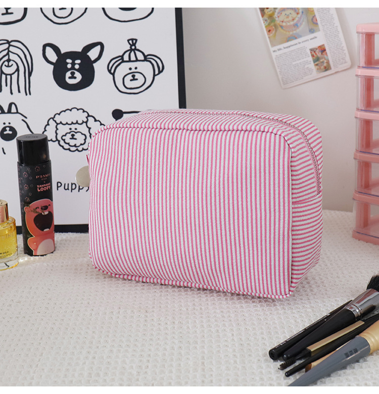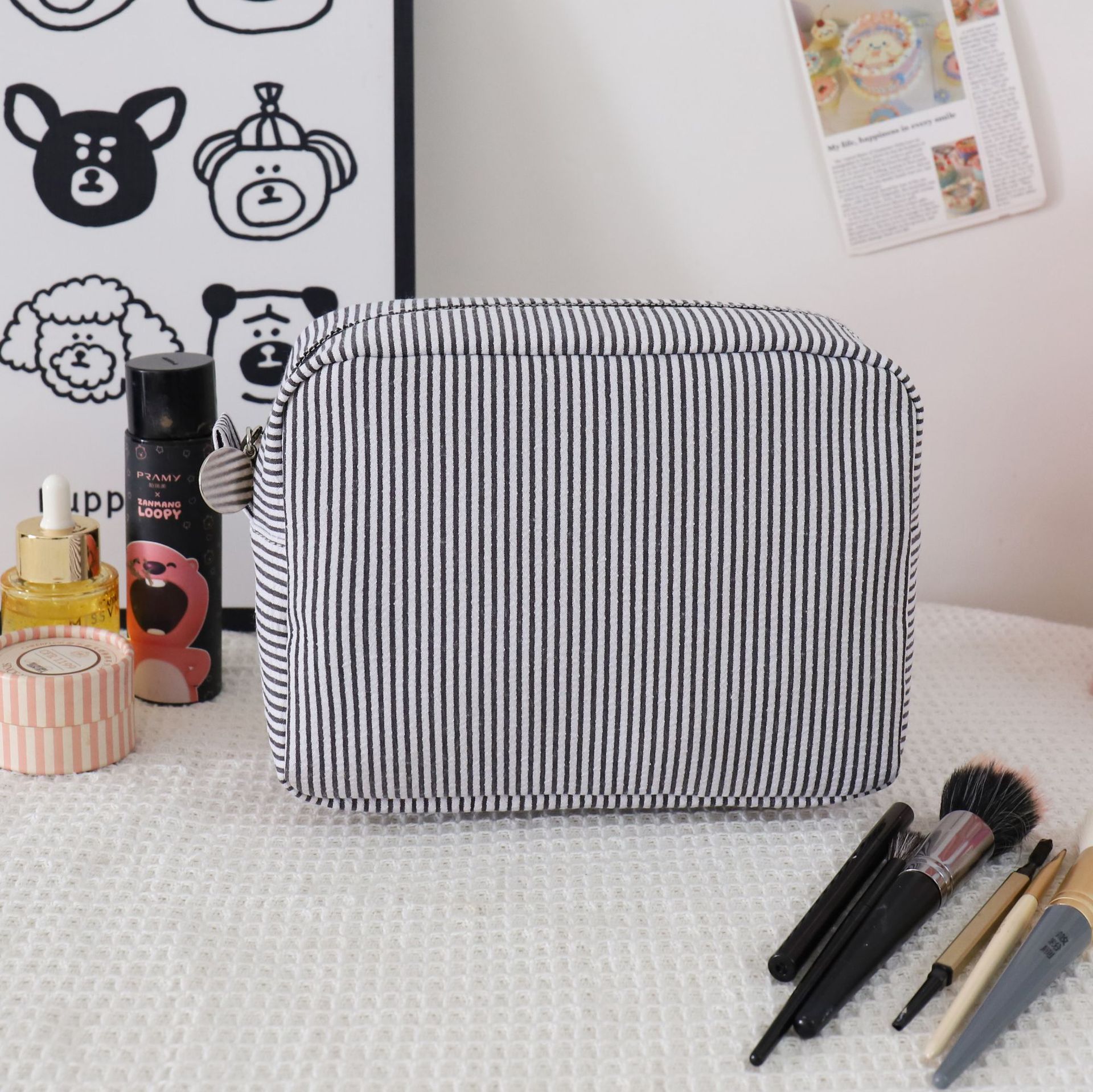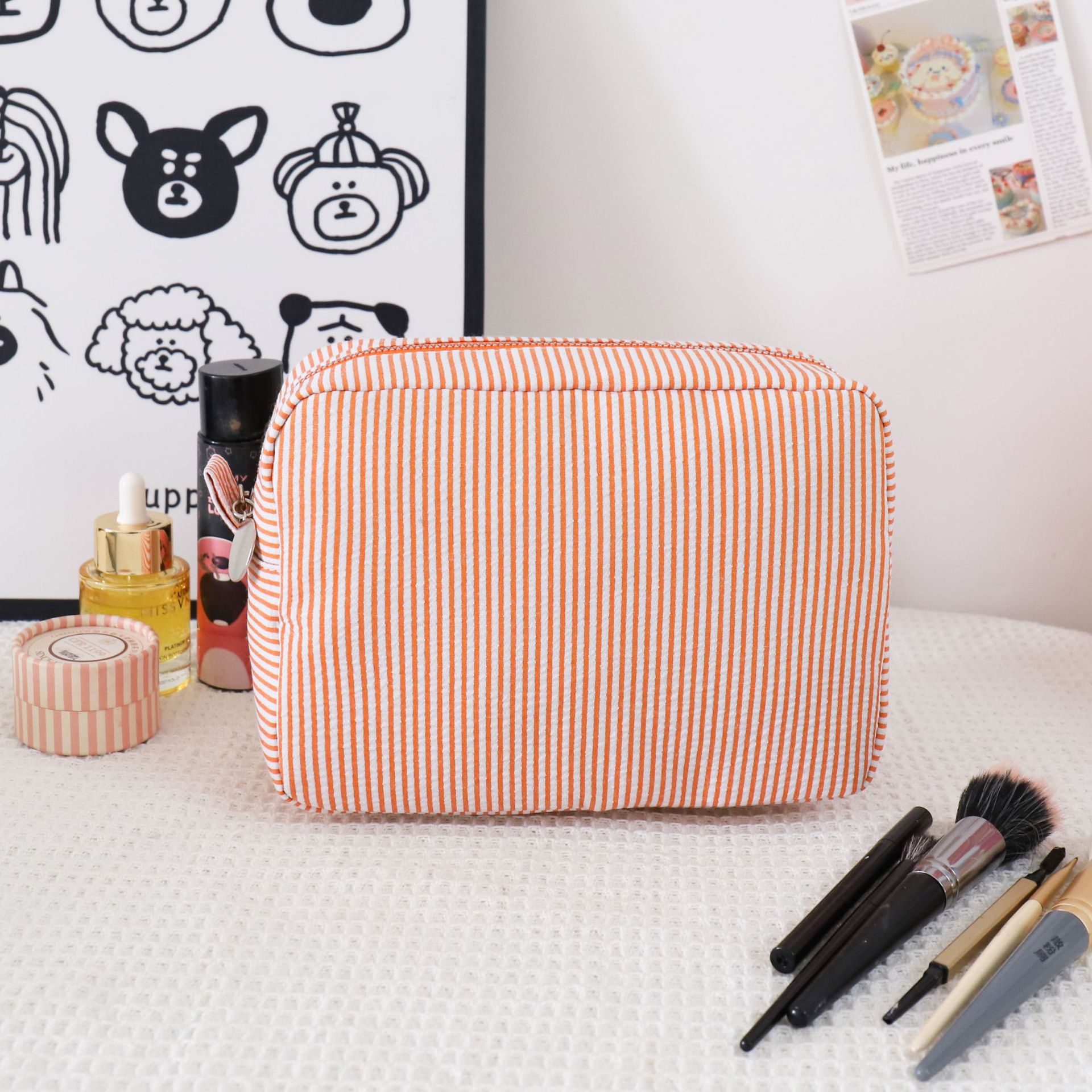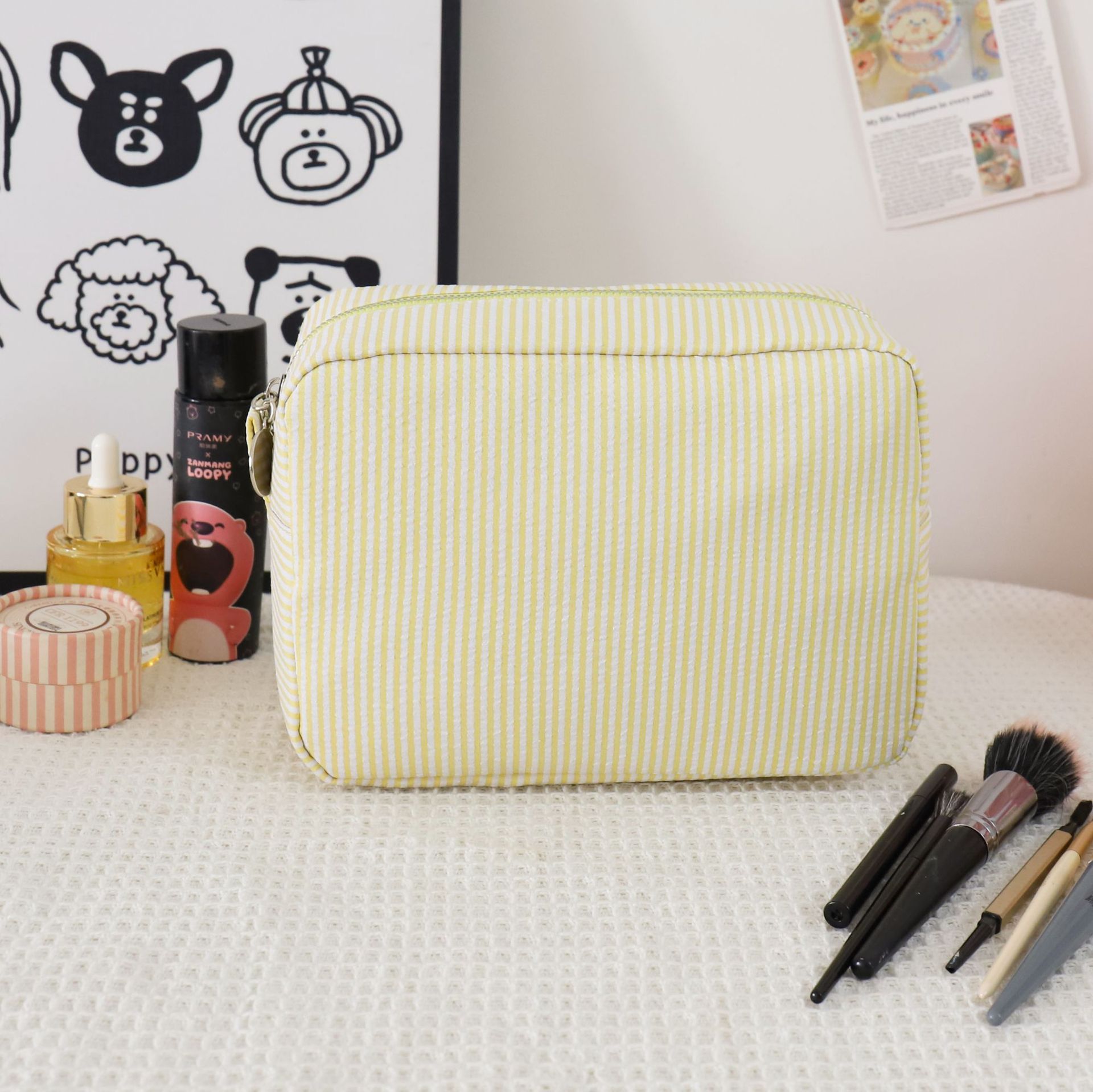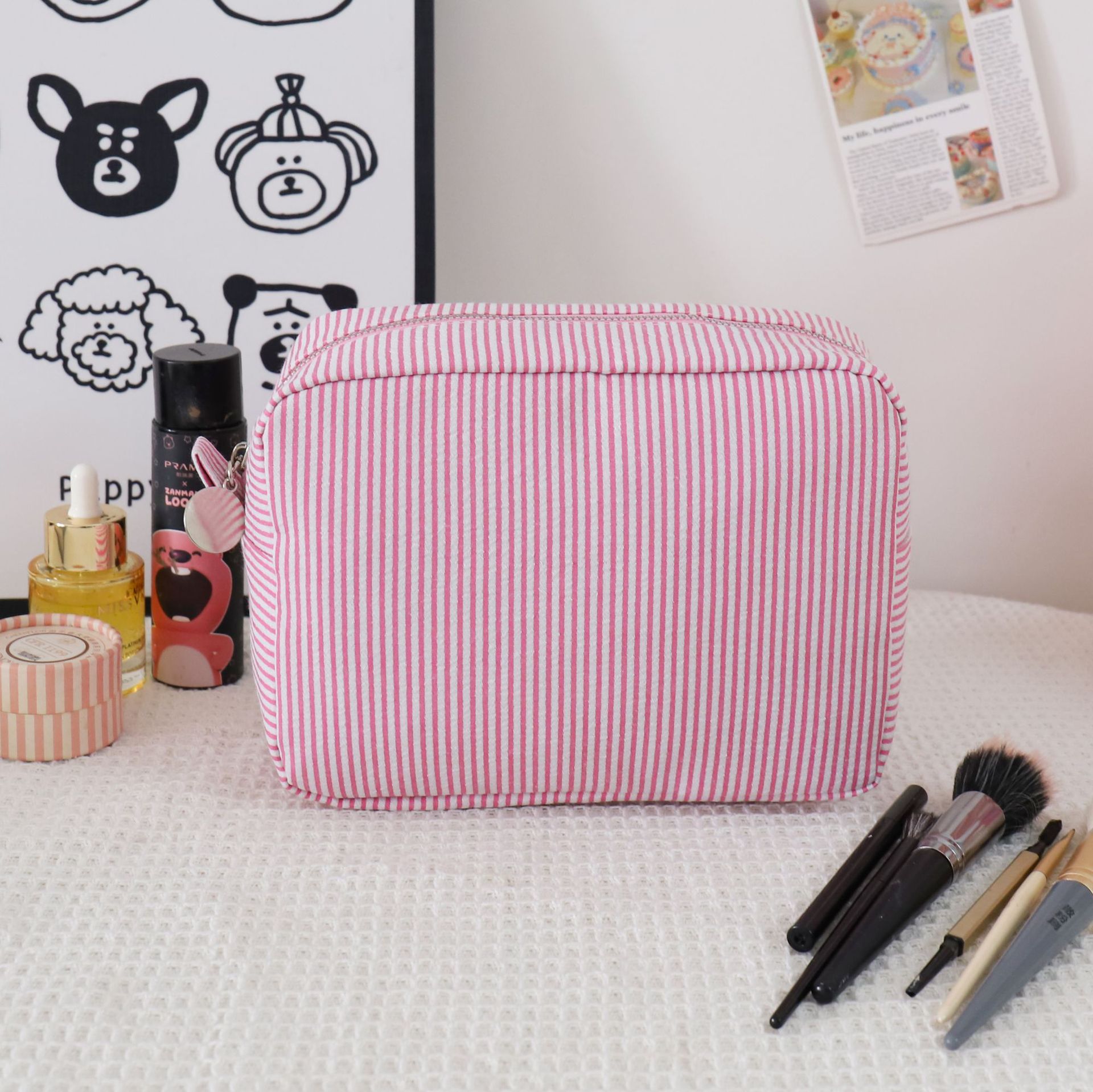 새로운 트렌디한 심플 대용량 수납가방, 시어서커 화장품 가방, 휴대용 세면도구 수납 여행 가방