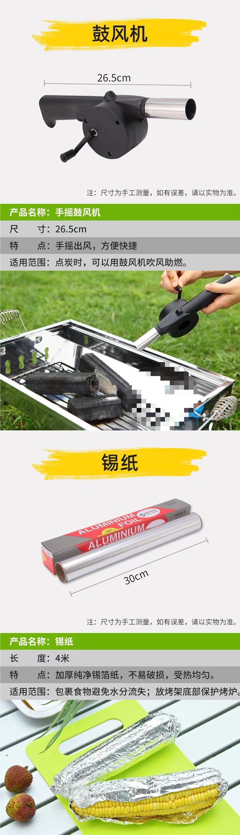 바베큐 그릴, 바베큐 그릴 도구, 브러쉬 세트, 바베큐 바늘, 바베큐 장갑, 은박지, 기름 흡수지 액세서리 세트