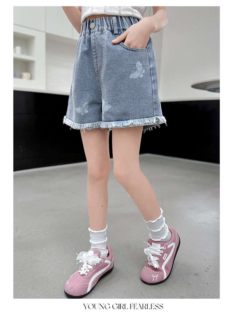 여아 여름 데님 반바지 여아 중대형 아동 2025 패션 인터넷 연예인 로우 엣지 나비 청바지 반바지스토어 가기