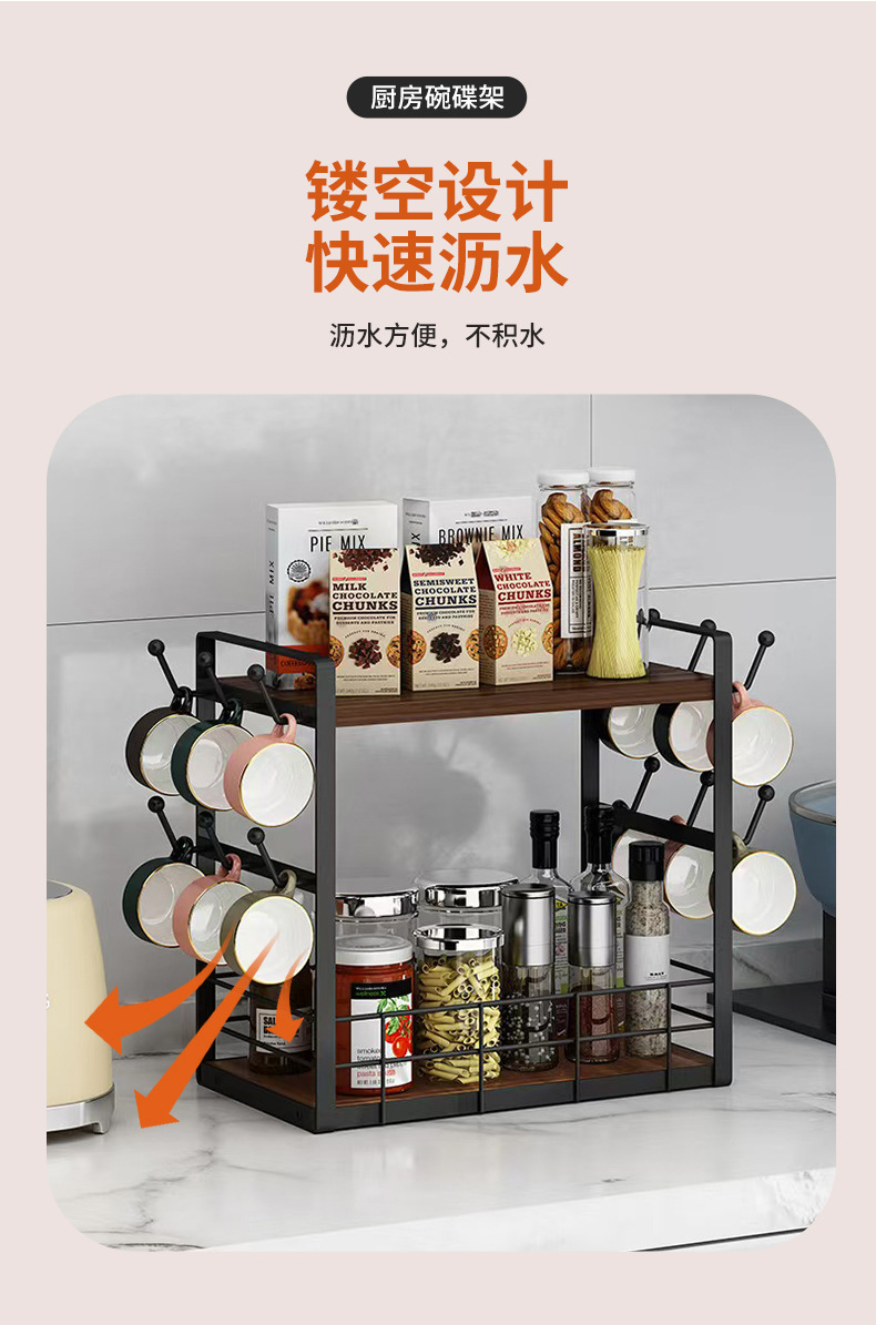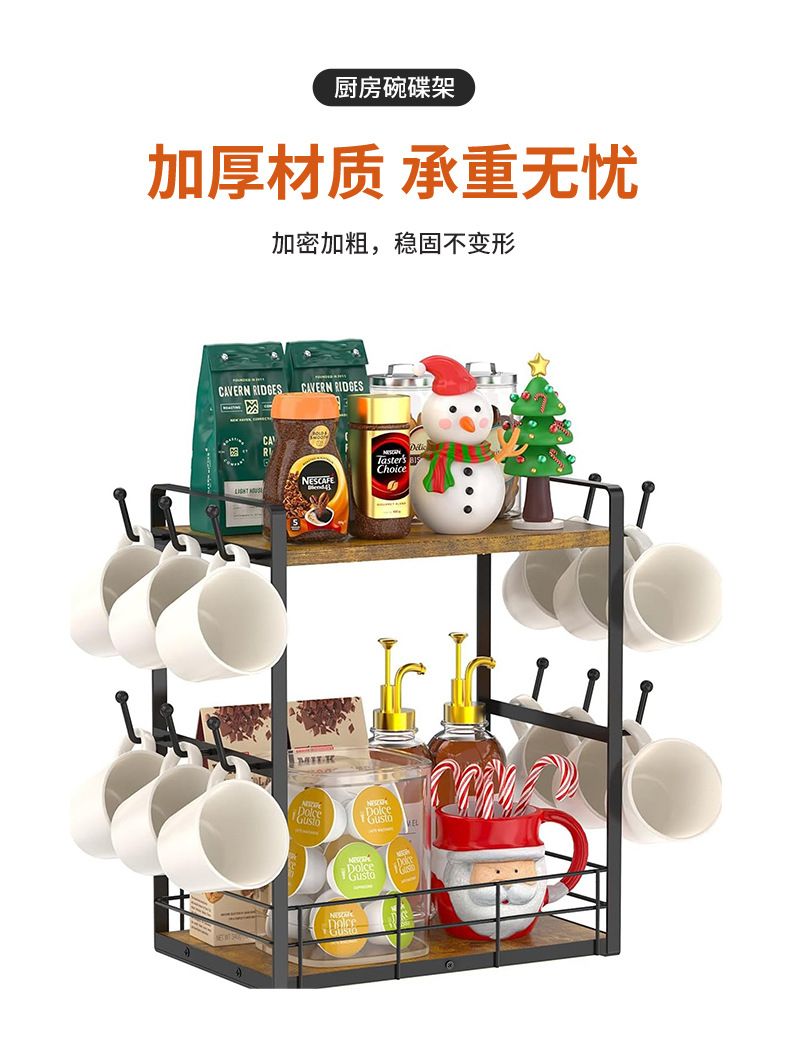 크로스보더 주방 조리대 수납 선반 컵홀더 철제 나무 커피잔 수납대 머그컵 배수 걸이스토어 가기