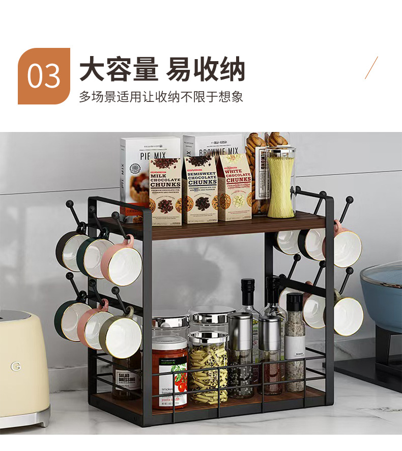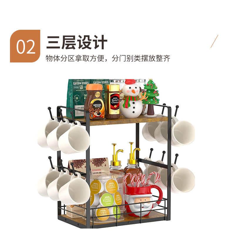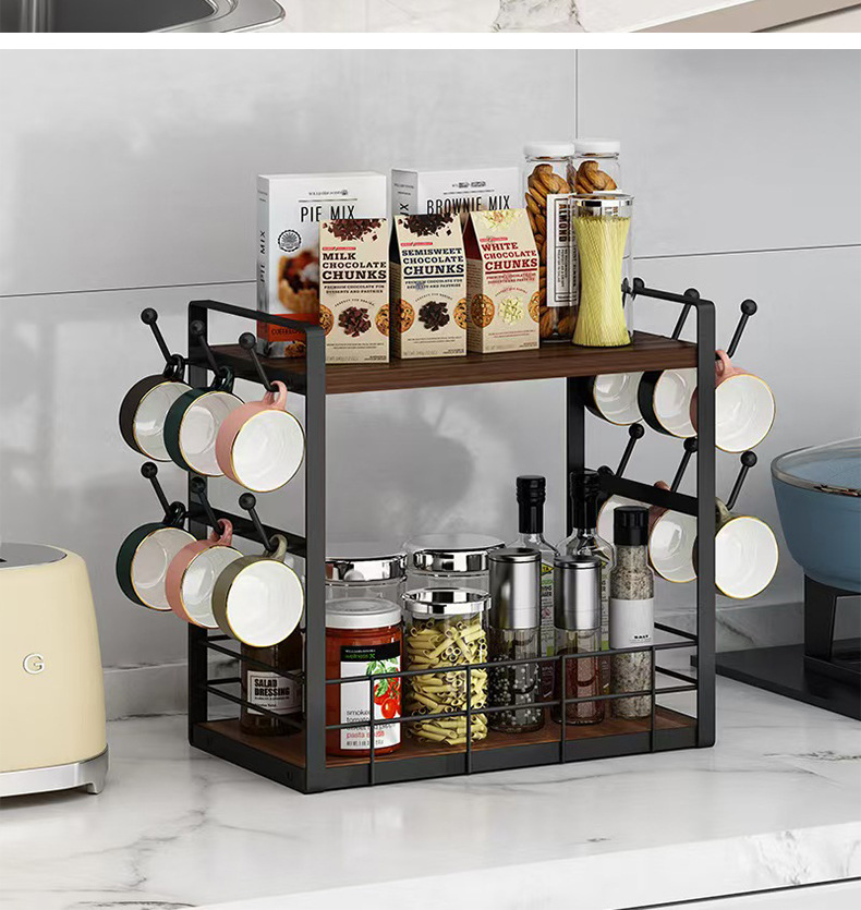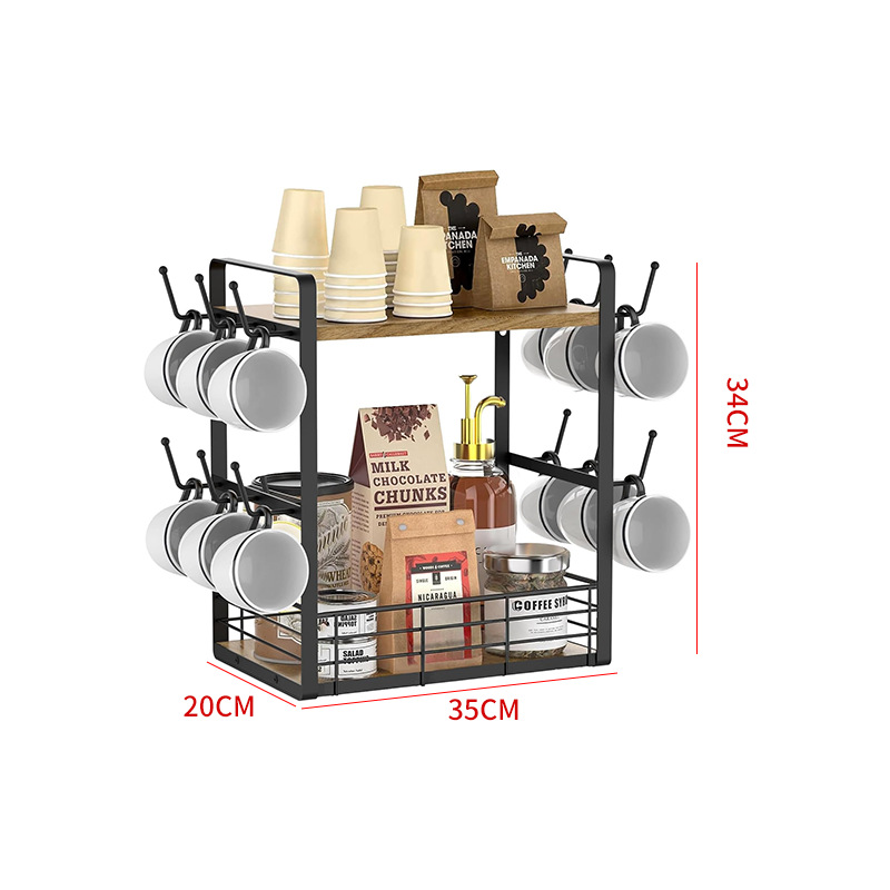 크로스보더 주방 조리대 수납 선반 컵홀더 철제 나무 커피잔 수납대 머그컵 배수 걸이