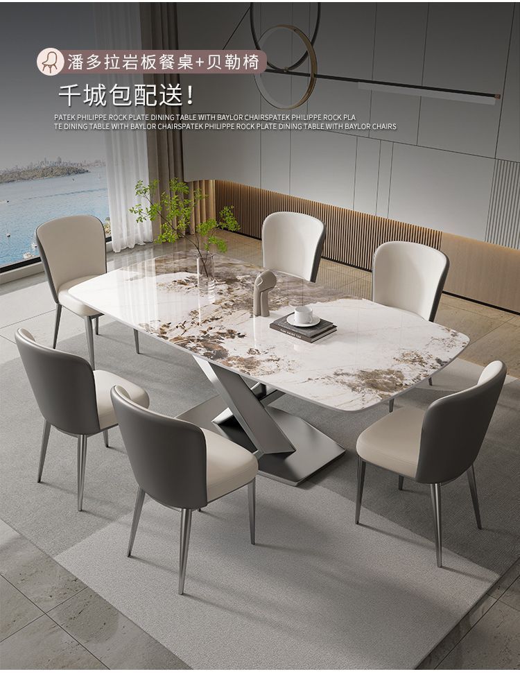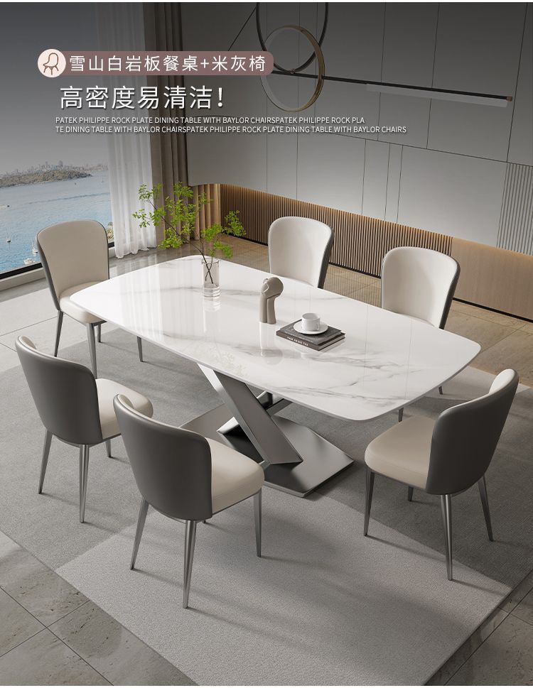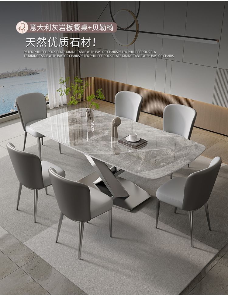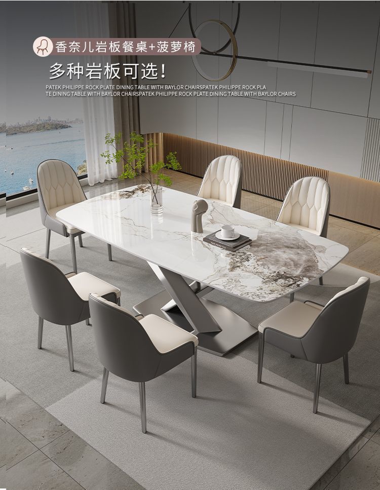 • [12MM] 가볍고 고급스러운 슬레이트 식탁 + 베일러 의자 기본 두꺼운 버전*8 140x80x75cm