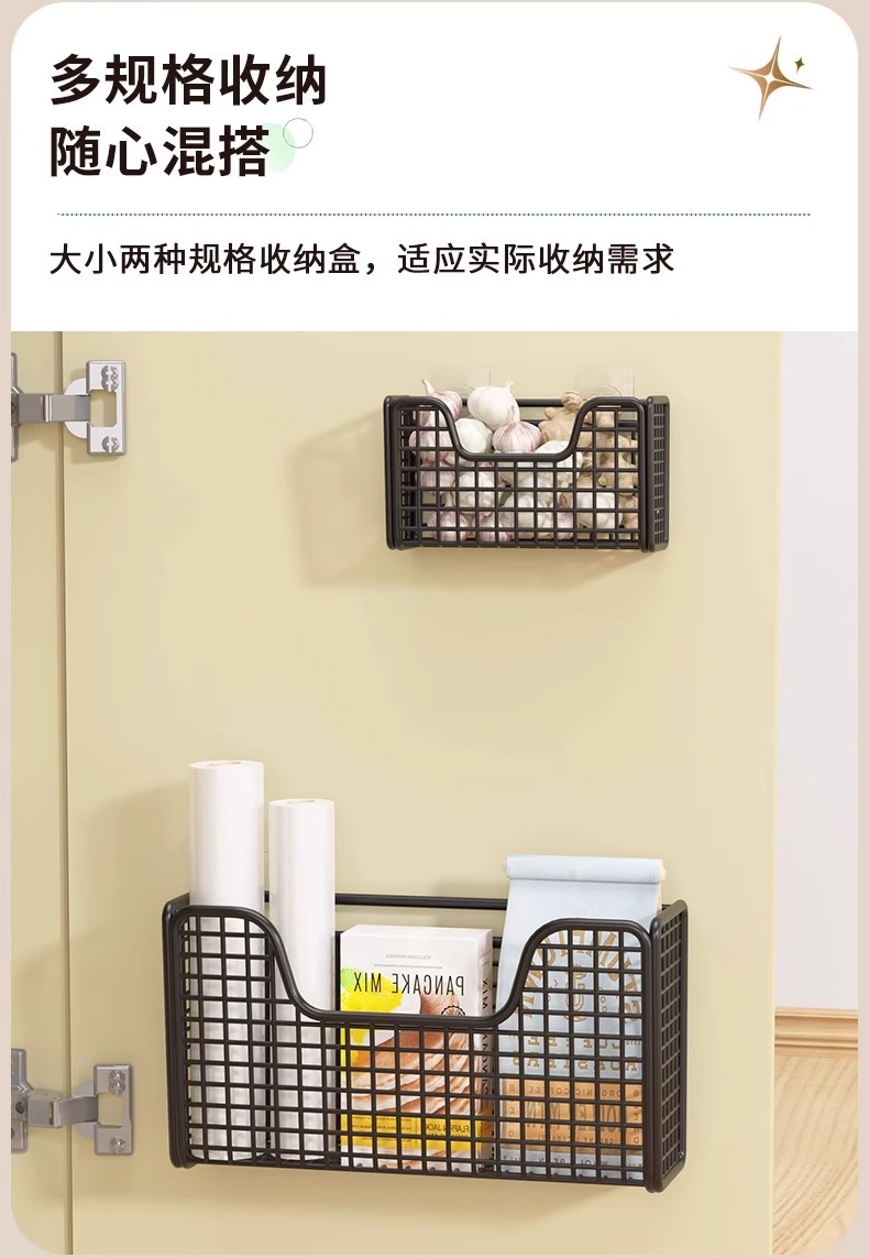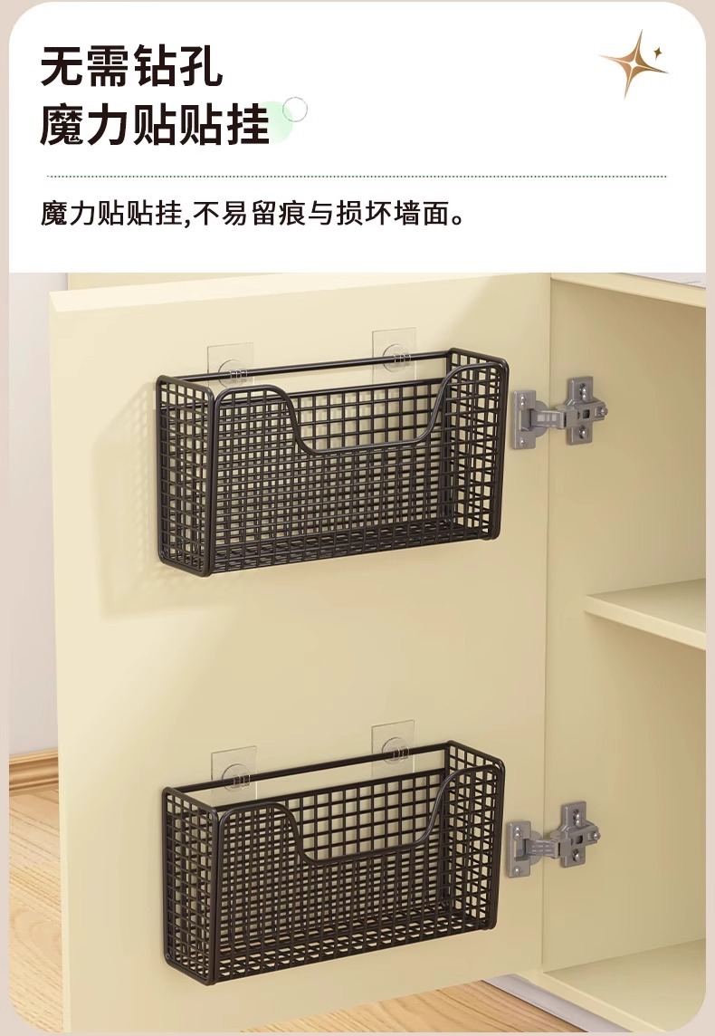 주방 캐비닛 문 내부 수납함 벽걸이형 무타공 수납장 캐비닛 문 냉장고 랩 필름 보관함