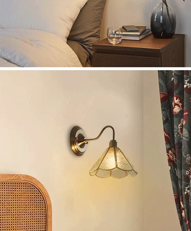 중간 골동품 침실 침대 옆 벽 복고풍 거실 로커 호두 유리 호텔 장식 국경 벽 램프 창조적 인