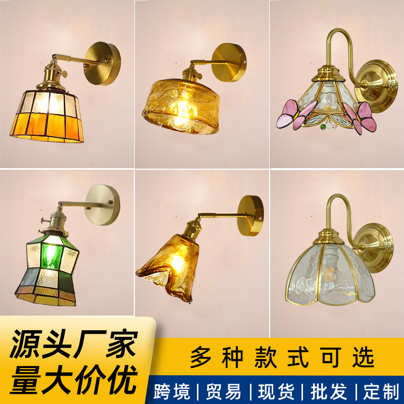 중간 골동품 침실 침대 옆 벽 복고풍 거실 로커 호두 유리 호텔 장식 국경 벽 램프 창조적 인스토어 가기