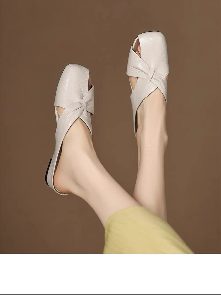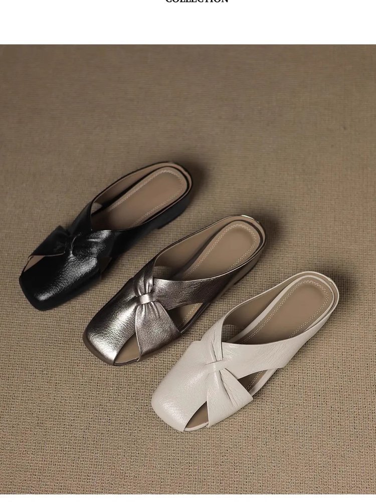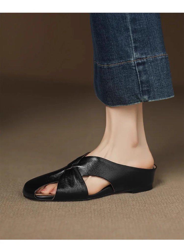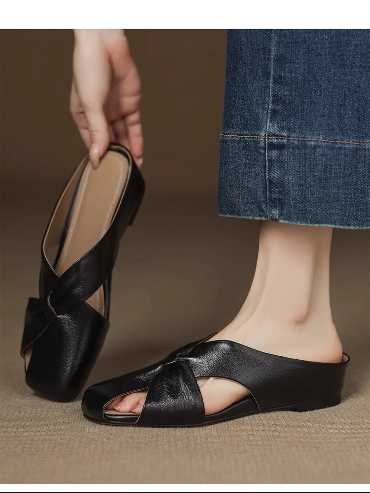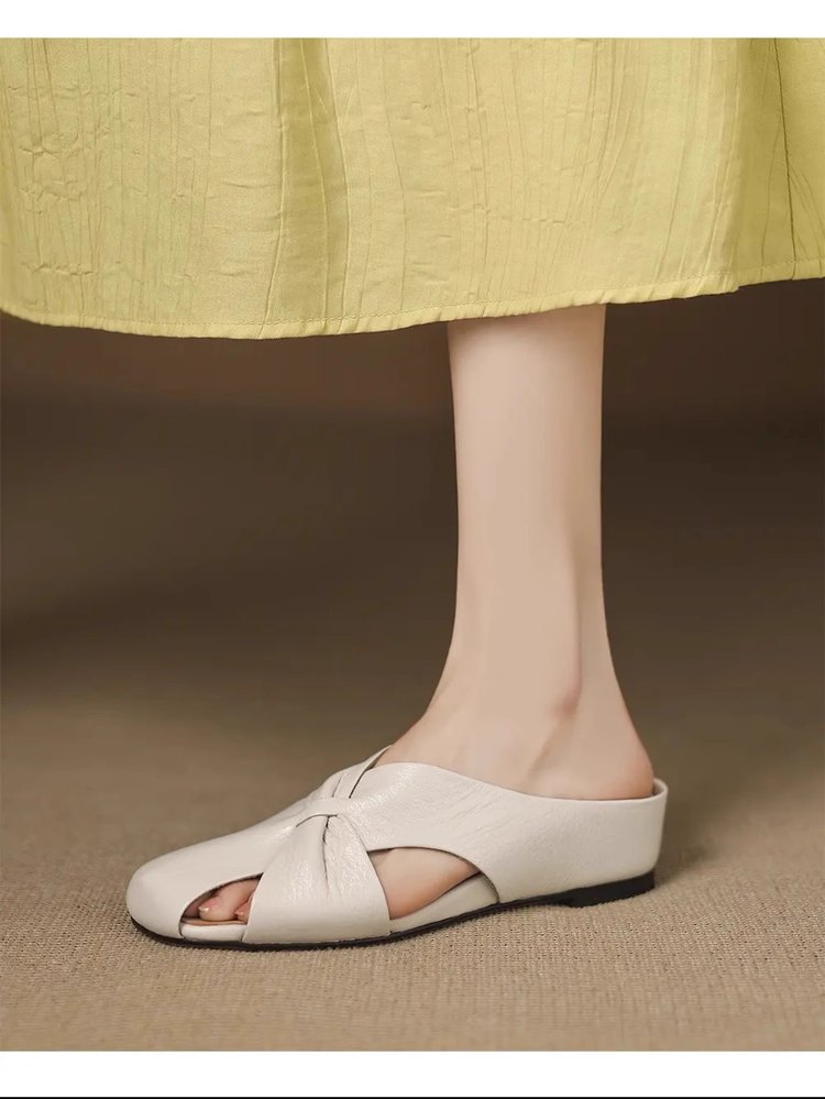 부드러운 가죽 버전 ~ 여성용 바오터우 샌들 2025 여름 신작 아우터웨어 중공 뮬 슈즈 여성용 웨지 힐 하프 슬리퍼