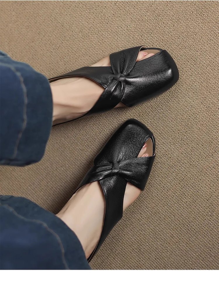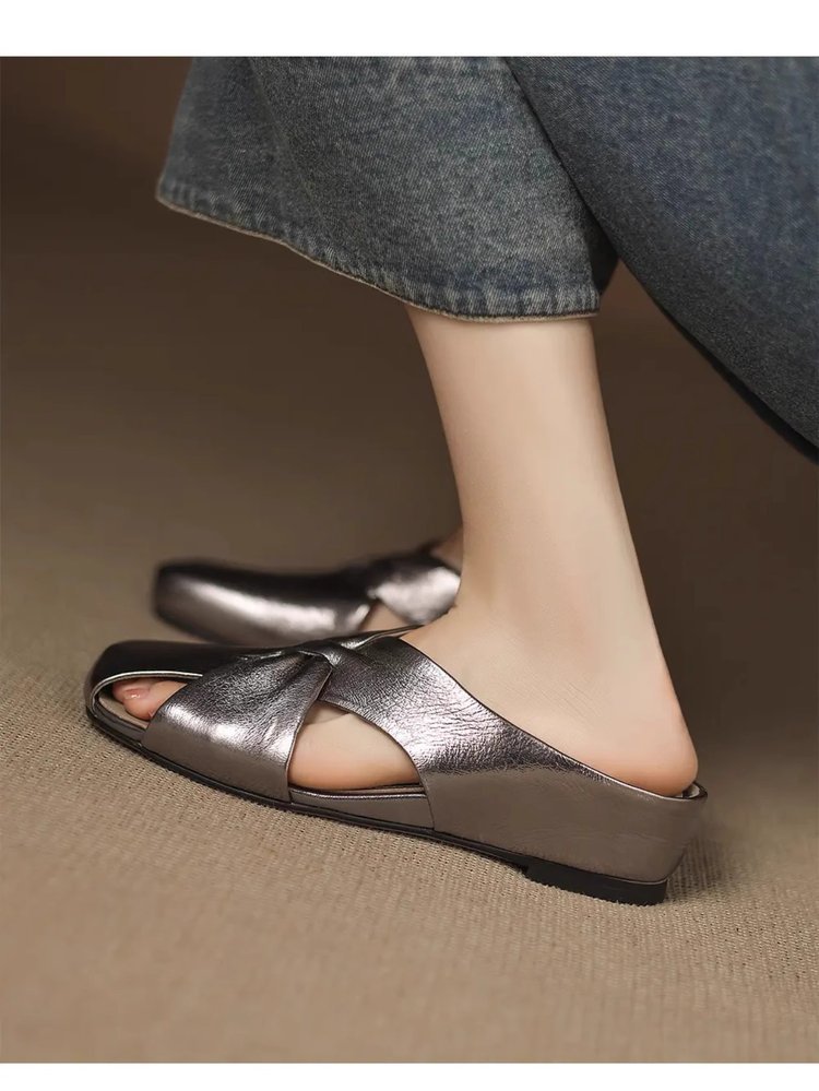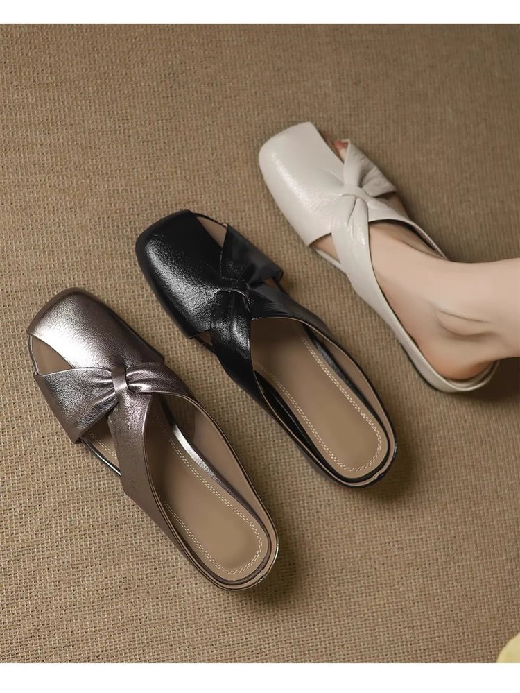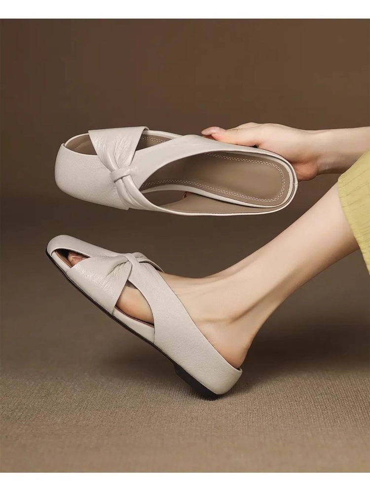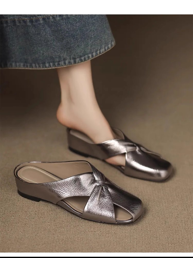 부드러운 가죽 버전 ~ 여성용 바오터우 샌들 2025 여름 신작 아우터웨어 중공 뮬 슈즈 여성용 웨지 힐 하프 슬리퍼
