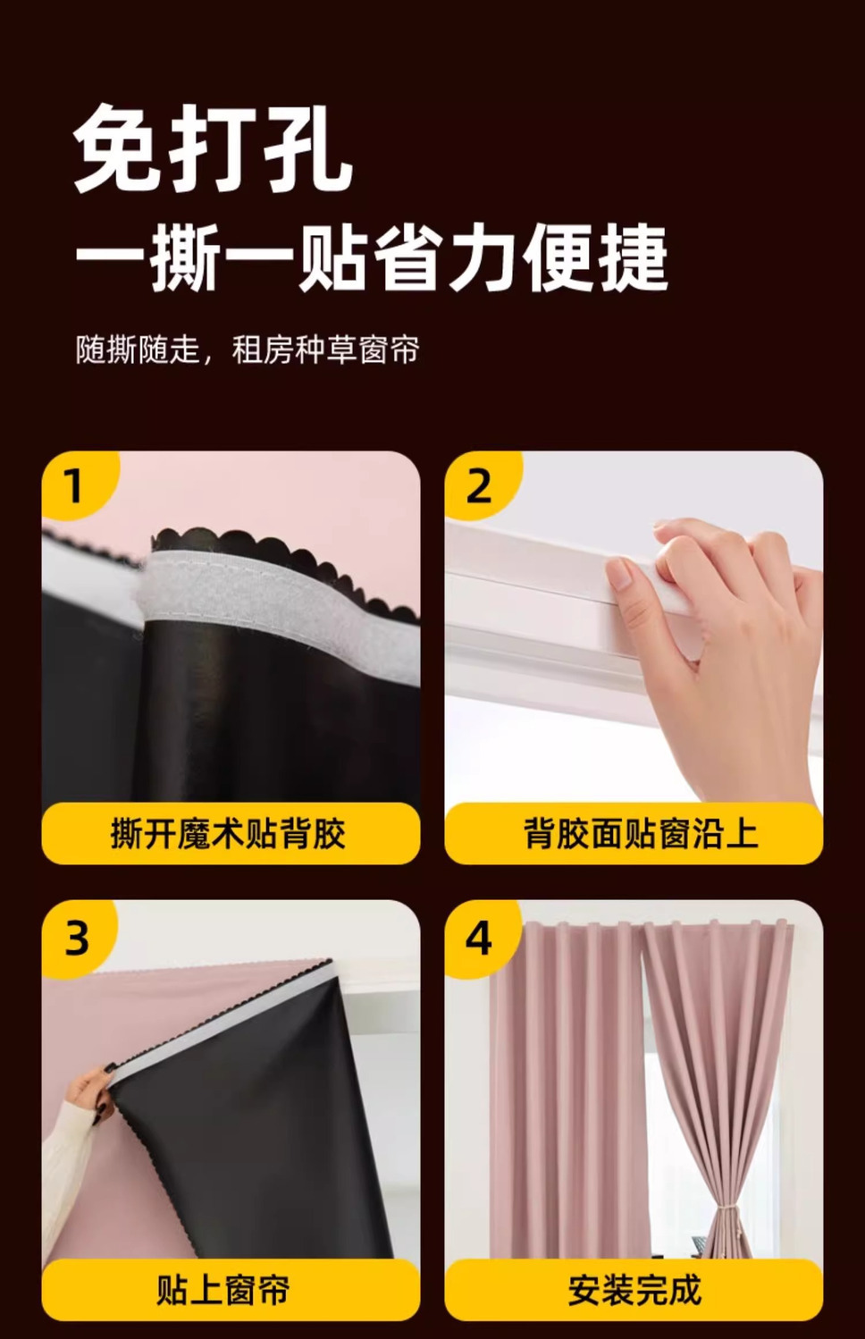 2025 새로운 전체 음영 커튼 벨크로 펀치 무료 간단한 작은 창 그늘 실내 욕실