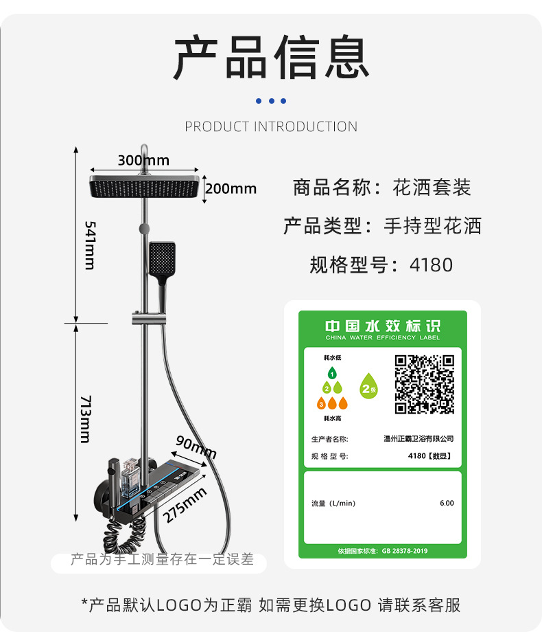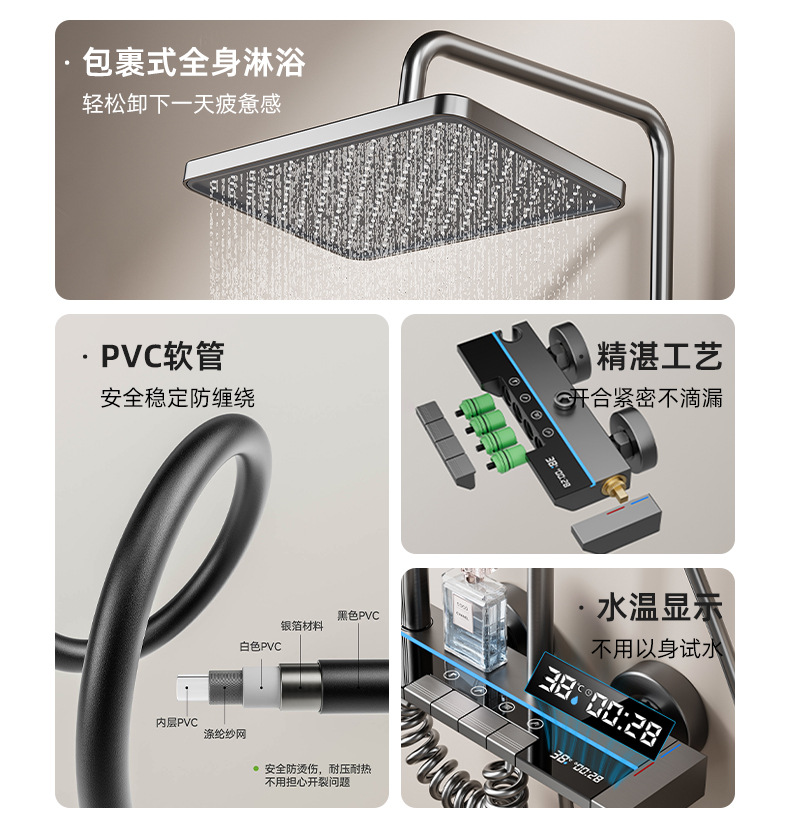 샤워기 세트 디지털 디스플레이 온도조절 기능과 무드등 포함 가정용 욕실 샤워기 도매스토어 가기